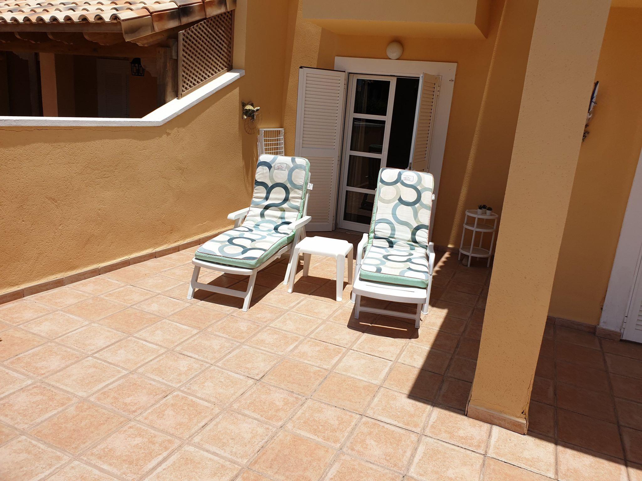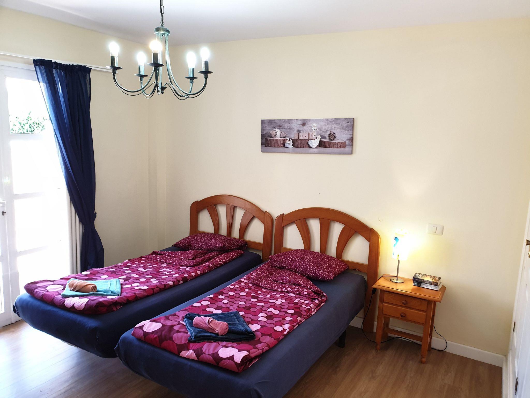 The bedroom has two single beds, which can be put together if required and it has an exit to the large terrace. On the terrace you have enough space to lie in the sun. In the evening you can sit there with a glass of wine and enjoy the evening or barbecue together.