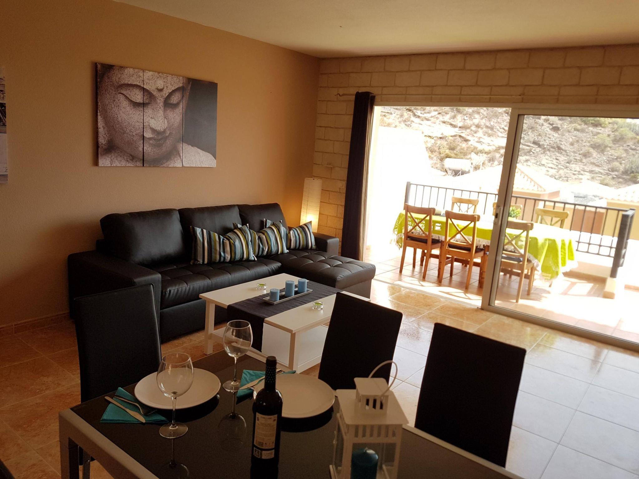 There is a large pool area with sun loungers (Community Pool) which can be used free of charge. On the terrace there is a barbecue available and comfortable seating and 2 sun loungers so that you can spend beautiful barbecue evenings there.You can park your car in the private garage, which is located in the basement of the house. There is also a washing machine.Information about the location:The house is located above the Costa Adeje with spectacular views over the whole coast and Playa de las Americas. In view of the Atlantic you can occasionally see the neighboring island of La Gomera. At night you have a wonderful view of the lights of the city. But also the view up is worth: You can enjoy the mountain panorama to the Roque del Conde (Table Mountain).The location is very quiet and still centrally, since one is by car in a few minutes on the beaches of Costa Adeje and Las Americas. Also at the picturesque port of Los Cristianos is not far away.A major attraction is the largest water park in the world: the SIAM-Park and the adjacent Aqualand.Shops are also nearby, you can get bread on foot and then on the terrace together outdoors breakfast. Las Americas is the tourist center with numerous bars, restaurants and sports and shopping. The climate is mild all year round and warm.