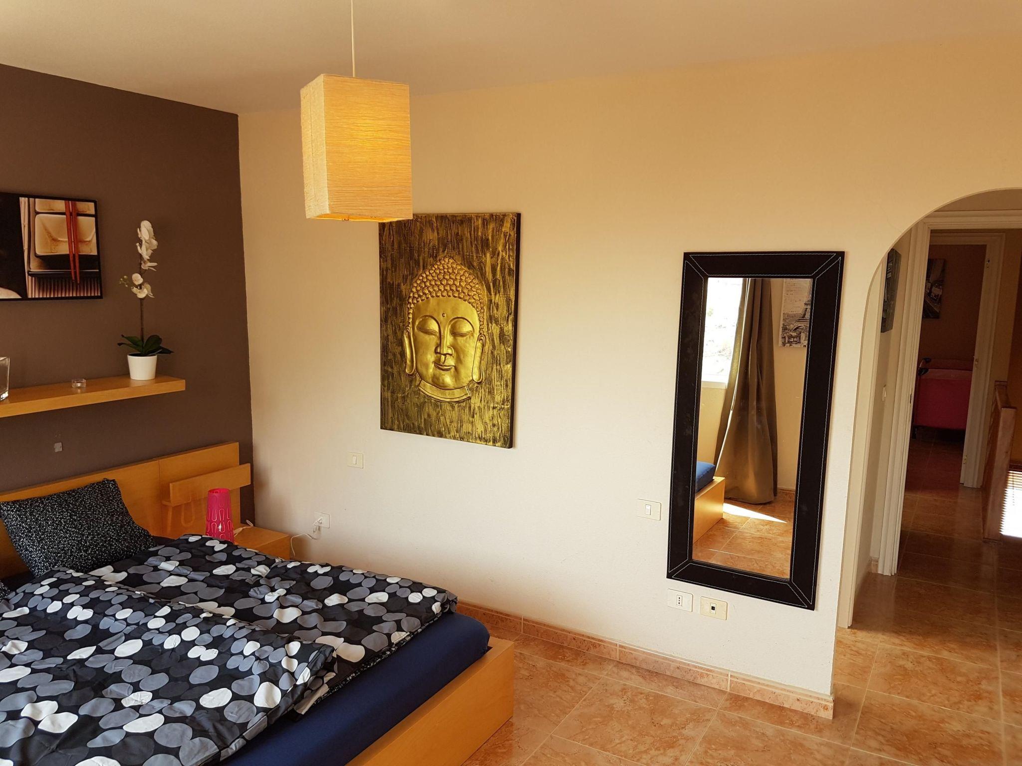 The Villa Roque del Conde 3 is one of the holiday homes of the highest class from a prime location above the Costa Adeje and not least by its exclusive features. It takes only 5 minutes to the beach. On the ground floor there is a living room with open kitchen and separate dining area. Upstairs are the two bedrooms, 2 bathrooms with bath and shower. One bedroom has a balcony and has a wonderful sea view over the Atlantic to the neighboring island of La Gomera. The lounge has a flat screen TV with international satellite channels. Wifi for internet access is available for free (fast fiber optic Internet). The living room has a sofa bed and offers a comfortable sleeping accommodation for 2 more people.