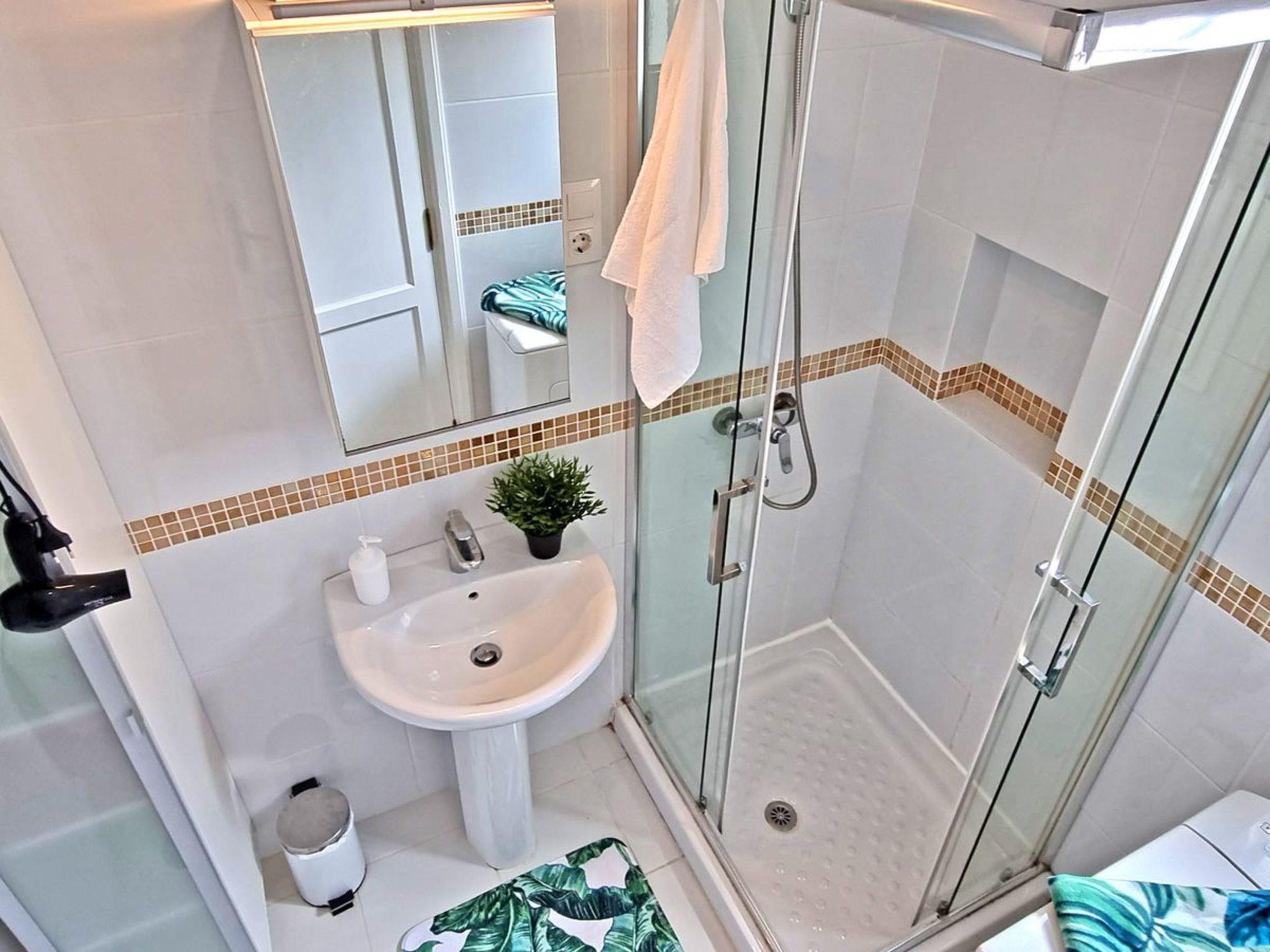 The flat has an open-plan living room with kitchen, a bathroom with shower, a bedroom and a balcony. Just a few metres away in the complex is the communal pool with sun loungers, which invites you to sunbathe, play and swim, and the flat itself is modern, bright and pleasantly furnished. The living room has a fold-out sofa bed for 2 people. The kitchen has everything you need for everyday use, be it cutlery, pots, cups or other cooking utensils. There is also a cooker, fridge with freezer compartment, coffee machine and toaster. The bathroom has a washbasin, WC, shower and is also equipped with a washing machine. The bedroom with window is furnished with a double bed and a large built-in wardrobe, and thanks to the large window/balcony door in the living room it is bright and pleasant, allowing you to look out onto the balcony, where you can enjoy the day at a cosy table surrounded by greenery.