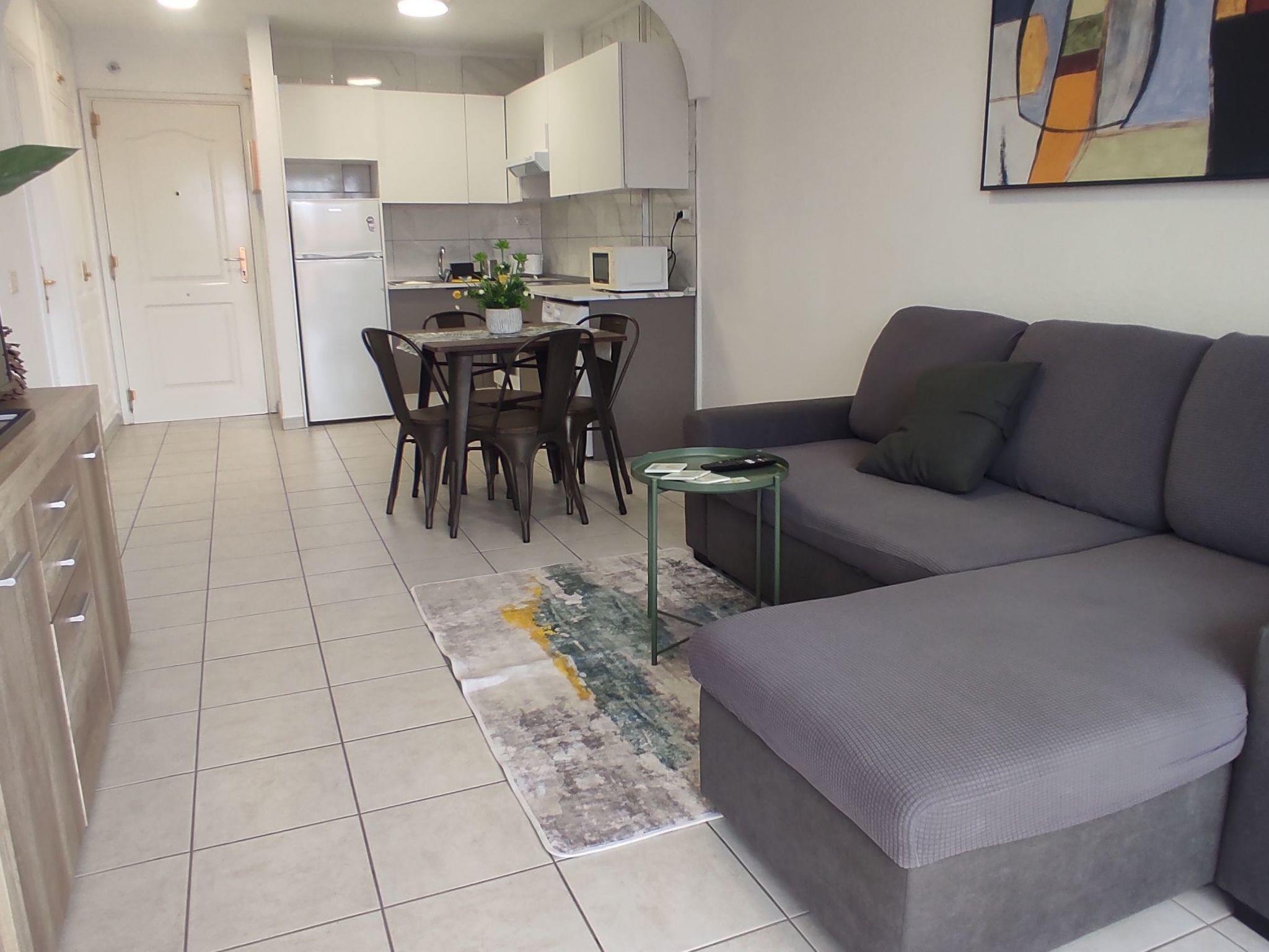 LOCATION Costa del Silencio, Residential and tourist area with all comforts. APARTMENT Free WiFi. One bedroom with king size bed of 160 cm. Kitchen fully equipped. Living room with sofa bed and smart T.with Netflix HBO Prime Video etc.