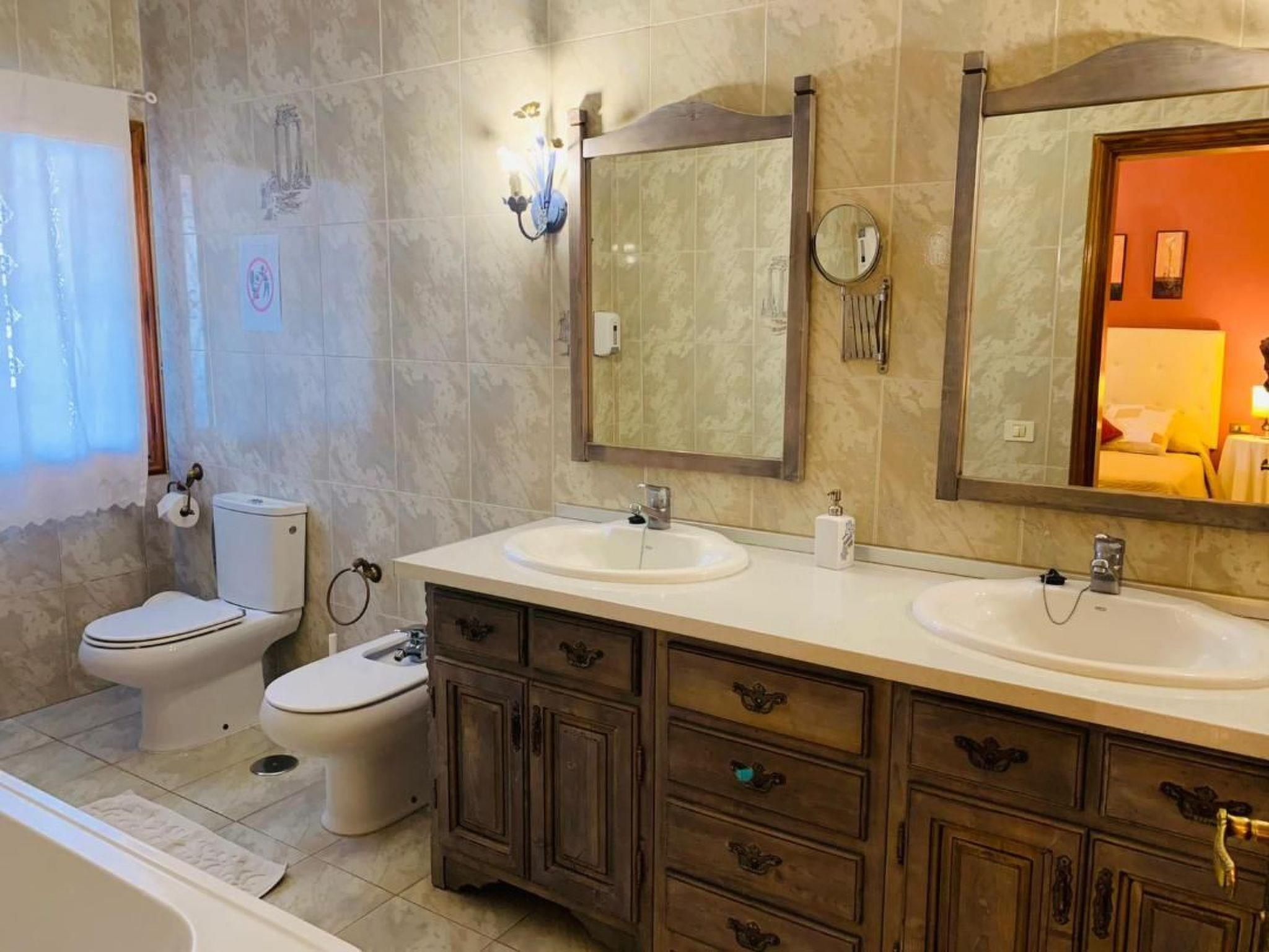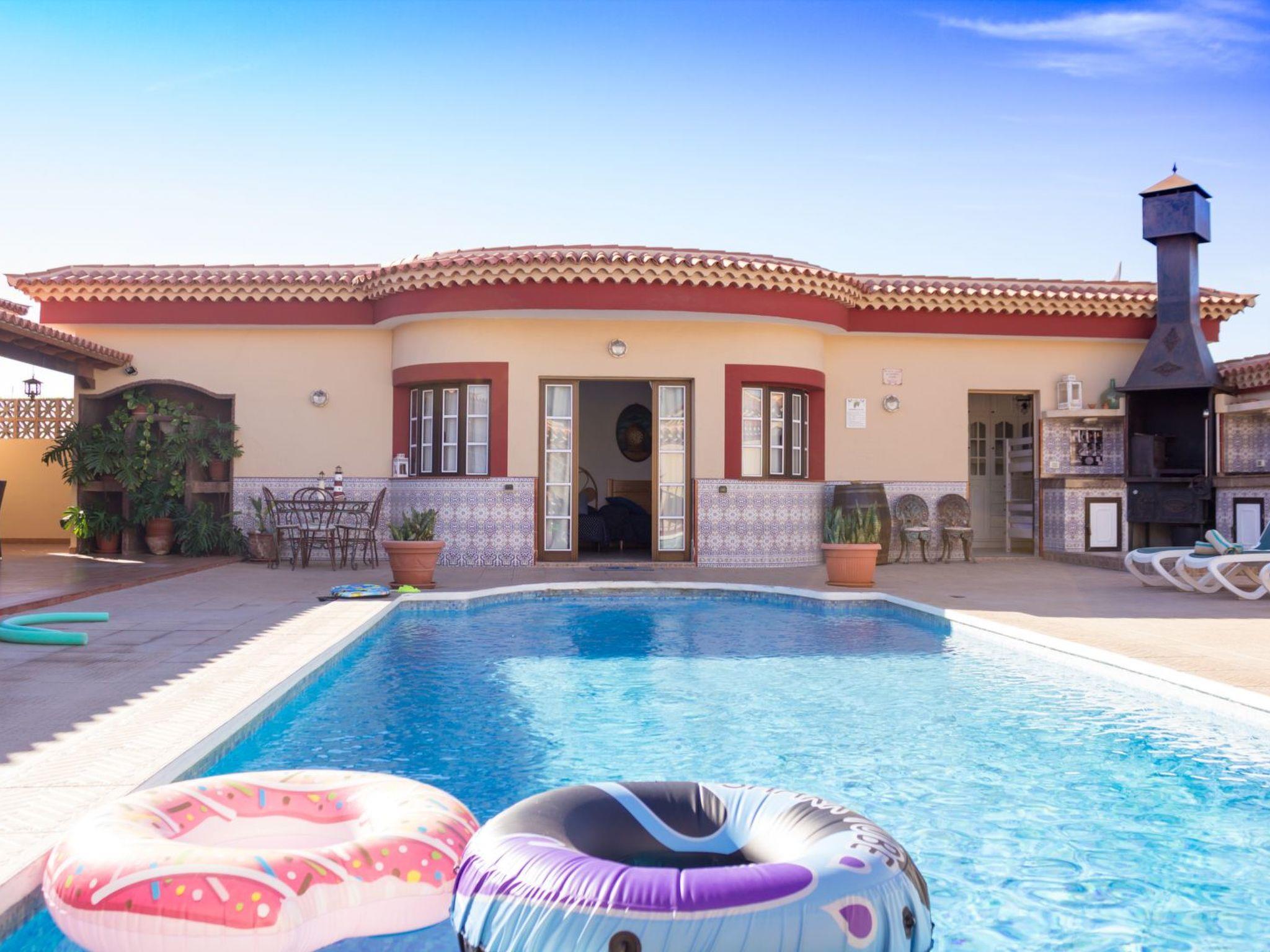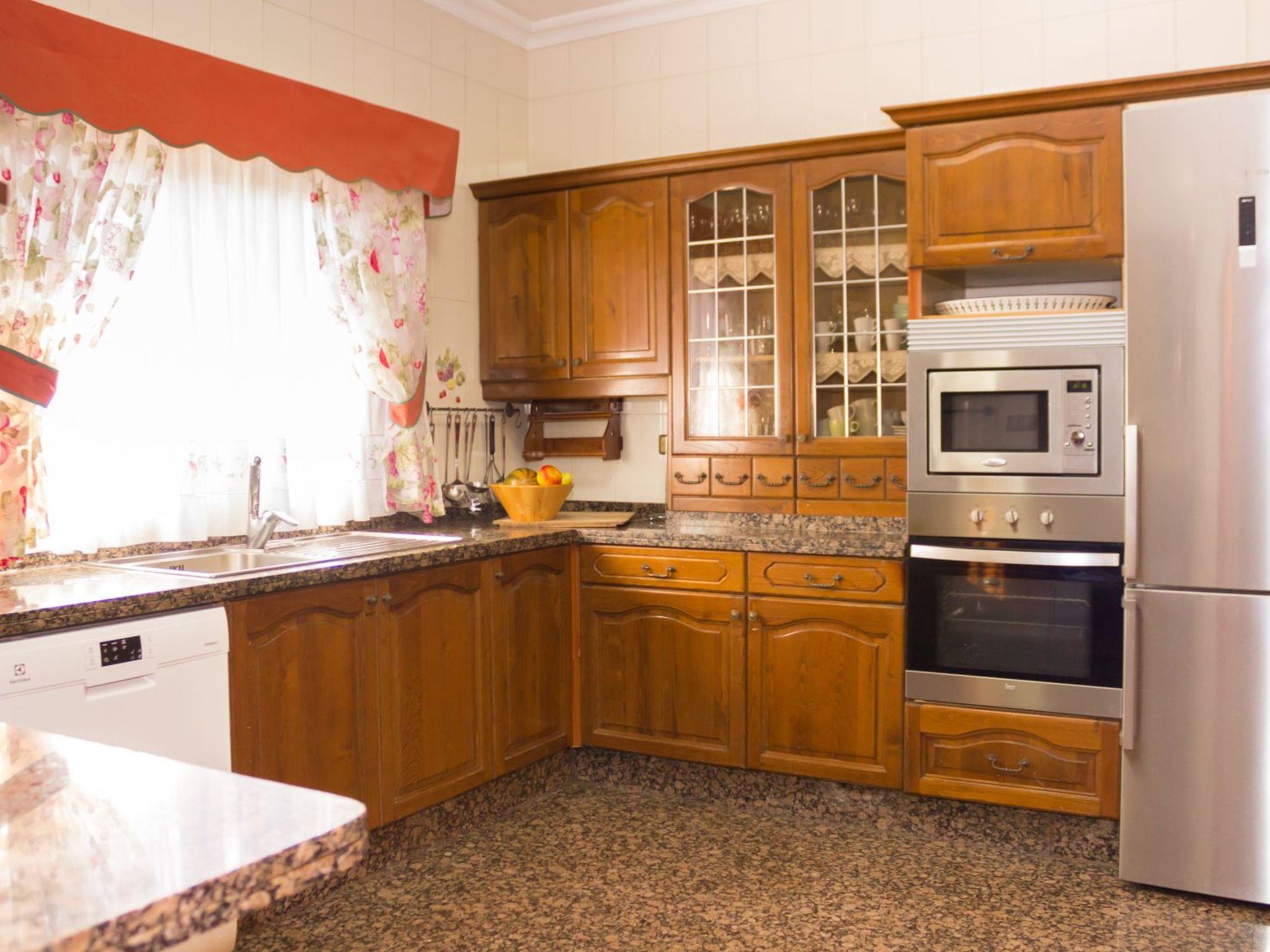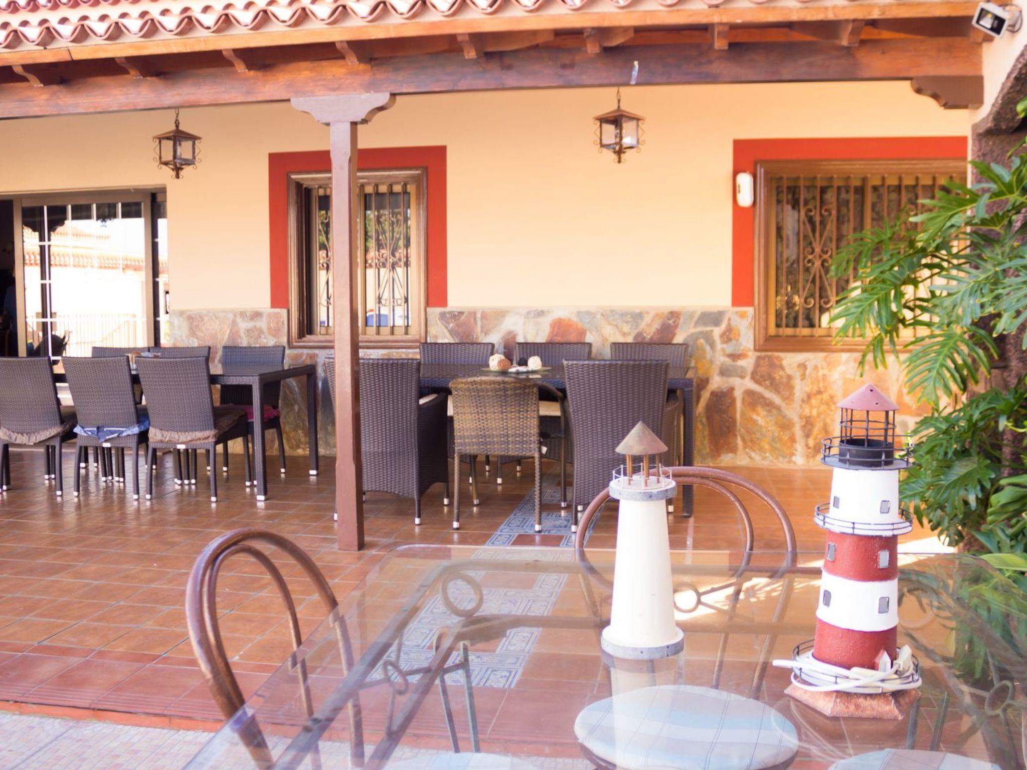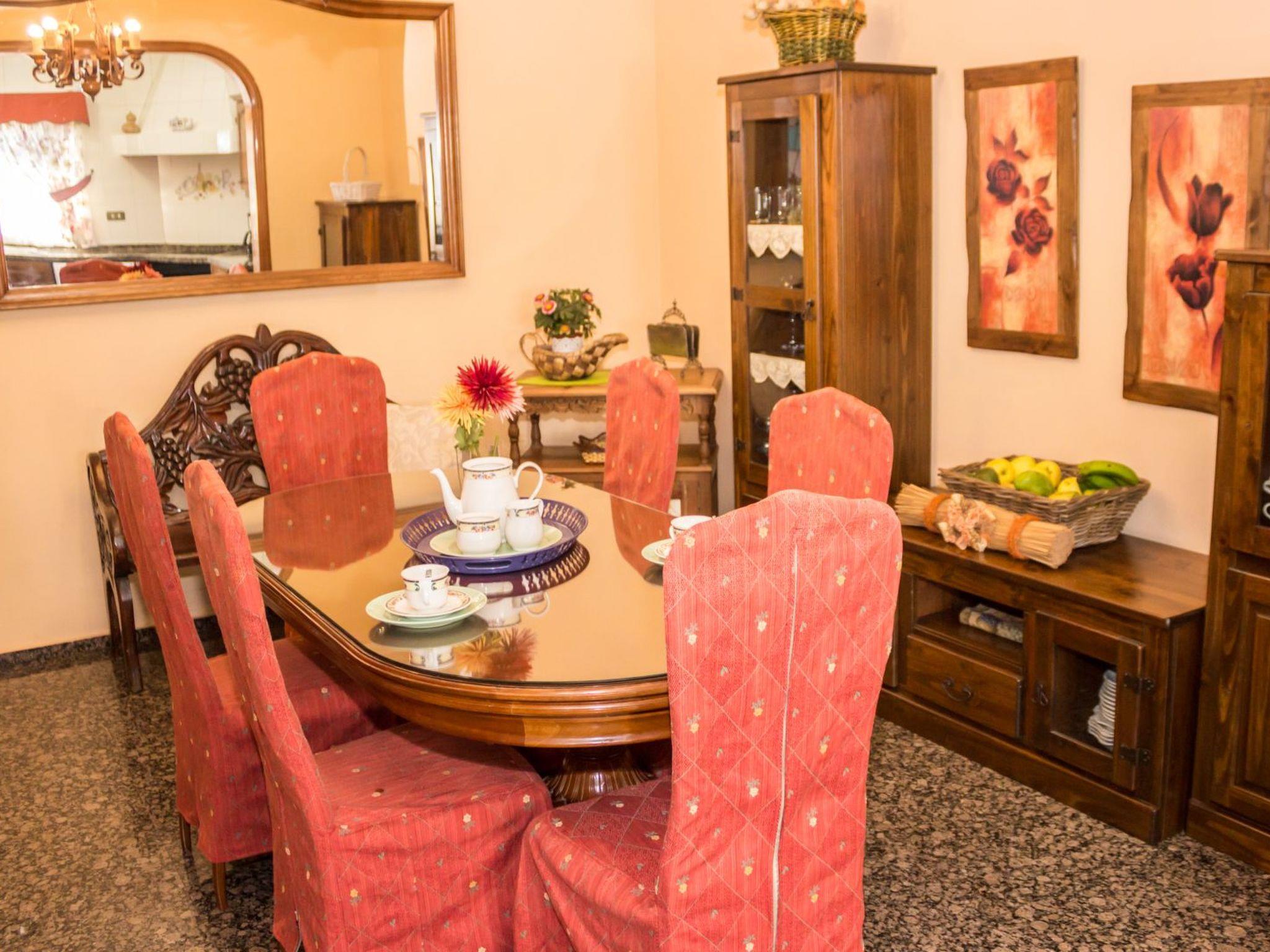 The house has a total of eight bedrooms, four of them with double beds and the others with two single beds or bunk beds. There is also a large fully equipped kitchen with a spacious and bright dining room for shared meals. There is also another dining room overlooking the swimming pool. The four bathrooms have a bath and/or shower, washbasin and toilet. The house also has a spacious living room with comfortable sofas and a large satellite TV, as well as a large door leading to the terrace and pool area. Next to the pool there is another flat, separate from the rest of the house, with another double bed.