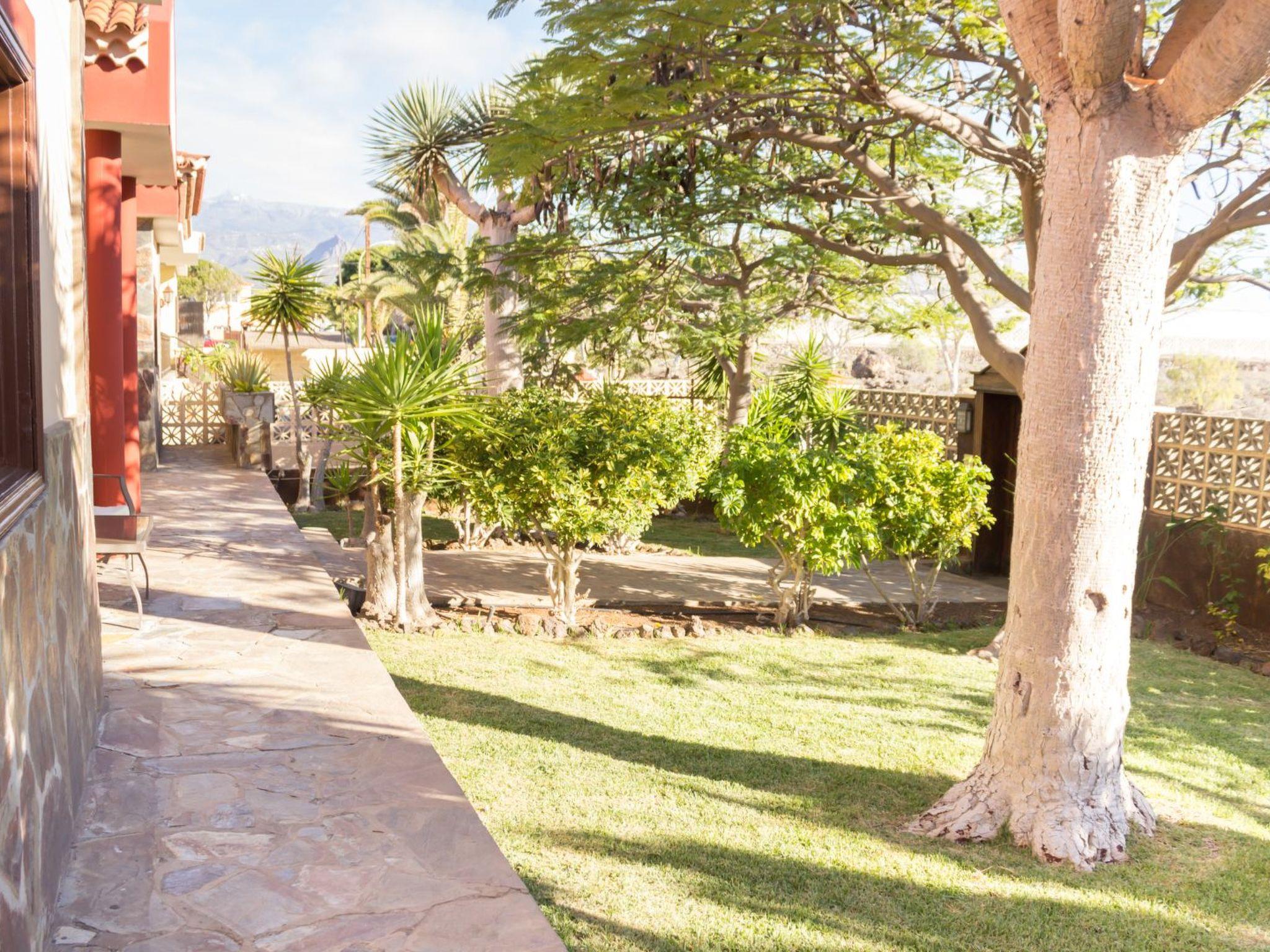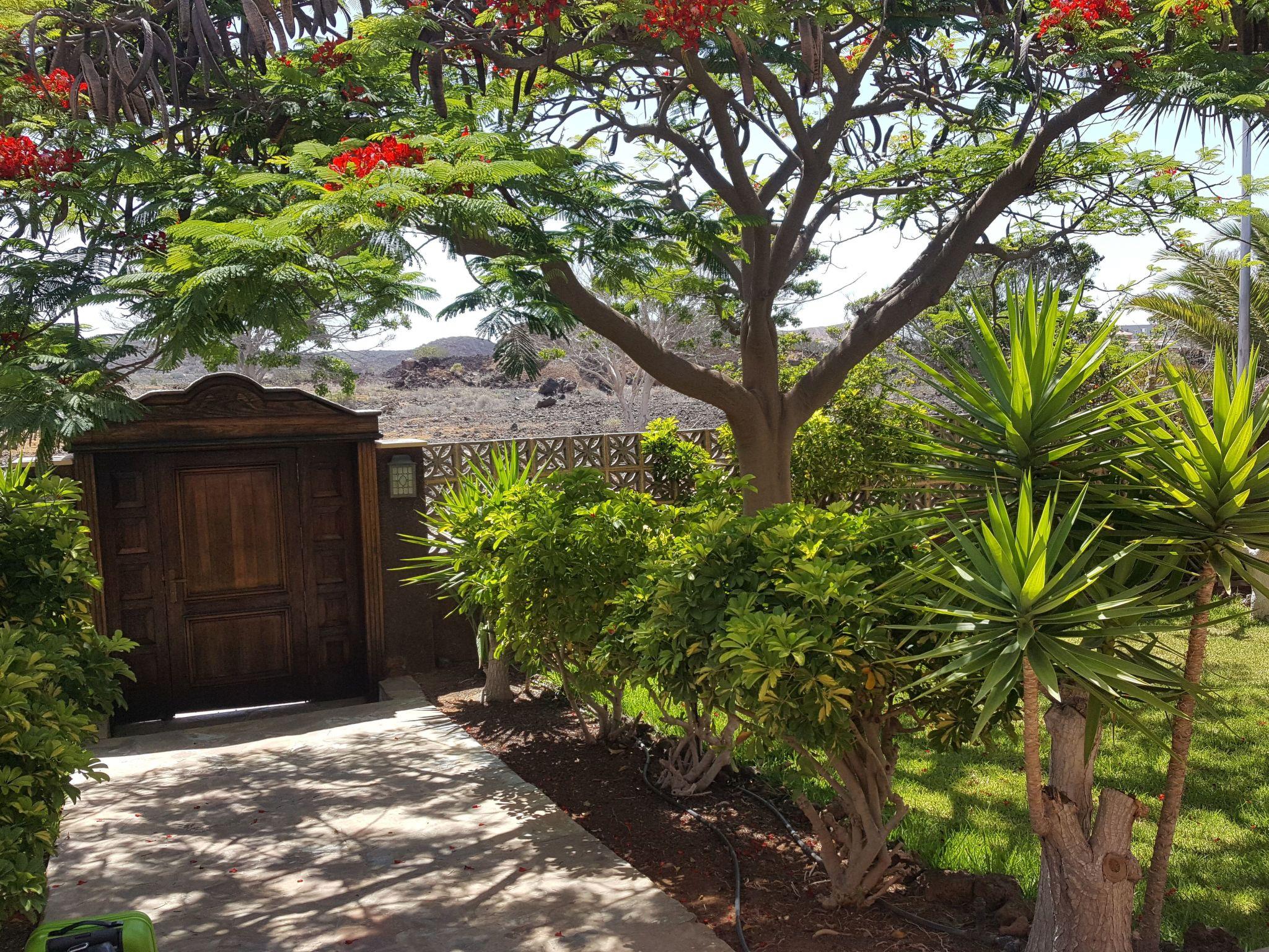 The sun terrace by the pool is equipped with outdoor furniture, a parasol and several sun loungers, ideal for relaxing. The house offers a sunny space near the sea with views of the Teide. At the front of the house there is a large garden, from which a gate gives access to another adjoining plot of 1300 m². There is ample parking space.
