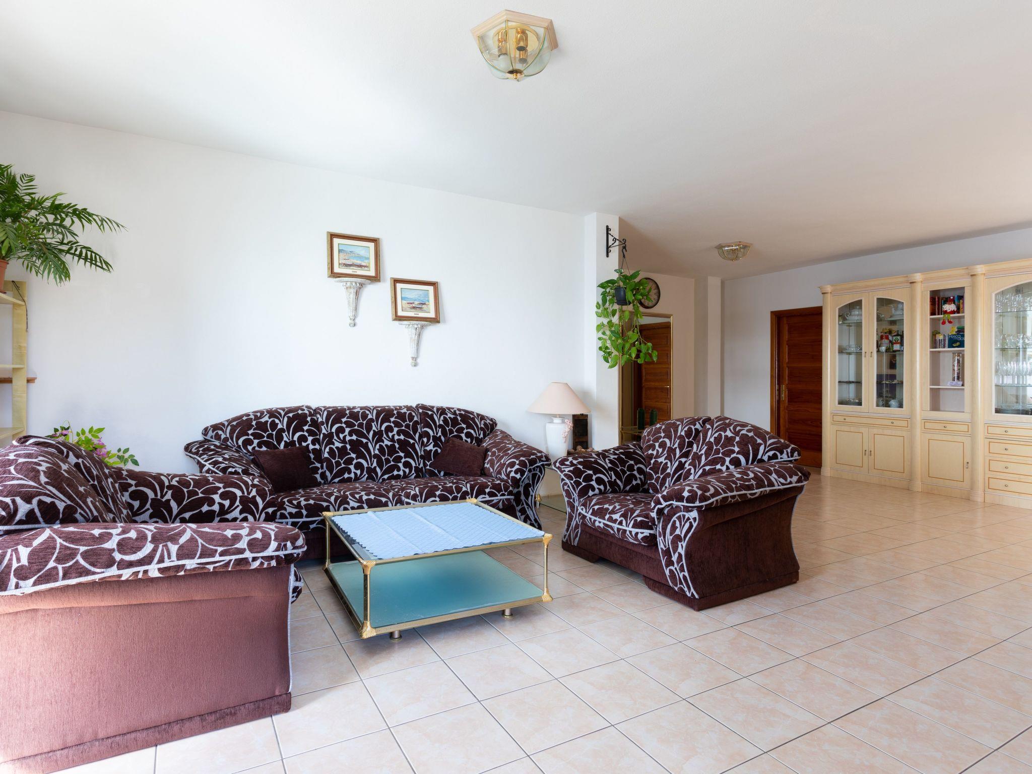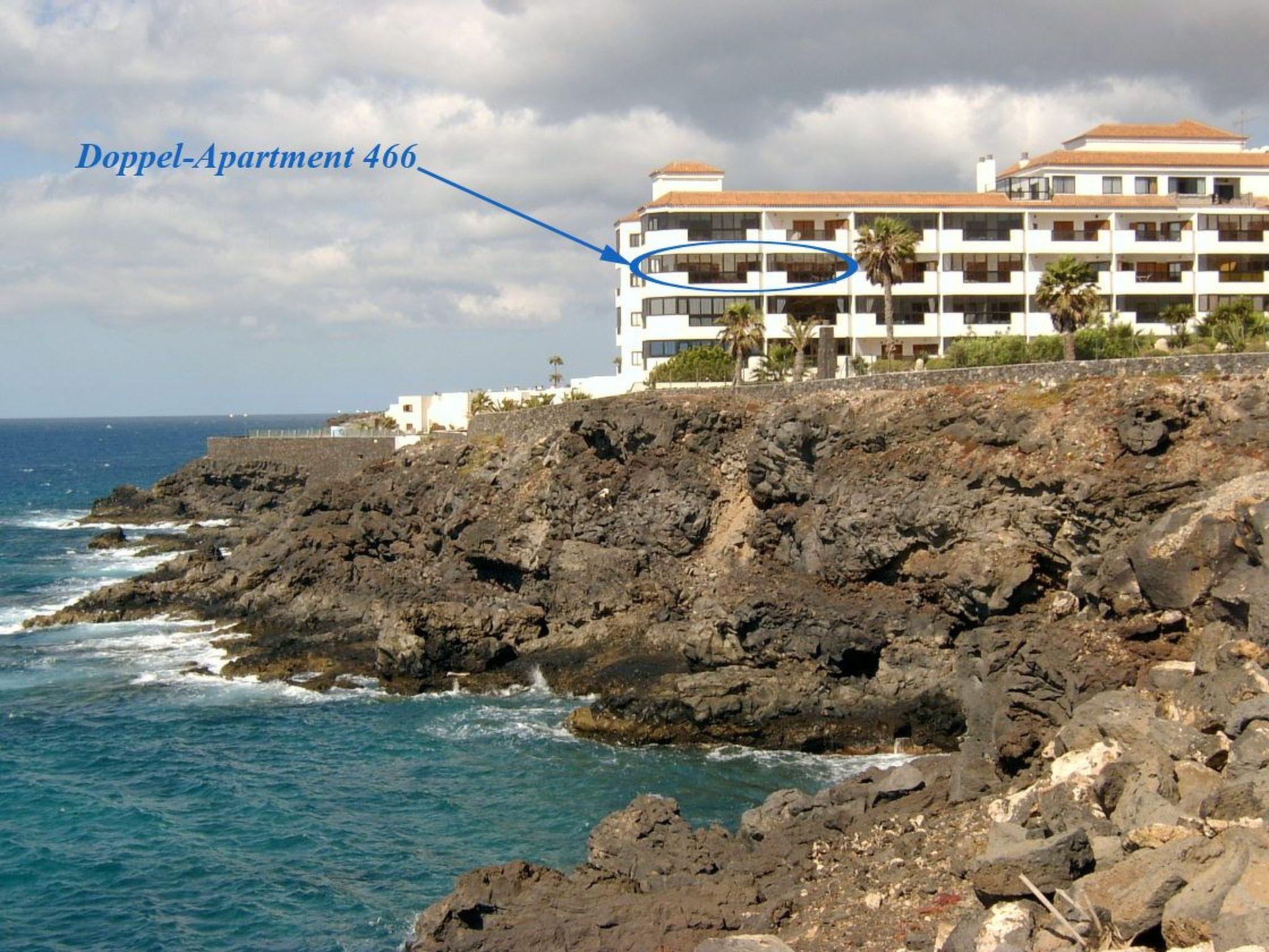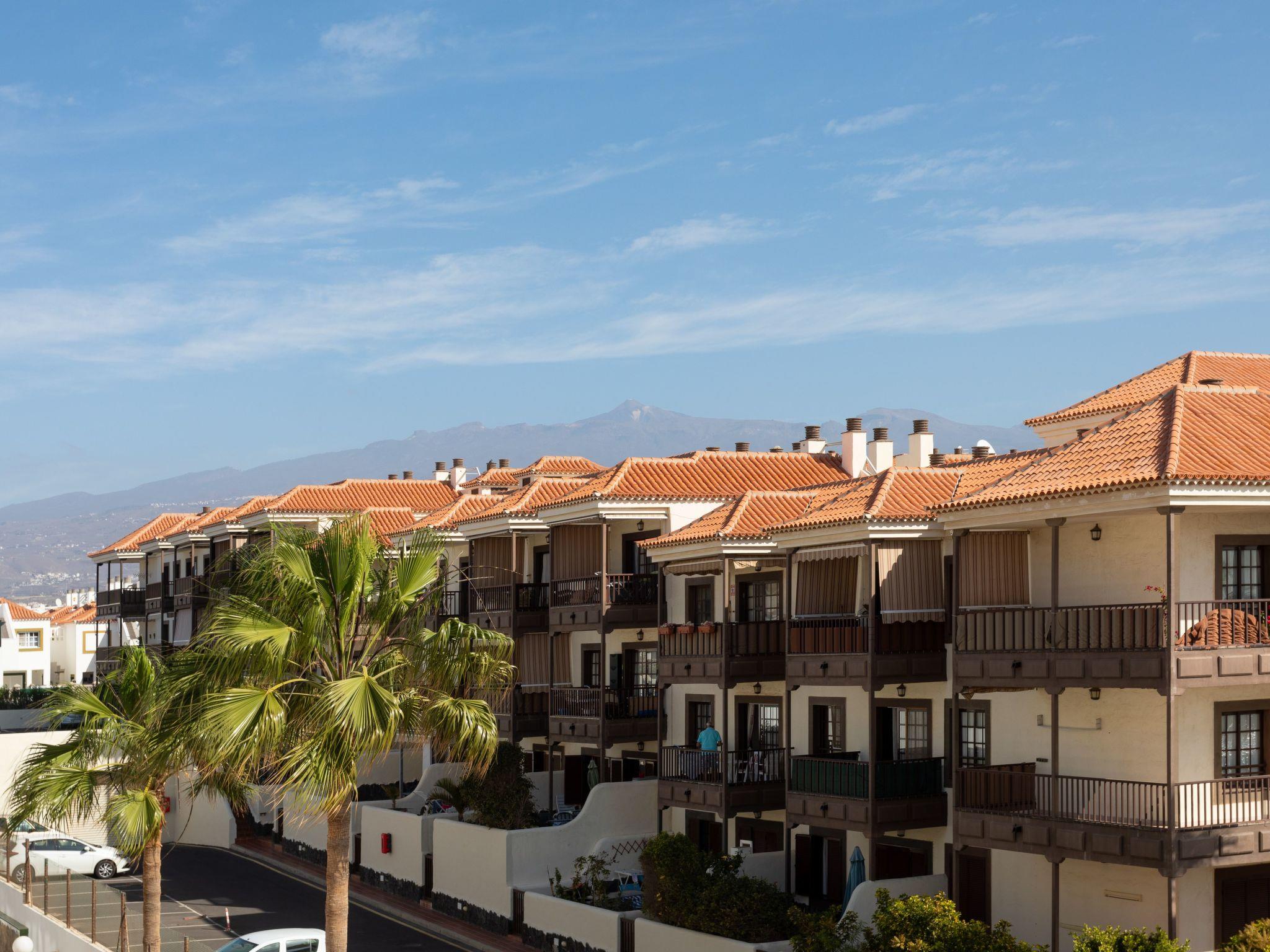 The flat also has two glazed balconies (loggias) with a breakfast table, which offer wonderful panoramic views of the pool, sea and Teide. The car park in front of the door is public.
