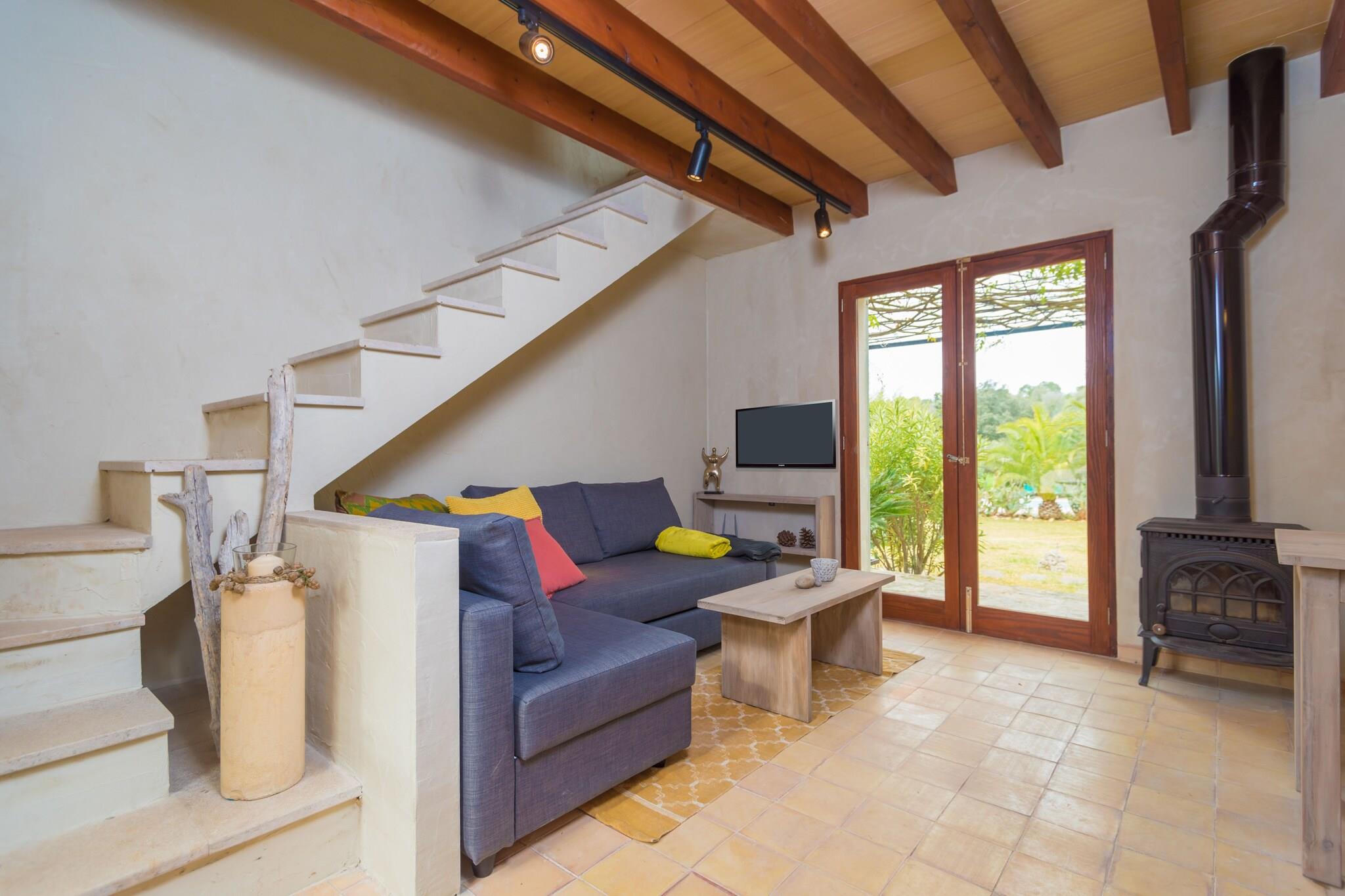 Den grønne, velholdte have på denne charmerende ejendom inviterer dig til at vandre og opdage dens fredelige hjørner, der fører til en fælles klorpool (12 x 4 m, dybde 1,3-1,6 m) omgivet af liggestole og halmparasoller - et idyllisk sted at slappe af. En dejlig plænesti fører dig til din private terrasse, perfekt til morgenmad, middage eller måltider tilberedt på grillen. Denne hyggelige 50 m² store lejlighed strækker sig over to etager. Nedenunder kombinerer opholds-, spise- og køkkenområderne med satellit-tv, cd-afspiller og en varmende brændeovn til køligere dage. Det funktionelle køkken indeholder gaskomfur. Ovenpå byder soveværelset på en dobbeltseng, klædeskab og en-suite brusebadeværelse. Et fælles vaskeri ligger kun 20 meter væk. Babyudstyr såsom barneseng og høj stol kan stilles til rådighed. Den fuldt økologiske agroturismo opererer på solpaneler og har separate huse for privatlivets fred. Ideel for sportsentusiaster, nærliggende asfalterede stier tilbyder perfekte ruter til udforskning. Centralt beliggende, kan du nemt nå alle dele af Mallorca. Nyd lokal gastronomi i nærliggende landsbyer og besøg ugentlige markeder i Costitx, Sineu og videre. De nærmeste strande, herunder Puerto de Alcúdia og Can Picafort, ligger omkring 20 minutters kørsel derfra. Bemærk venligst: Poolens åbningstider afhænger af fællesskabets regler og kan variere efter sæson. Kæledyr og arrangementer er ikke tilladt. Udvendig parkering til 2 biler er tilgængelig.