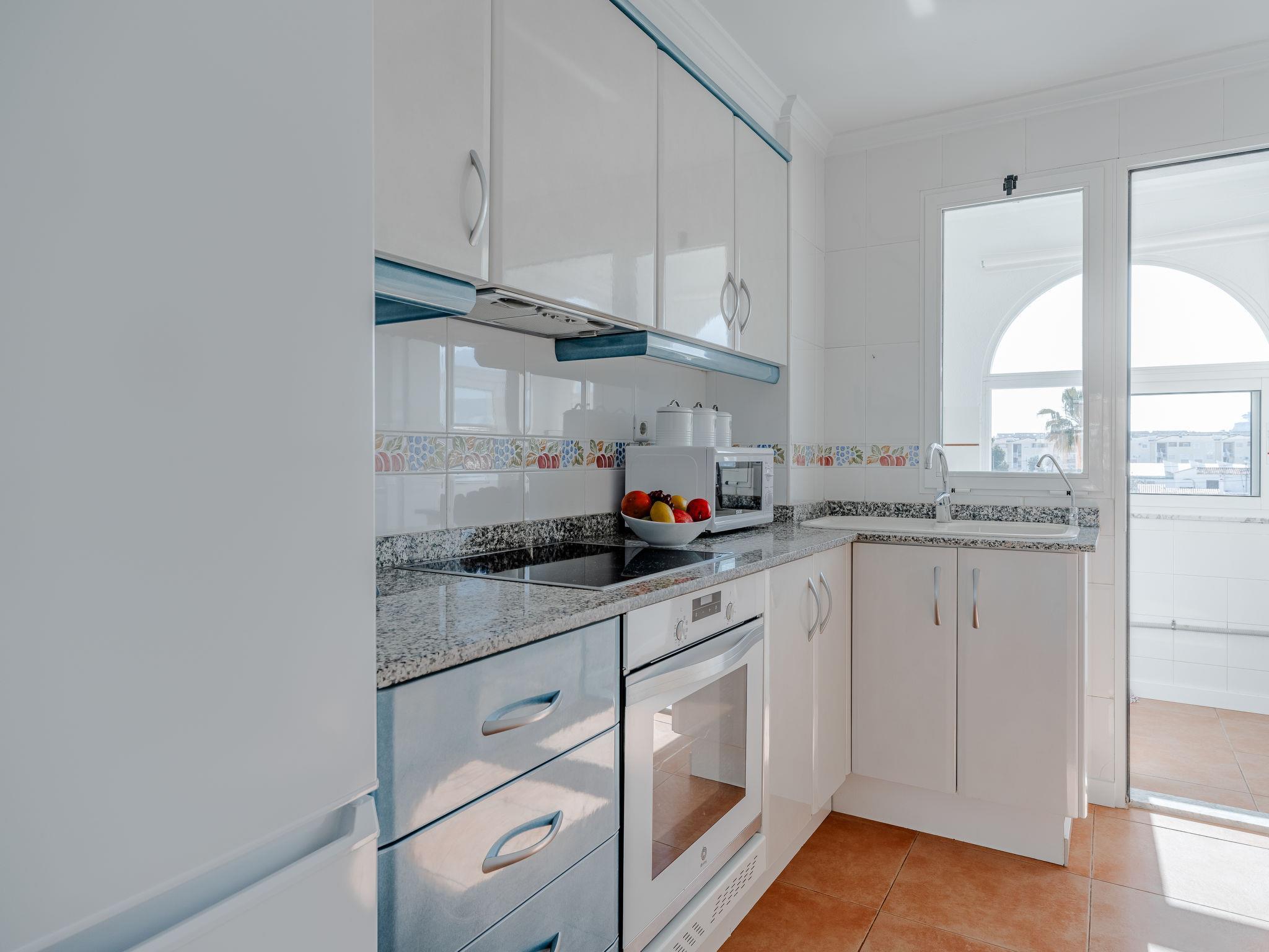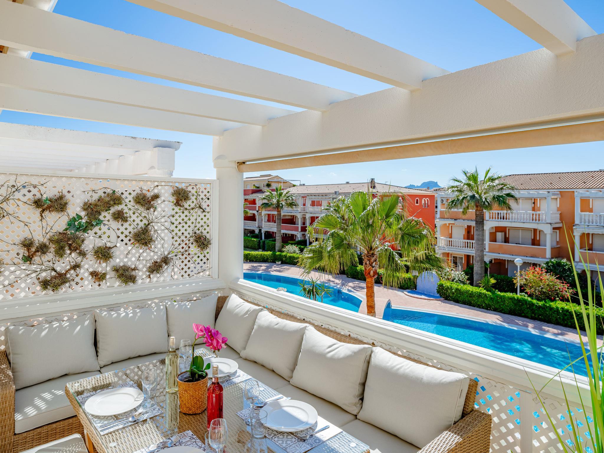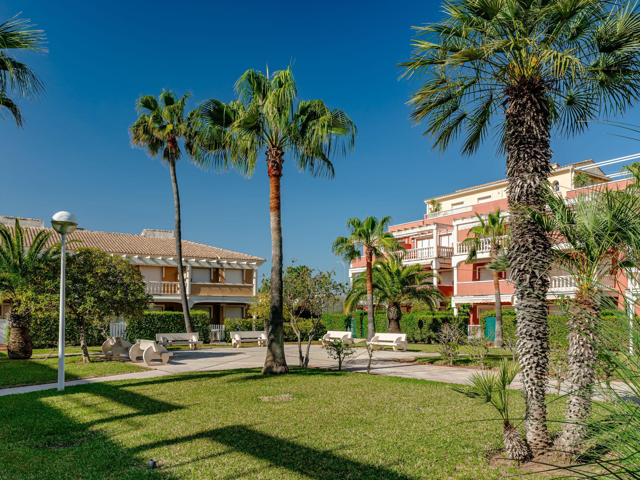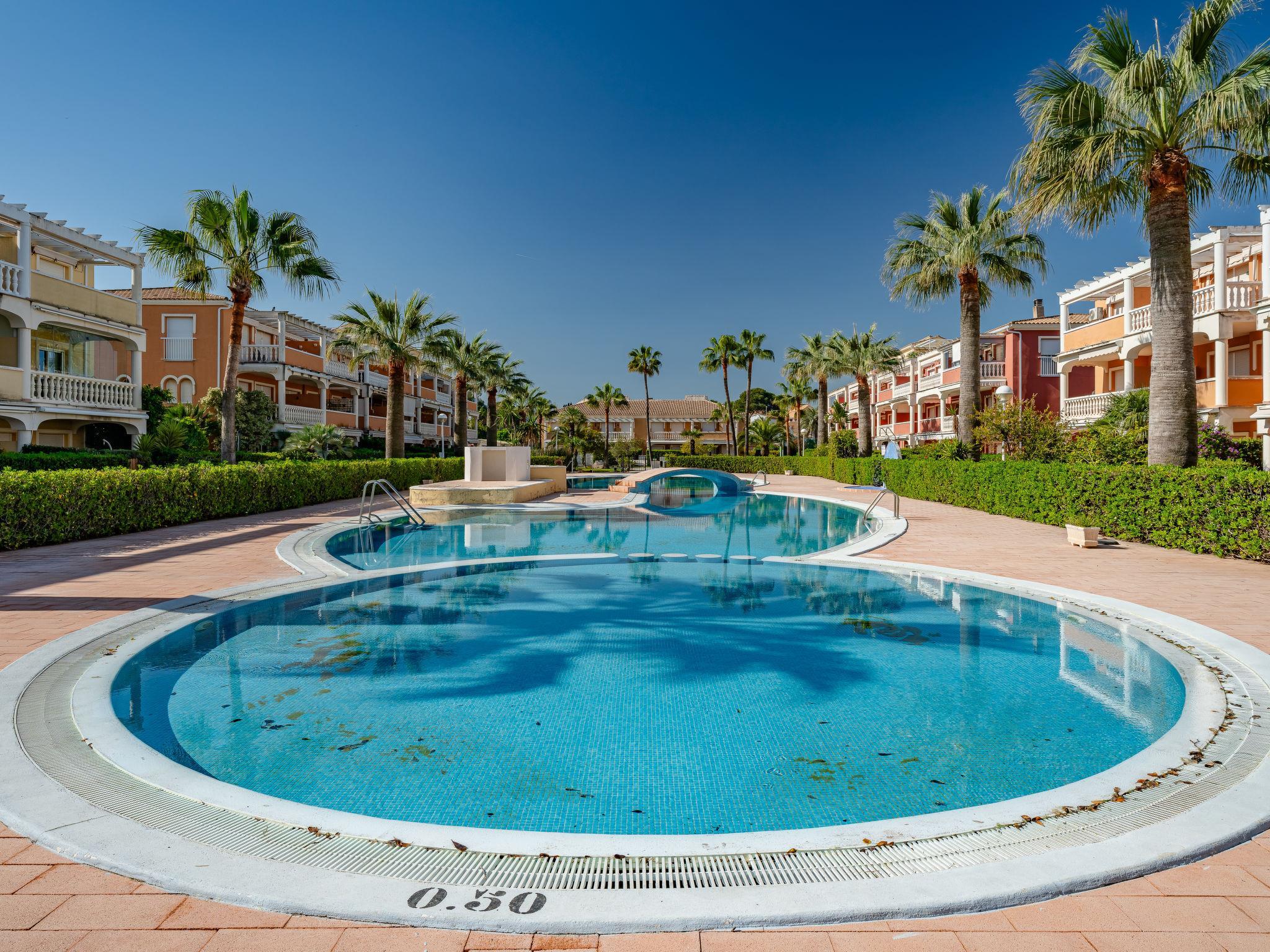 Estrella Blanca: Very beautiful, very comfortable apartment block "Estrella Blanca". In the resort 1.5 km from the centre of Dénia, 300 m from the sea, 300 m from the beach. For shared use: natural state property (fenced), swimming pool kidney-shaped (seasonal availability: 01.Jan. - 31.Dec.). Children's pool, outdoor shower, children's playground, roofed, parking. Supermarket, restaurant, bar 150 m, bus stop 160 m, railway station 2 km, sandy beach 300 m. Sports harbour 1.5 km, marina 1.5 km, surf school 1.5 km, sailing school 1.5 km. Please note: no lift.