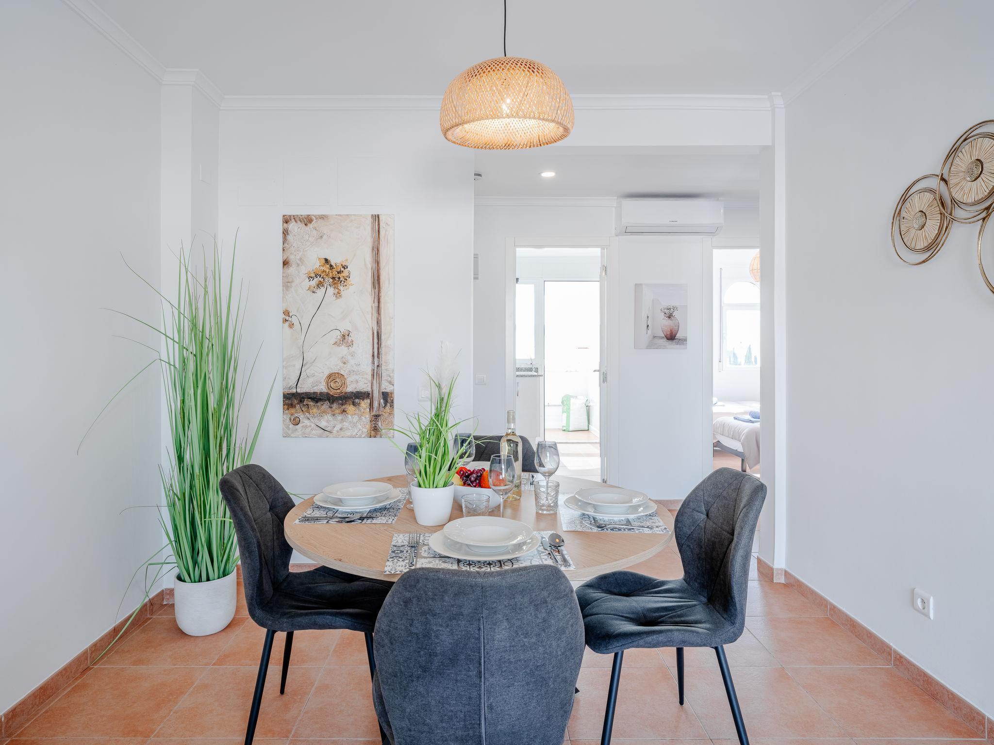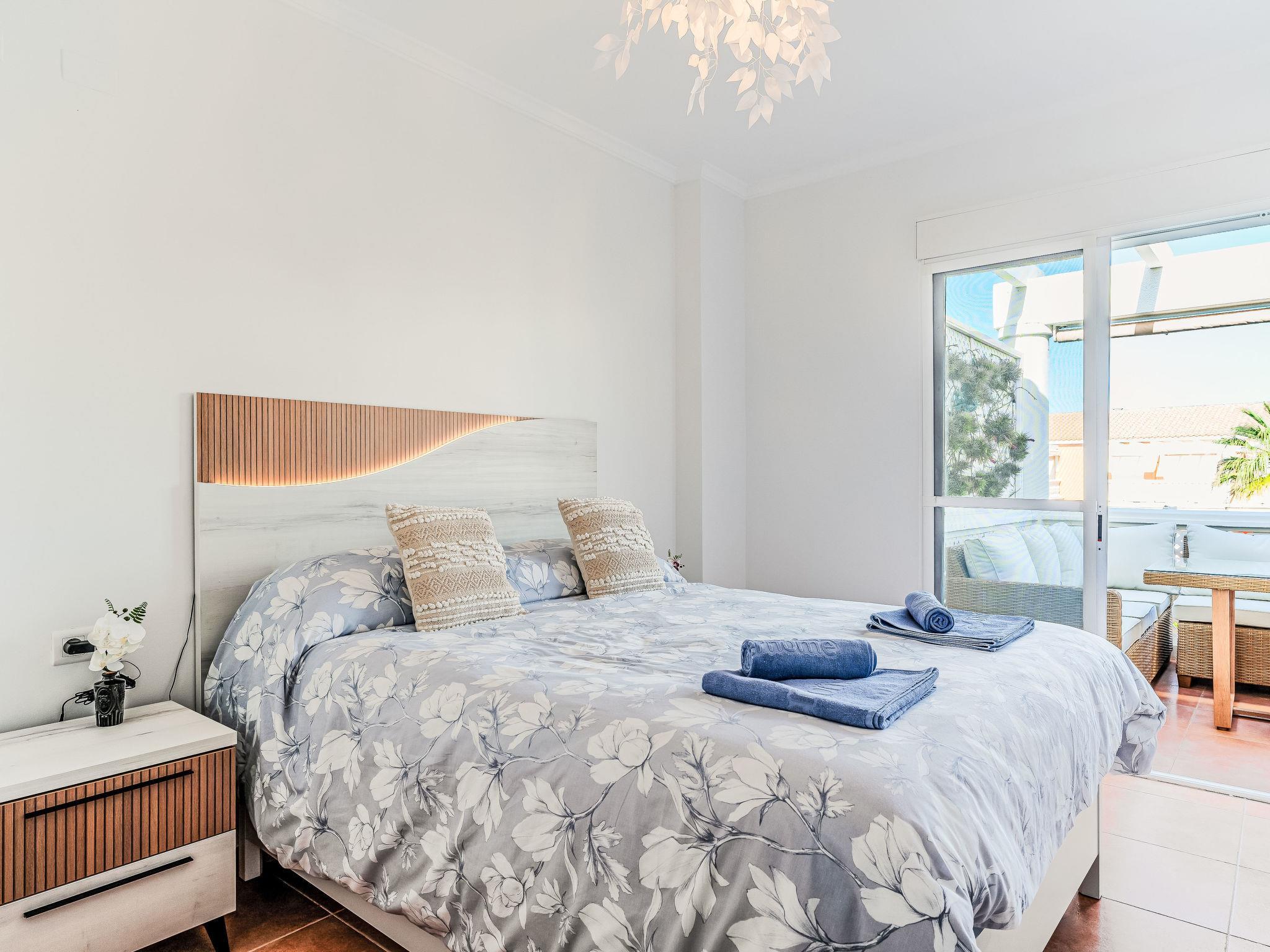 "Estrella Blanca", 3-room apartment 70 m2. Spacious and bright, renovated in 2025, very beautiful and stylish furnishings: living/dining room with satellite TV, digital TV, air conditioning, fan and forced-air heating. Exit to the terrace. 1 room with 1 french bed (160 cm, length 200 cm). Exit to the terrace. 1 room with 2 beds (90 cm, length 200 cm). Kitchen (oven, dishwasher, 3 induction hot plates, toaster, kettle, microwave, freezer, electric coffee machine, Capsules for coffee machine (Senseo) extra). Shower/WC. Large terrace 13 m2. Terrace furniture. Marvellous view of the mountains, the swimming pool and the garden. Facilities: washing machine, iron, hair dryer. Internet (WiFi, free). Parking space n 30. Please note: non-smoking house. R000000001