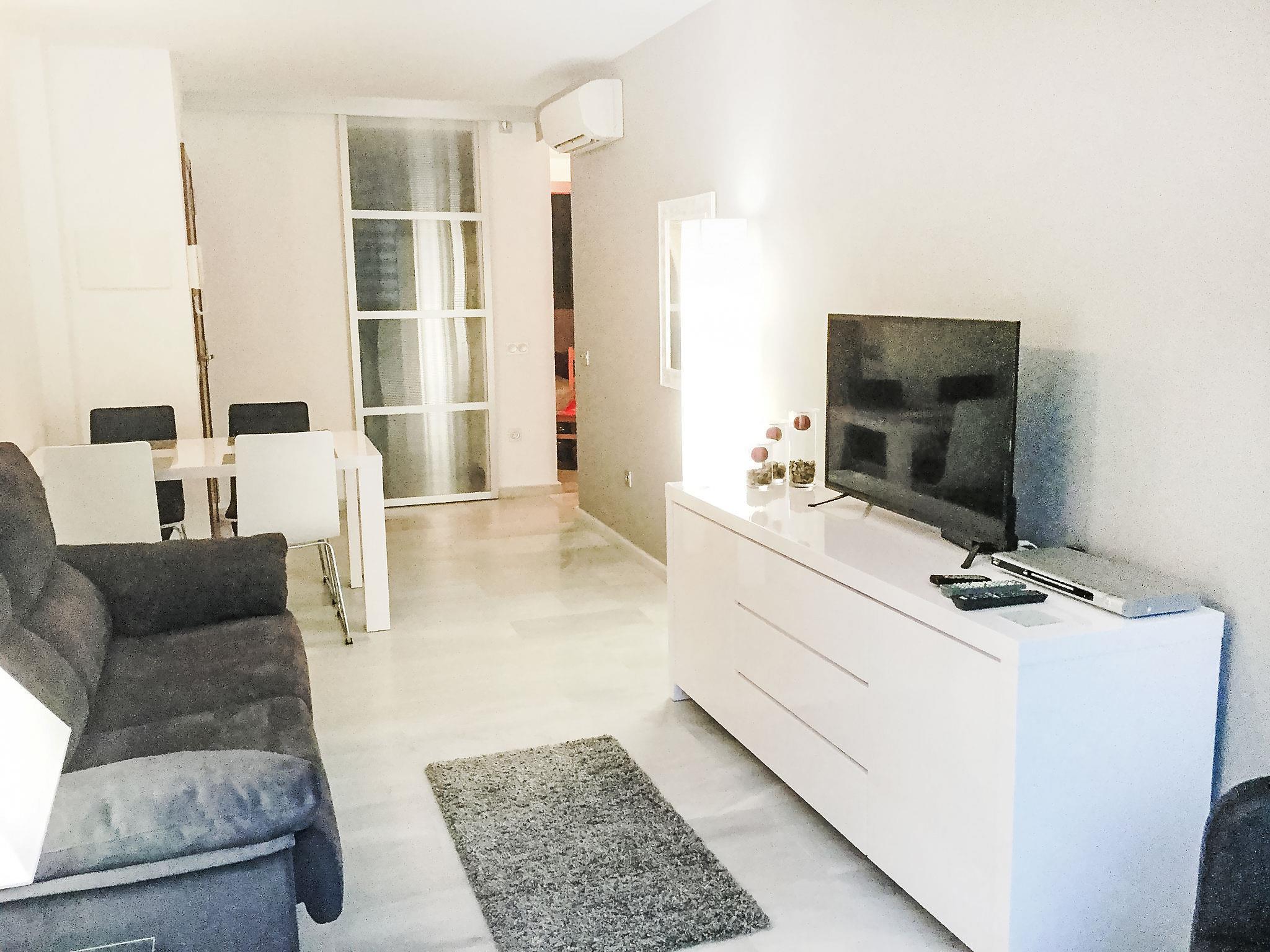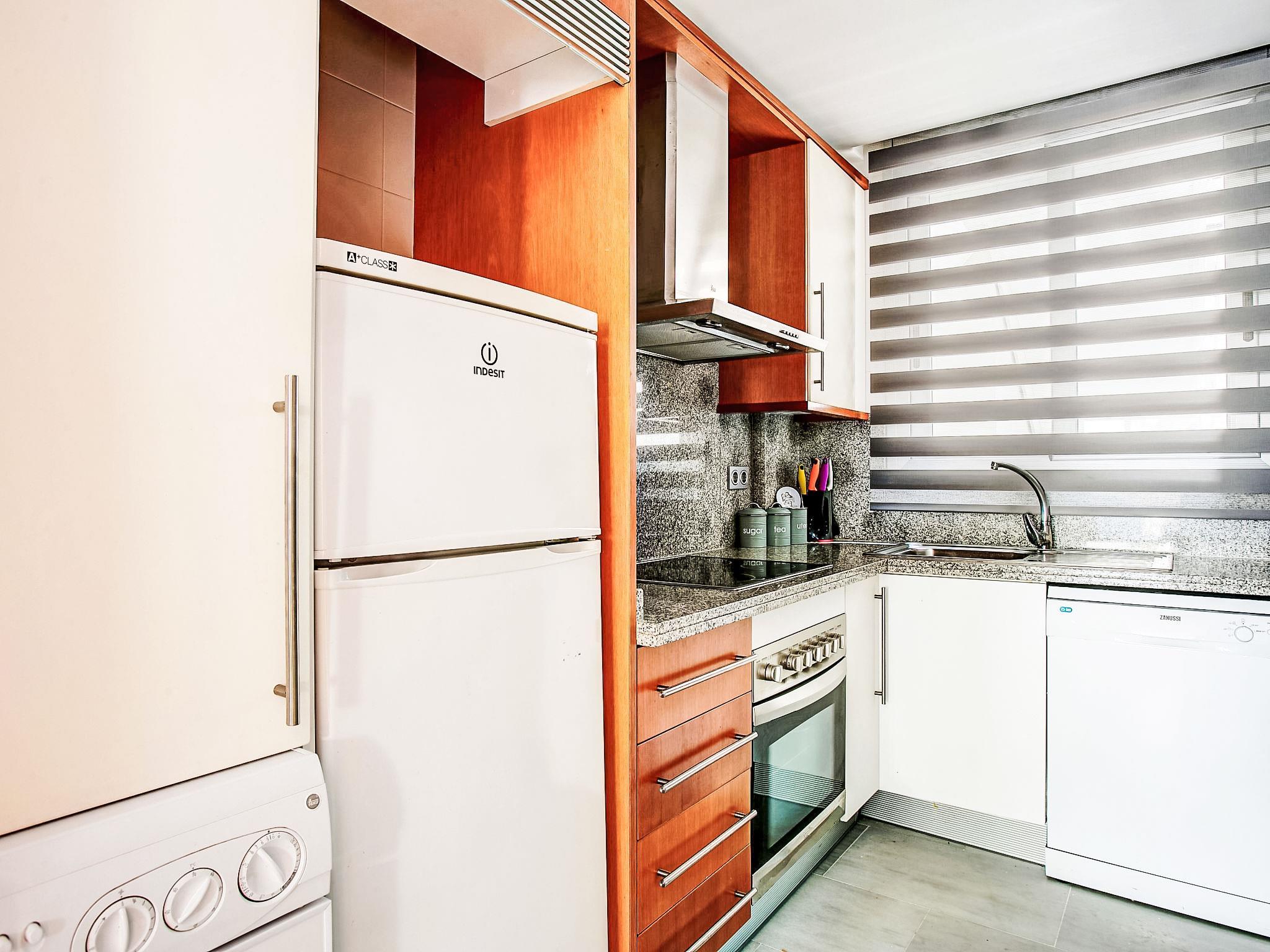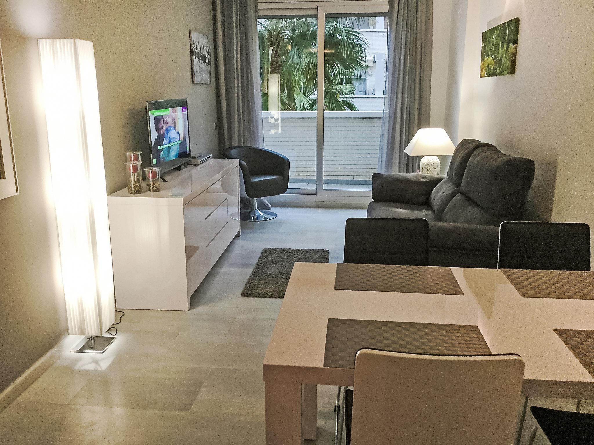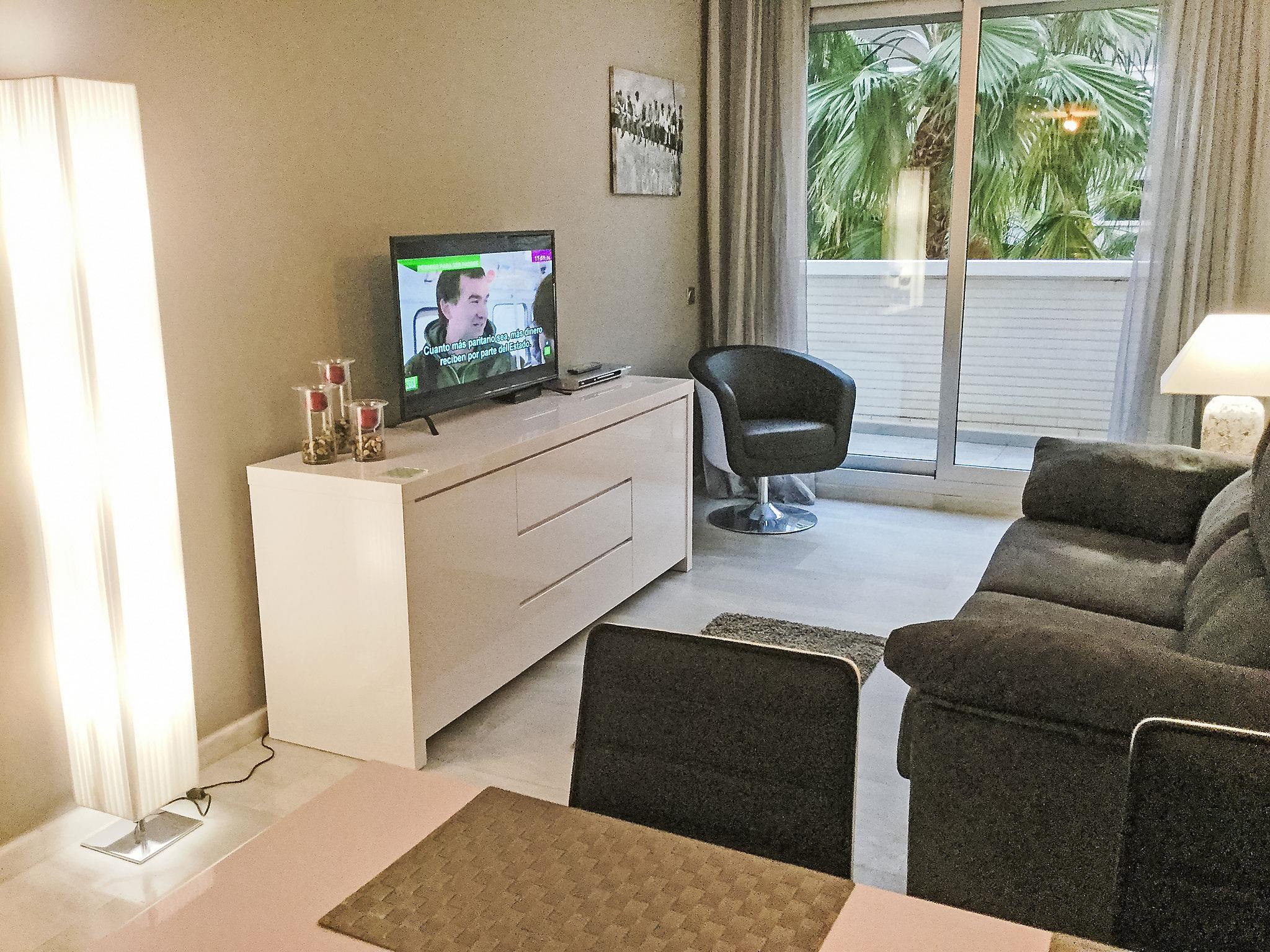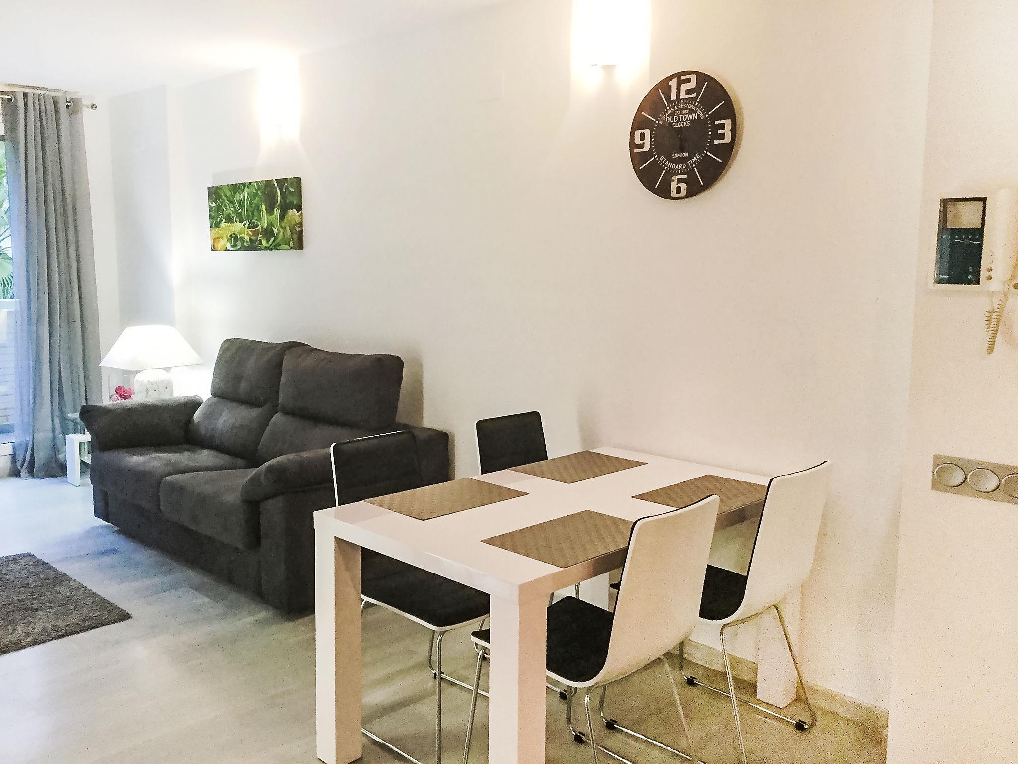 "Elegance", 3-room apartment 60 m2 on 1st floor. Living/dining room with digital TV, DVD, air conditioning and forced-air heating. Exit to the terrace. 1 room with 1 french bed (150 cm, length 190 cm), bath/bidet/WC, hand-basin, air conditioning and forced-air heating. Exit to the terrace. 1 room, window onto the courtyard with 2 beds (90 cm, length 190 cm). Kitchen (oven, dishwasher, 4 ceramic glass hob hotplates, microwave, freezer). Shower/WC. Terrace furniture. Partial view of the swimming pool and the garden. Facilities: washing machine, children's high chair, baby cot. Internet (WiFi, free). Parking. Please note: maximum 1 pet/ dog allowed. TV only ES. AT-434621-A // Reg. Nr.: ESFCTU00000304500077344500000000000000000AT-434621-A8