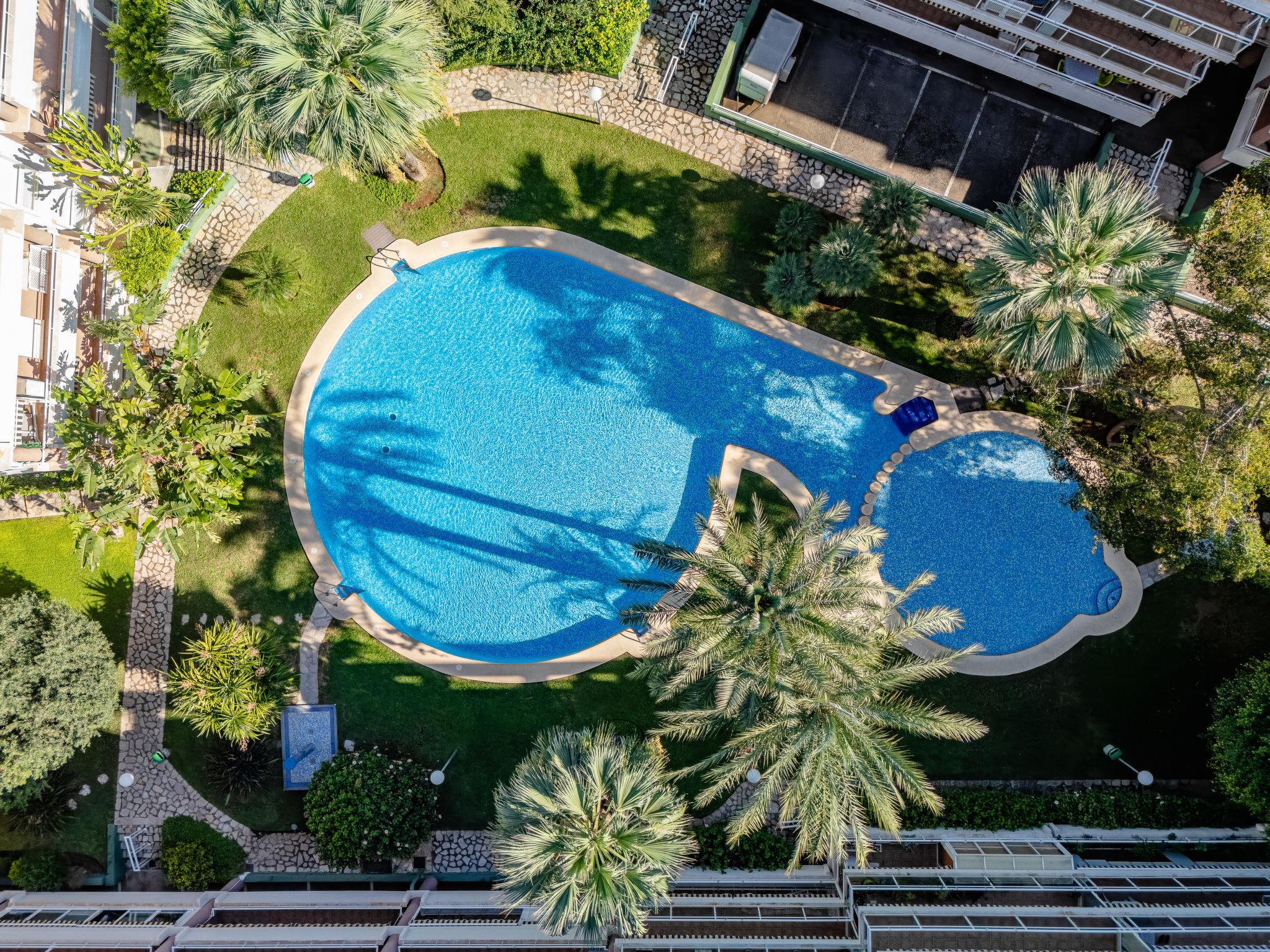 Cosy, comfortable apartment block "Dianium". In the resort 200 m from the centre of Dénia, in a central, quiet position, 200 m from the sea, 200 m from the beach. For shared use: garden with lawn and trees, swimming pool kidney-shaped (20 x 15 m, depth 40 - 210 cm, seasonal availability: 01.Jan. - 31.Dec.) with internal staircase. Children's pool, outdoor shower. In the house: lift. Shop, grocery 80 m, supermarket 350 m, restaurant, bar, café 100 m, bus stop 300 m, railway station 1.5 km, ferry 800 m, sandy beach "Les Marines" 200 m. Sports harbour, surf school, sailing school 400 m. The owner does not accept any youth groups.
