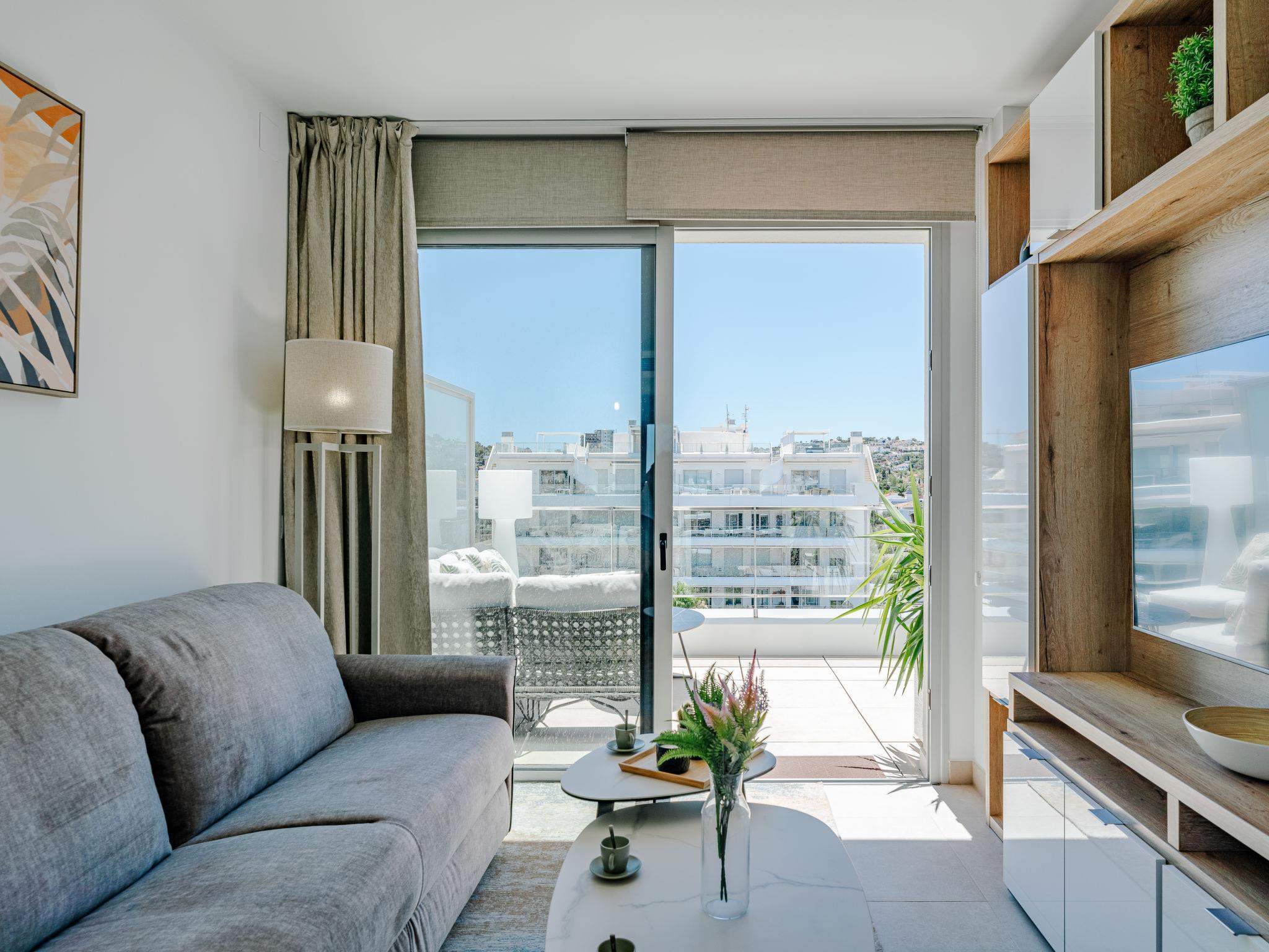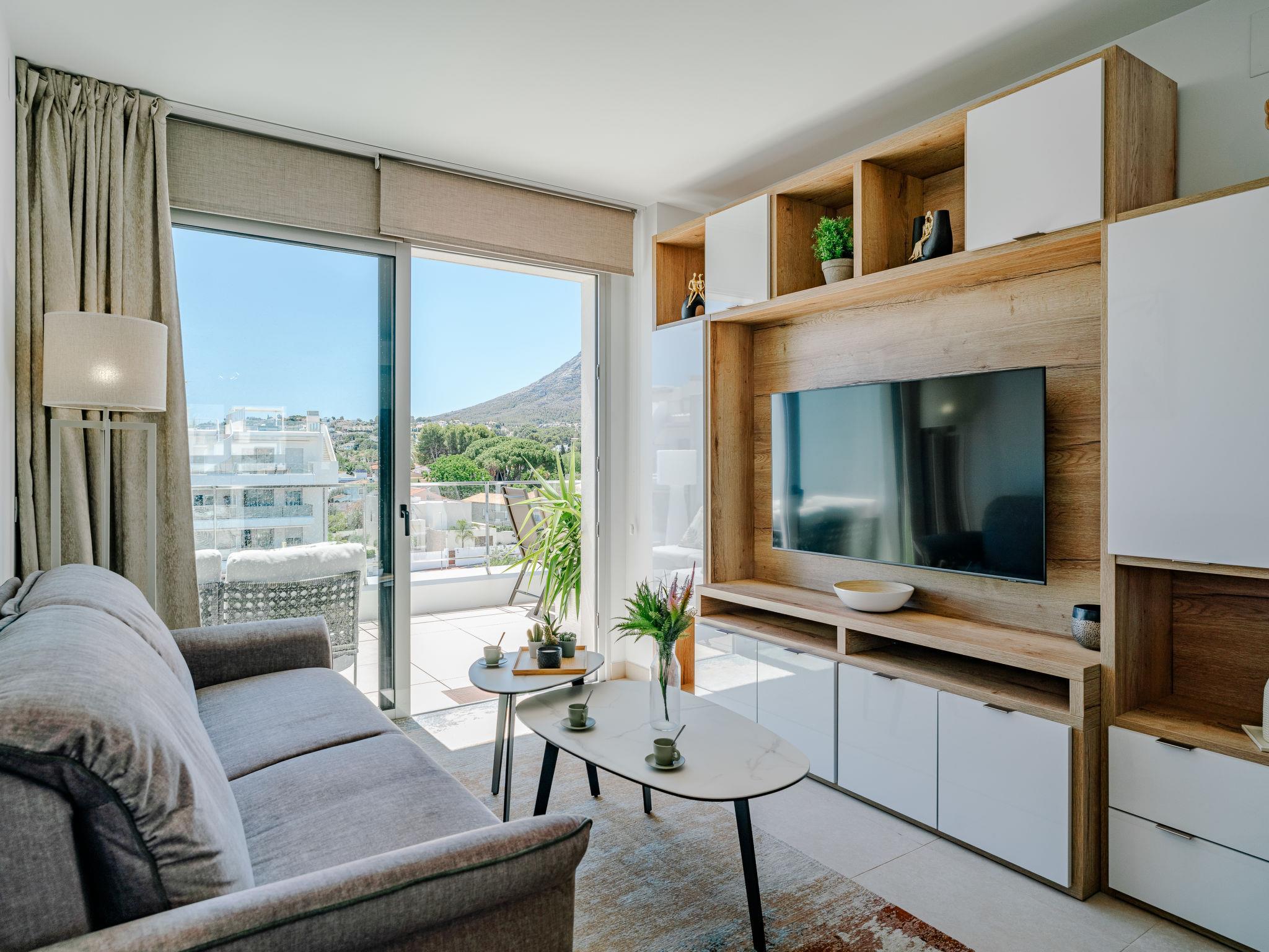 "Marina Real I Penthouse", 3-room maisonette 110 m2 on 2 levels. Spacious and bright, very beautiful and stylish furnishings: living/dining room with digital TV, air conditioning and forced-air heating. Exit to the terrace. 1 room with 1 french bed (160 cm, length 200 cm), shower/WC, air conditioning and forced-air heating. Exit to the terrace. 1 room with 1 double bed (2 x 90 cm, length 200 cm), air conditioning and forced-air heating. Exit to the terrace. Open kitchen (oven, dishwasher, 3 induction hot plates, toaster, microwave, freezer, electric coffee machine, Capsules for coffee machine (Dolce Gusto) extra). Bath/WC. Large terrace 20 m2, large terrace 40 m2. Terrace furniture, deck chairs, covered balcony, sitting area. Marvellous panoramic view of the mountains and the valley. Facilities: washing machine, iron, children's high chair, baby cot, hair dryer. Internet (WiFi, free). Garage. R00000001