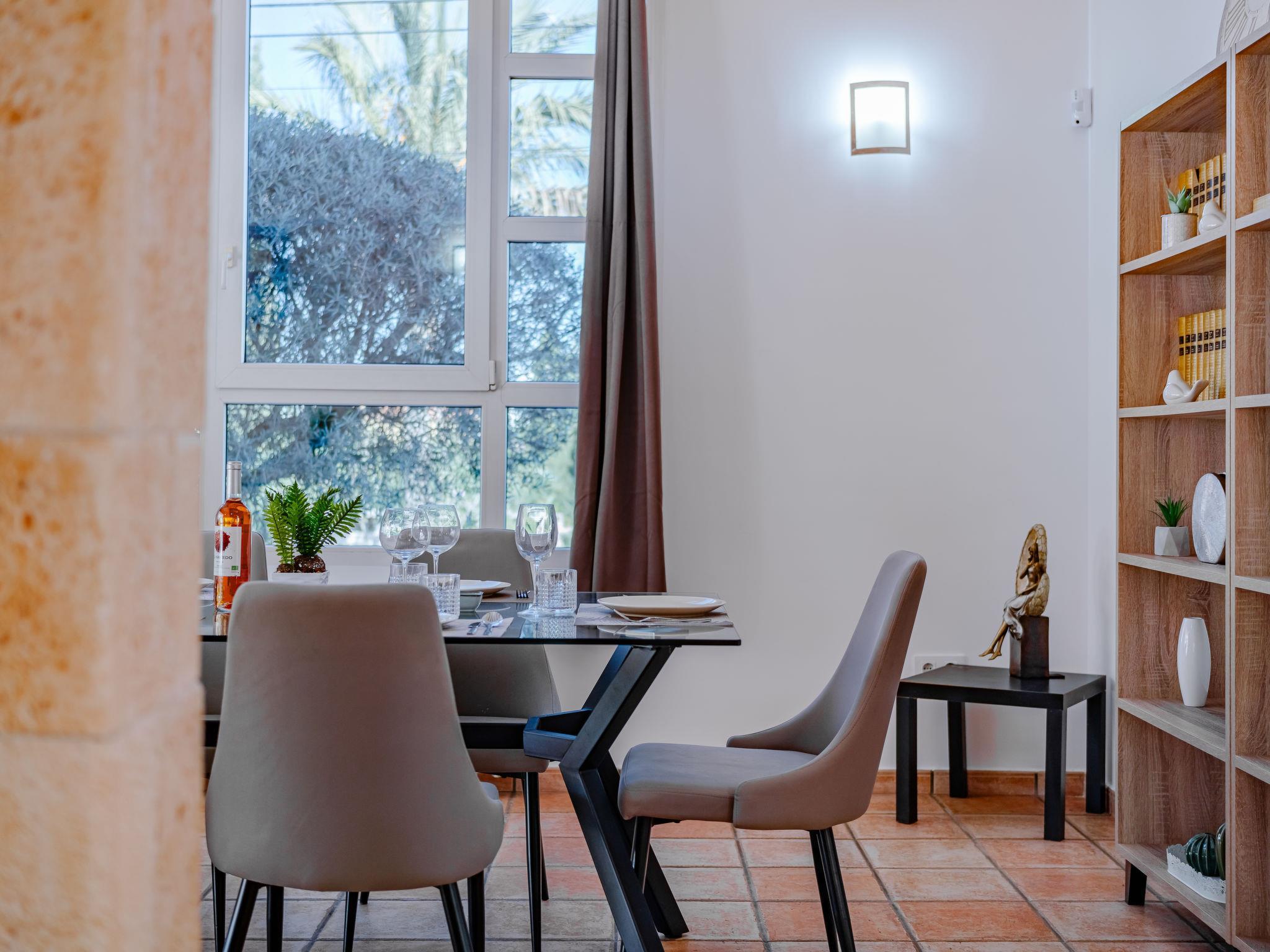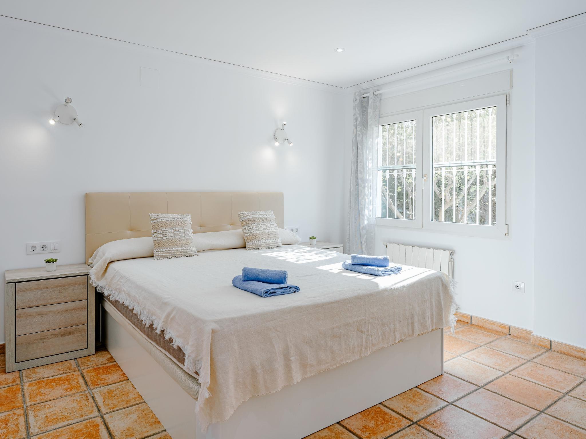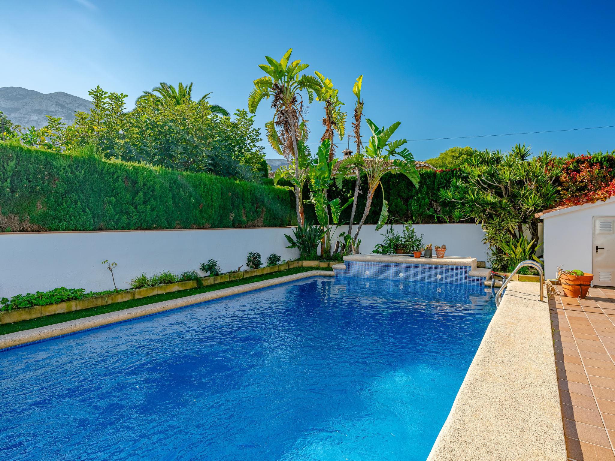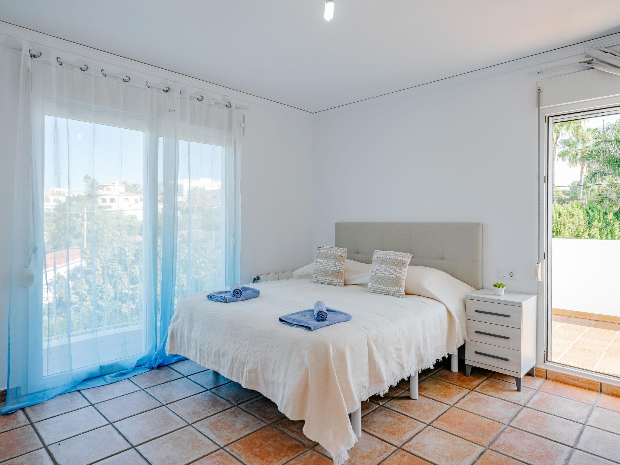 Very large, modern villa "Romer", 3 storeys, renovated in 2024. In the district of Montgo, in a quiet, sunny position, 850 m from the sea, 850 m from the beach. Private: swimming pool angular (8 x 4 m, depth 40 - 200 cm, seasonal availability: 01.Jan. - 31.Dec.) with internal staircase. Outdoor shower, pergola, garden furniture, parking (for 2 cars) on the premises. Shop 1 km, grocery 1 km, supermarket 1.8 km, restaurant 1 km, bus stop 500 m, sandy beach "Marineta Cassiana" 1 km. Sports harbour 1.3 km, marina 1.3 km, surf school 1.3 km, sailing school 1.5 km. The owner does not accept any youth groups.