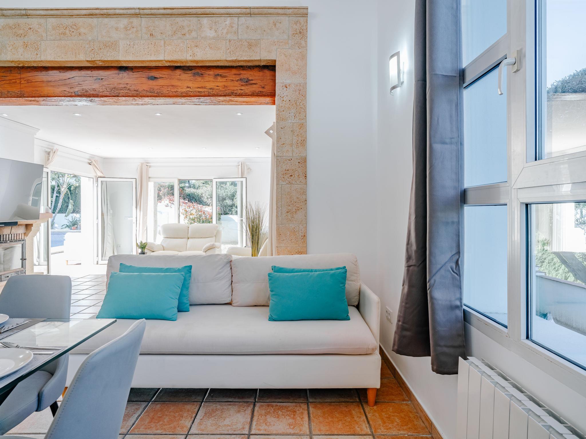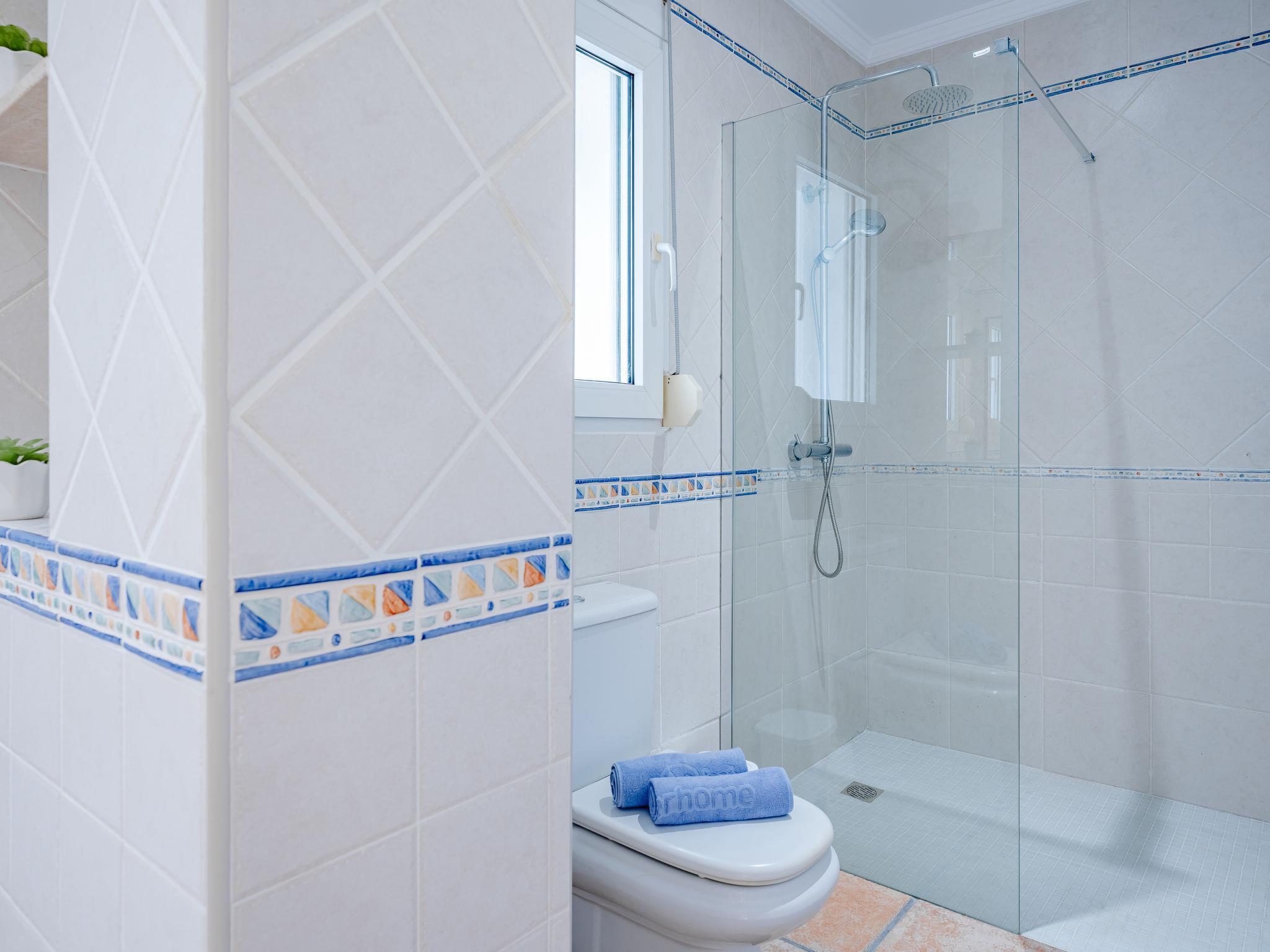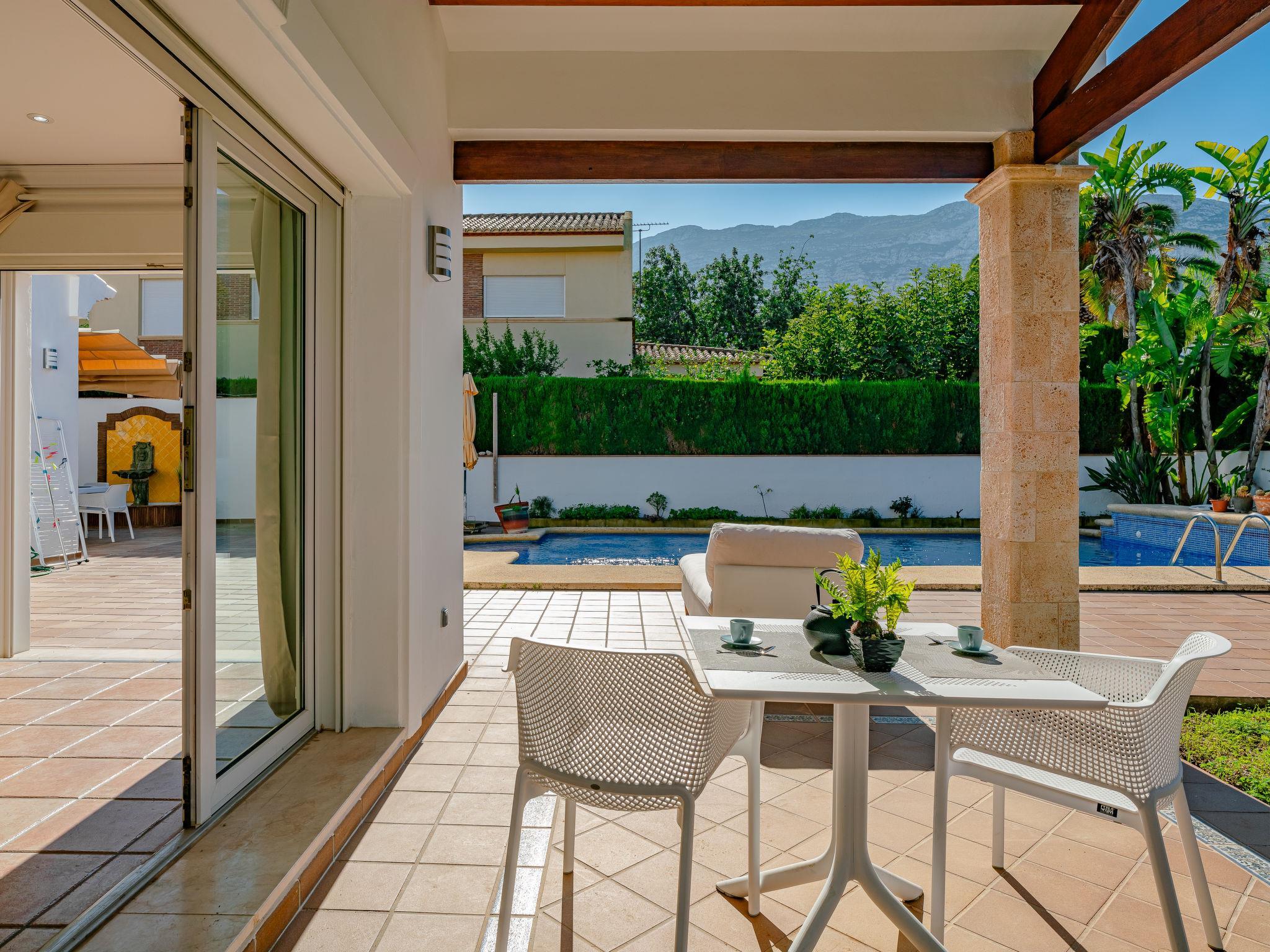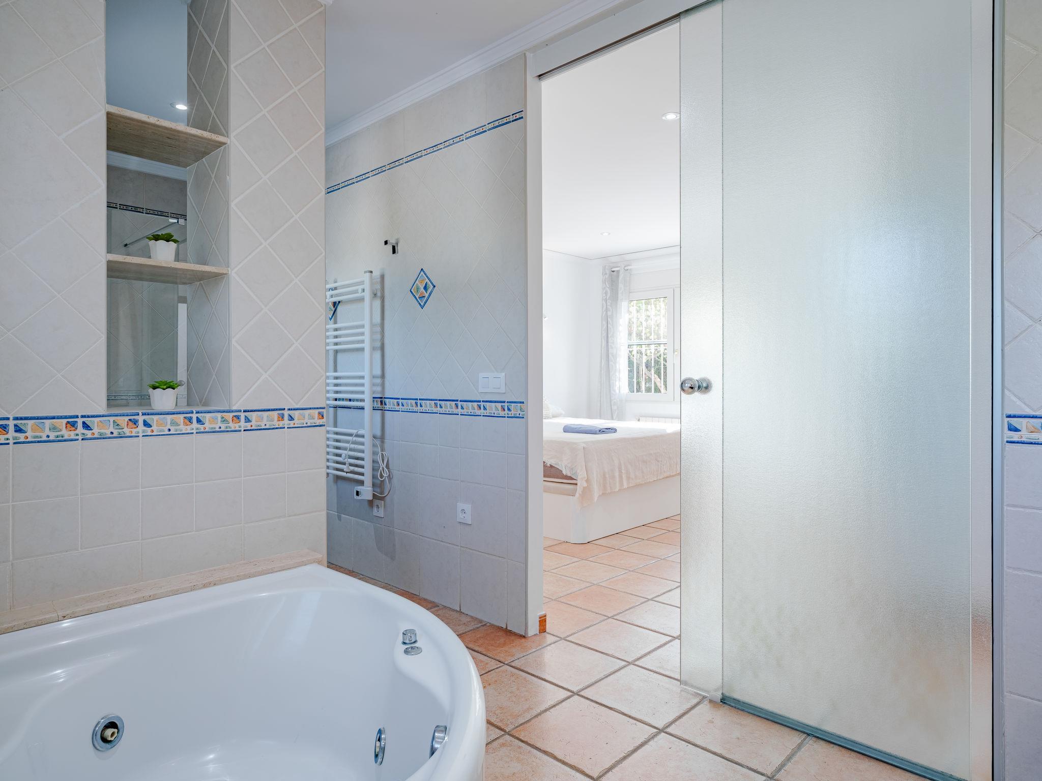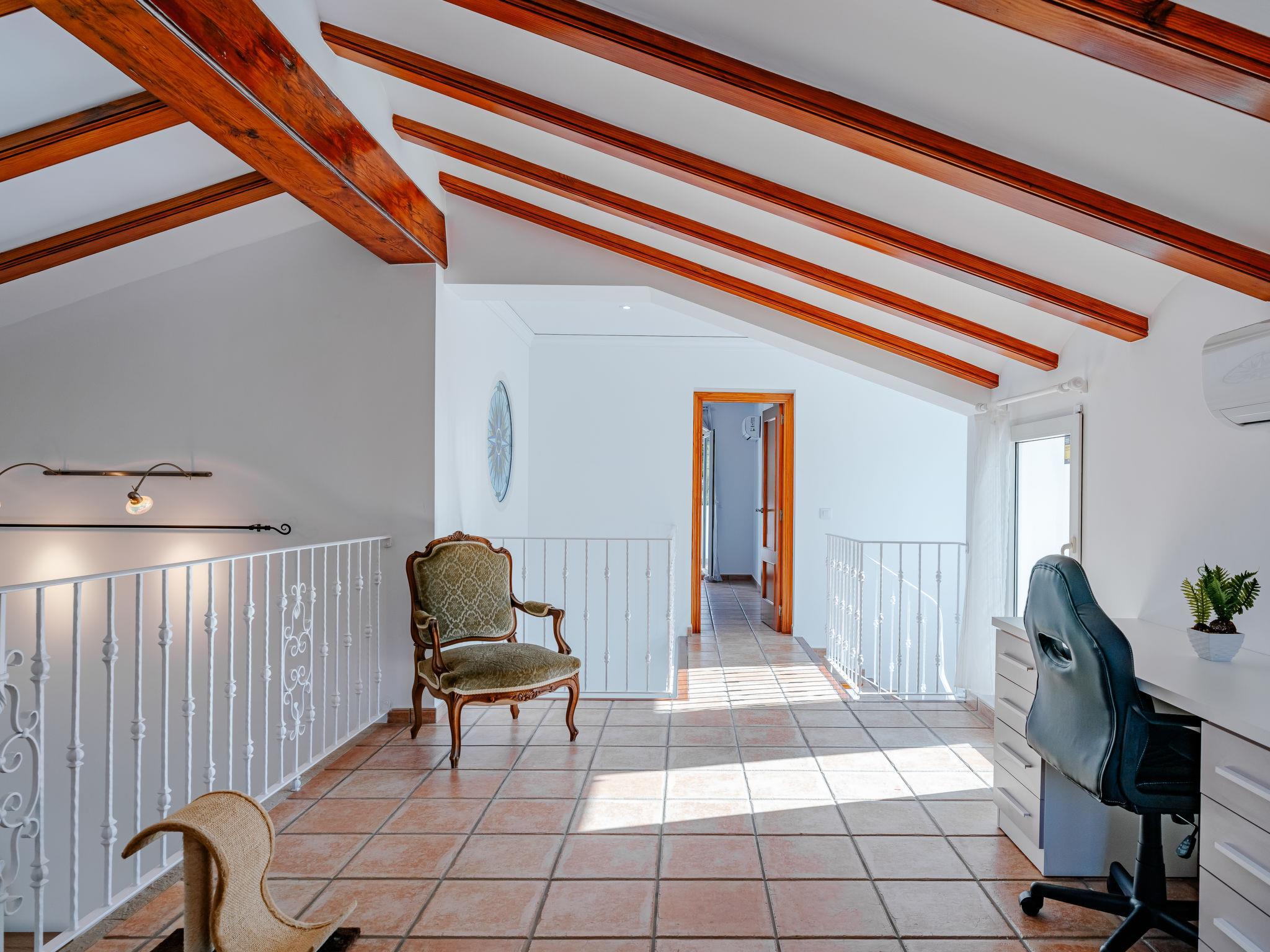 Very large, modern villa "Romer", 3 storeys, renovated in 2024. In the district of Montgo, in a quiet, sunny position, 850 m from the sea, 850 m from the beach. Private: swimming pool angular (8 x 4 m, depth 40 - 200 cm, seasonal availability: 01.Jan. - 31.Dec.) with internal staircase. Outdoor shower, pergola, garden furniture, parking (for 2 cars) on the premises. Shop 1 km, grocery 1 km, supermarket 1.8 km, restaurant 1 km, bus stop 500 m, sandy beach "Marineta Cassiana" 1 km. Sports harbour 1.3 km, marina 1.3 km, surf school 1.3 km, sailing school 1.5 km. The owner does not accept any youth groups.