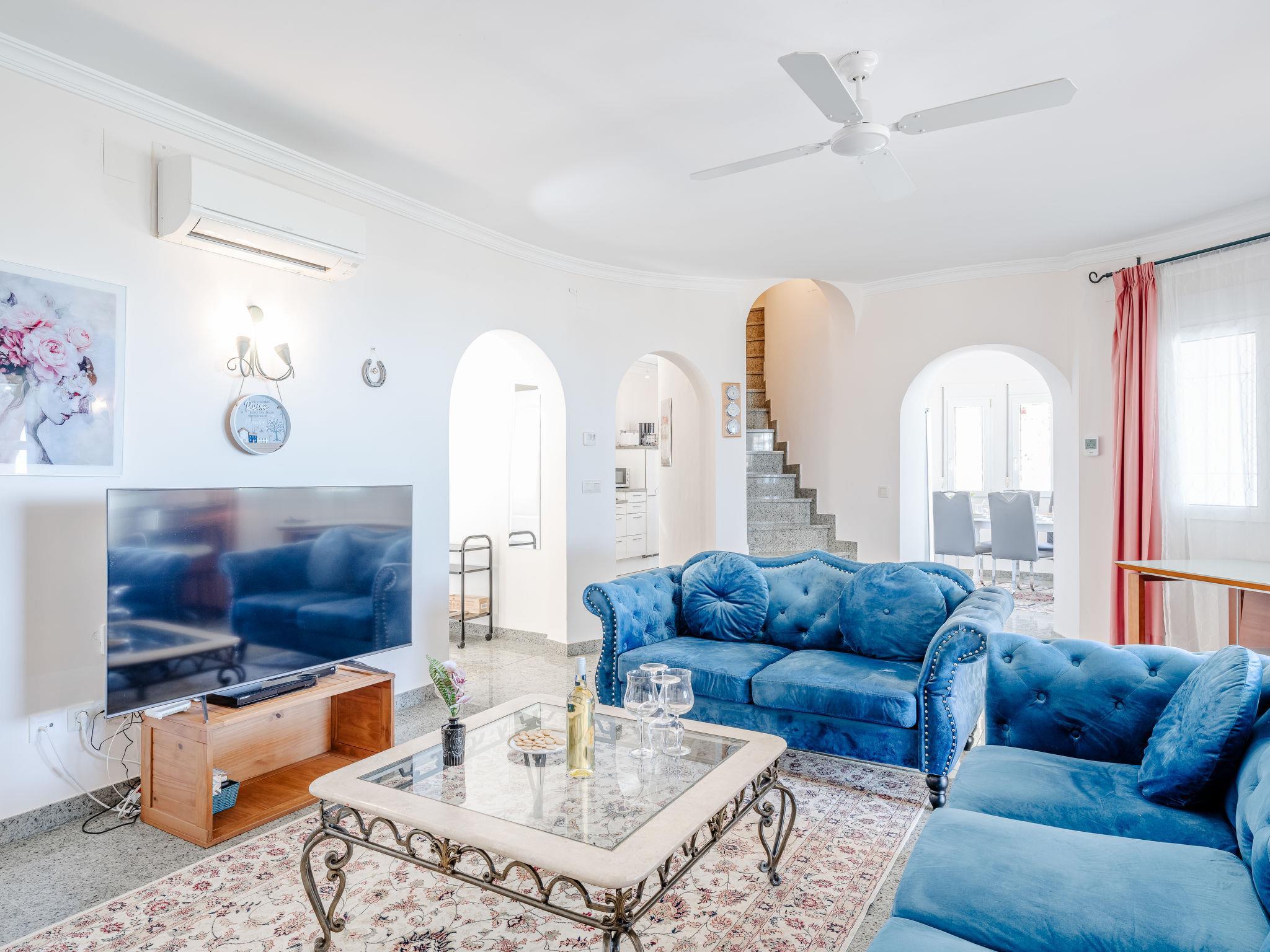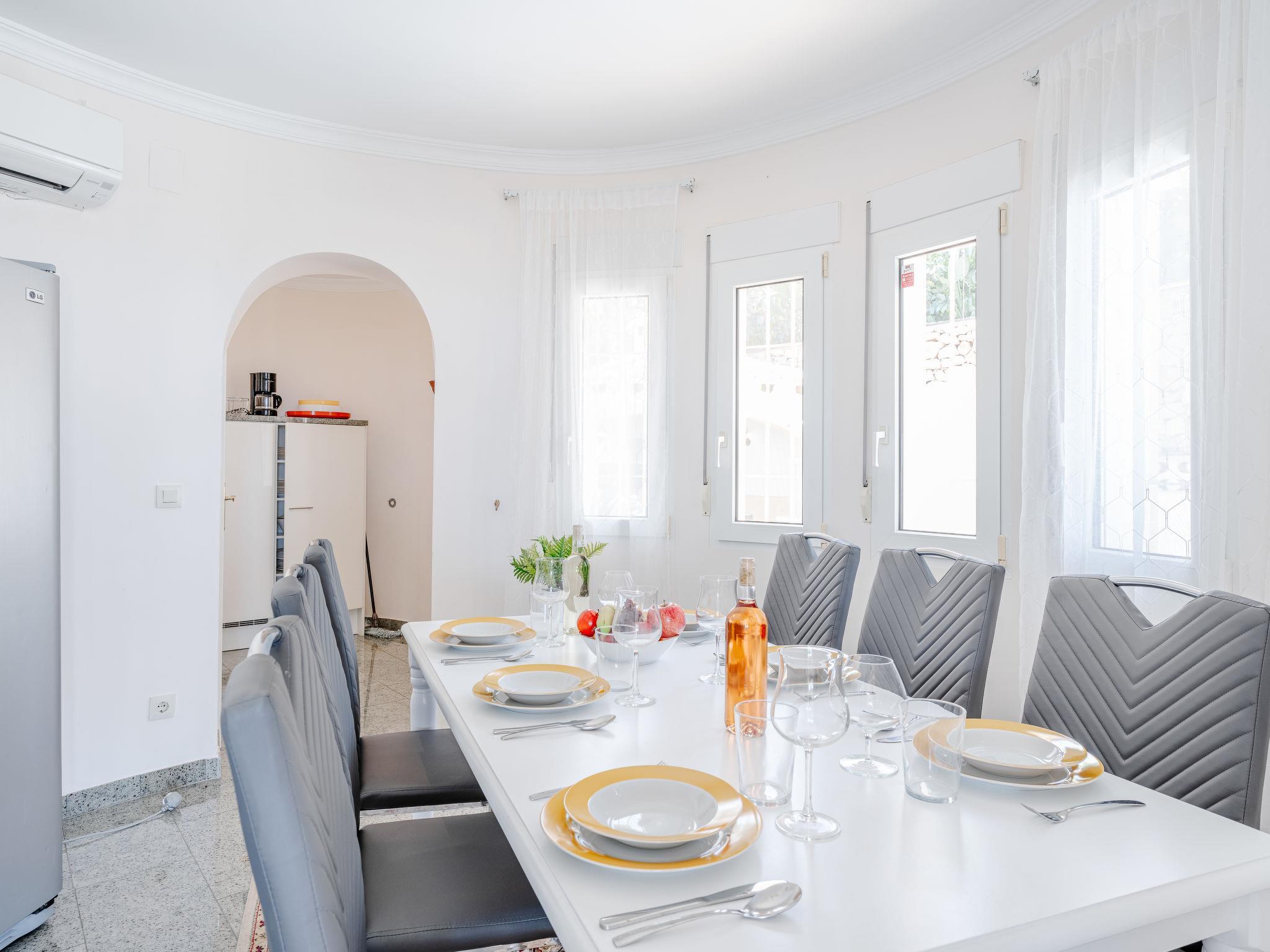Very large, cosy, comfortable villa "Rosa", 2 storeys. In the resort 3 km from the centre of Dénia, in a quiet, sunny position, 1.7 km from the sea, 1.7 km from the beach. Private: beautiful, well-kept garden, swimming pool kidney shaped (10 x 5 m, depth 110 - 210 cm, seasonal availability: 01.Jan. - 31.Dec.) with internal staircase. Outdoor shower, pergola, garden furniture, barbecue house, parking on the premises. Supermarket 2.5 km, restaurant 1.6 km, café 1.5 km, bus stop 3 km, railway station 3 km, ferry 4.6 km, sandy beach "Marineta Cassiana" 1.7 km. Sports harbour 2.4 km, surf school 1.7 km, sailing school 1.7 km, tennis 5 km. The owner does not accept any youth groups.