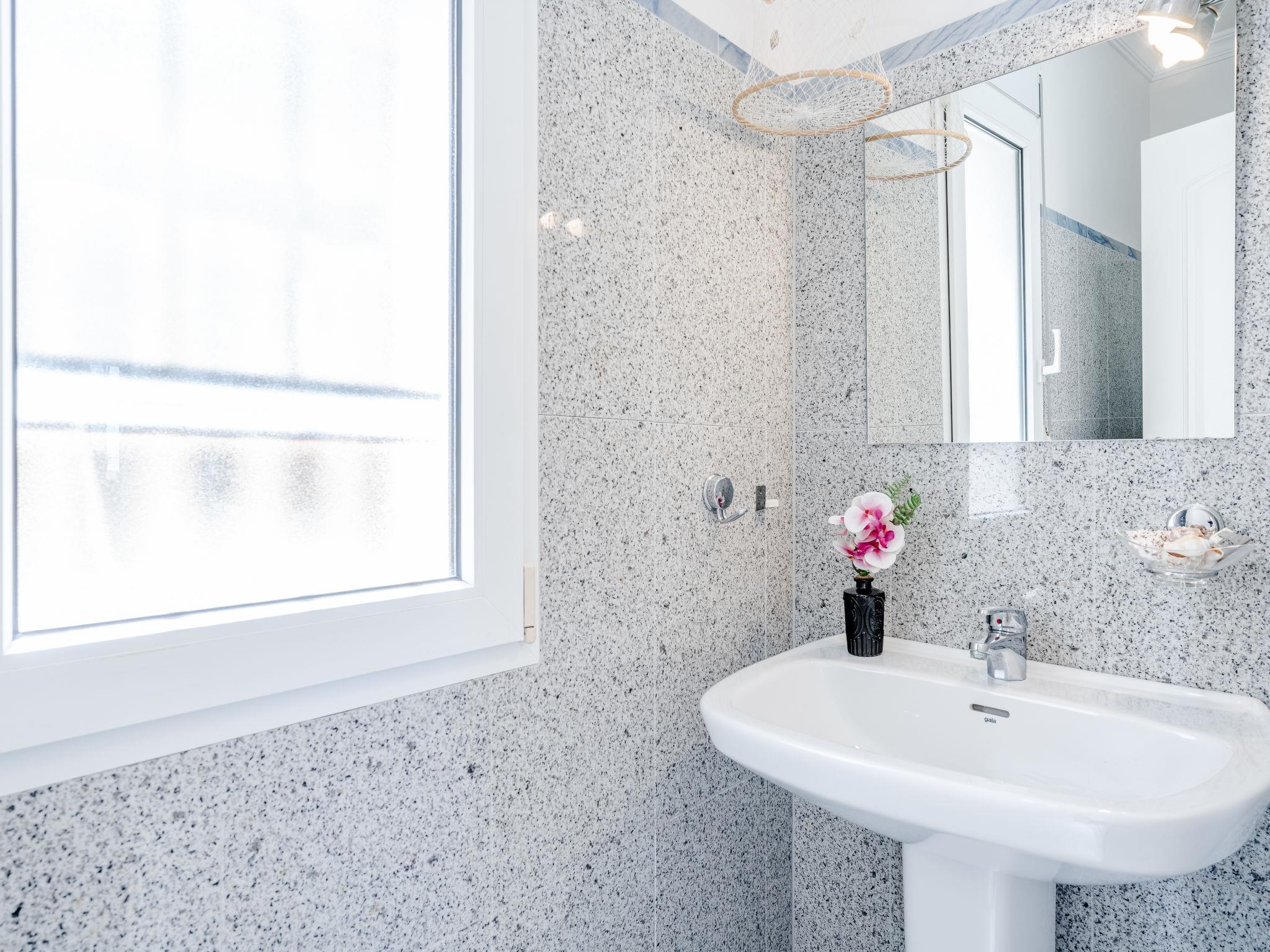 "Villa Rosa", 5-room house 270 m2 on 2 levels. Spacious and bright, very comfortable and cosy furnishings: living/dining room with open-hearth fireplace, satellite TV, air conditioning, fan and forced-air heating. Exit to the terrace. 1 room with 1 french bed (2 x 90 cm, length 200 cm), air conditioning and forced-air heating. Open kitchen (4 hot plates, oven, dishwasher, 2 ceramic glass hob hotplates, toaster, microwave, freezer, electric coffee machine). Sep. WC, bath/shower/WC. Floor heating. On the lower ground floor: living/dining room with air conditioning and forced-air heating. Upper floor: 1 room with 2 beds (90 cm, length 200 cm). 1 room with 1 french bed (2 x 90 cm, length 200 cm), shower/WC, air conditioning and forced-air heating. Patio. Terrace furniture, barbecue, covered balcony. Very beautiful view of the sea. Facilities: washing machine, dryer, iron, hair dryer. Internet (WiFi, free). CV-VUT0519341-A // Reg. Nr.: ESFCTU00000305500025946700000000000000000AT-437917-A3