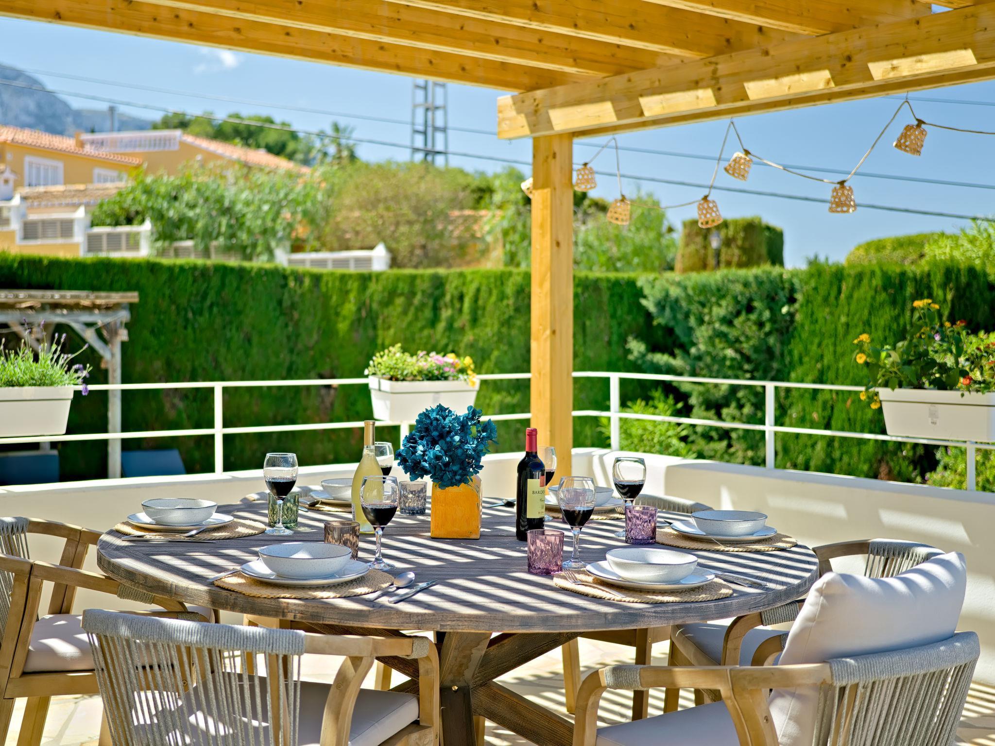 Very large, very beautiful, luxurious villa "La Colina", 2 storeys. In the resort 2.5 km from the centre of Denia, in a quiet, sunny position, 1.5 km from the sea, 1.5 km from the beach. Private: large, well-kept terraced garden, orchard, swimming pool (8 x 4 m, depth 8 - 210 cm, seasonal availability: 01.Jan. - 31.Dec.) with internal staircase. Outdoor shower, patio, pergola, garden furniture, parking on the premises. Supermarket 2.5 km, restaurant 1 km, bakery 2.5 km, bus stop 2.9 km, railway station 2.9 km, ferry 4.5 km, sandy beach "Marineta Cassiana" 1.5 km. Sports harbour 1.5 km, surf school 1.5 km. The owner does not accept any youth groups.