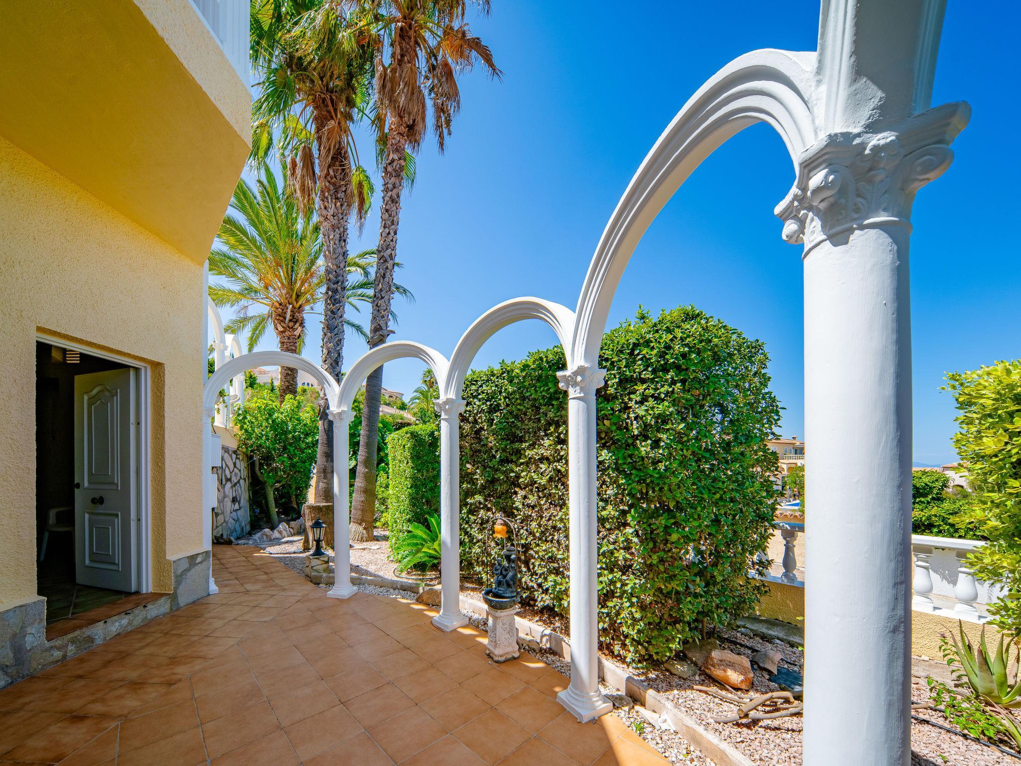 Very large, very beautiful villa "Marques", 2 storeys. In the district of Marquesa VI, in a quiet, sunny position residential area (villas), 5.3 km from the sea, 5.3 km from the beach. Private: large, beautiful, well-kept terraced garden, swimming pool angular (6 x 4 m, depth 120 - 170 cm, seasonal availability: 01.Jan. - 31.Dec.) with internal staircase. Outdoor shower, pergola, parking (for 3 cars) on the premises. Supermarket 3.7 km, restaurant 2.8 km, bus stop 4.3 km, railway station 4.1 km, sandy beach "La Marineta Cassiana" 5.8 km. Surf school 5.8 km, sailing school 5.8 km. The owner does not accept any youth groups.