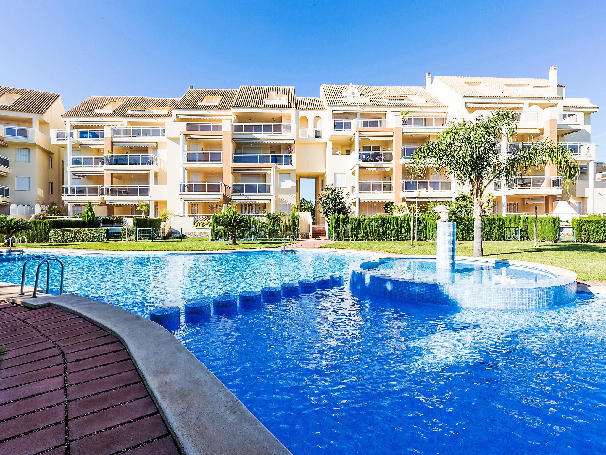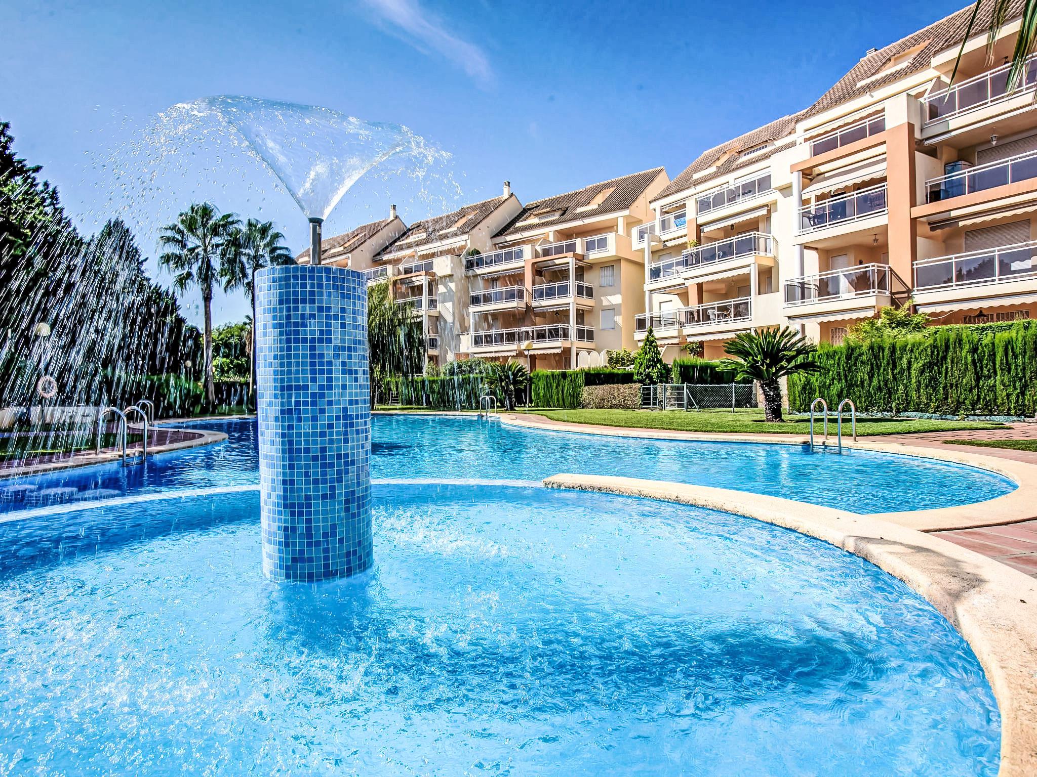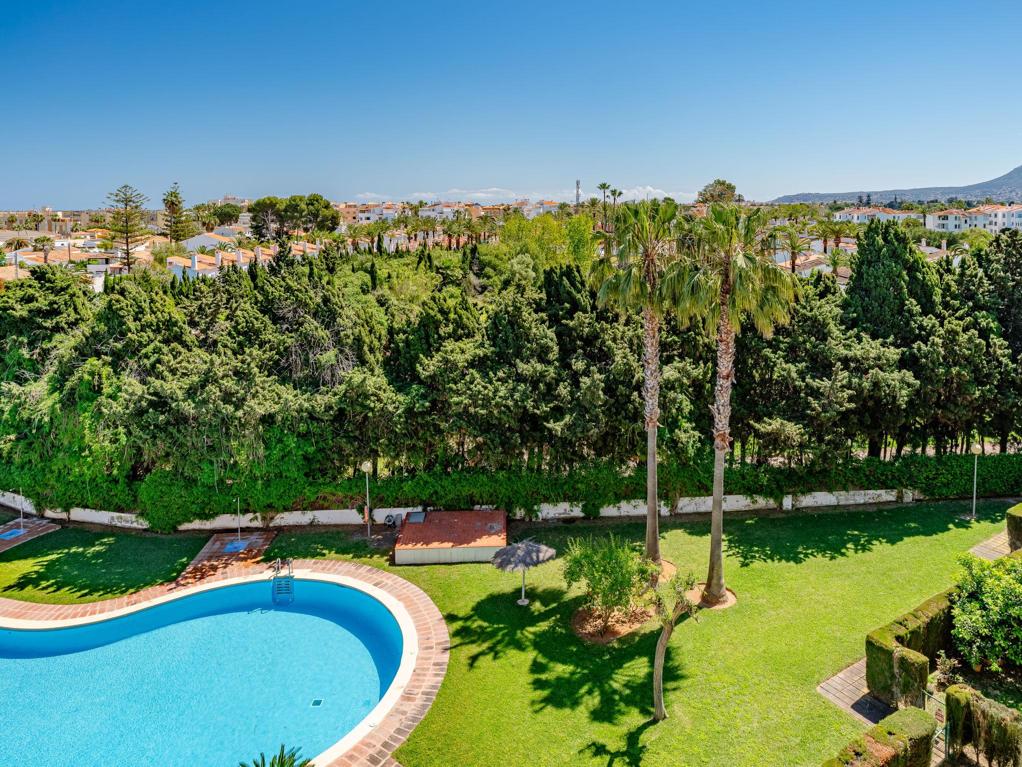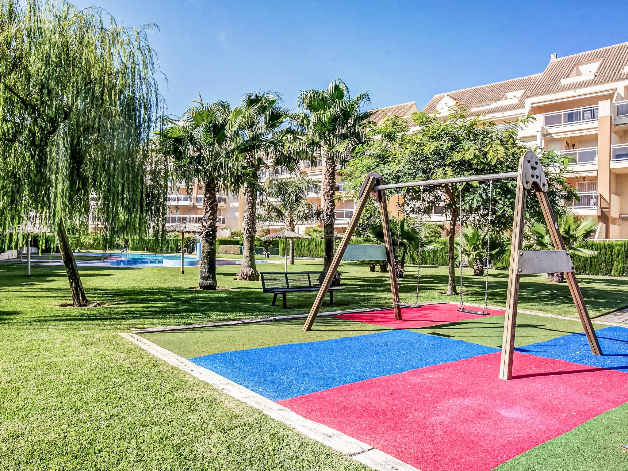 Apartment block "Los Sauces". 4.5 km from the centre of Denia, 500 m from the sea. For shared use: large garden (fenced) with lawn and trees, swimming pool (seasonal availability: 01.Jan. - 31.Dec.) with internal staircase. Children's pool, outdoor shower, children's playground (swing, sandbox). Private: swimming pool kidney shaped (28 x 15 m, depth 40 - 210 cm, seasonal availability: 01.Jan. - 31.Dec.) with internal staircase. Paddling pool, outdoor shower. In the house: lift. Parking on the premises, communal covered parking. Supermarket, restaurant, bar, bus stop 300 m, sandy beach 500 m. Sports harbour 4 km, marina 4 km. The owner does not accept any youth groups.
