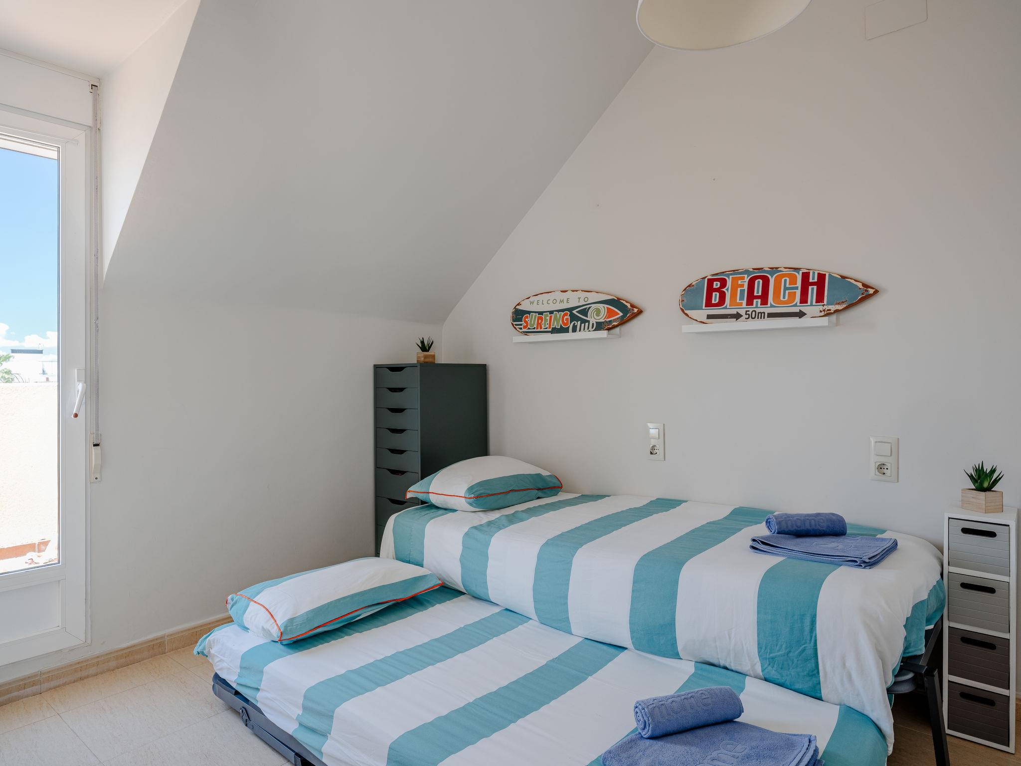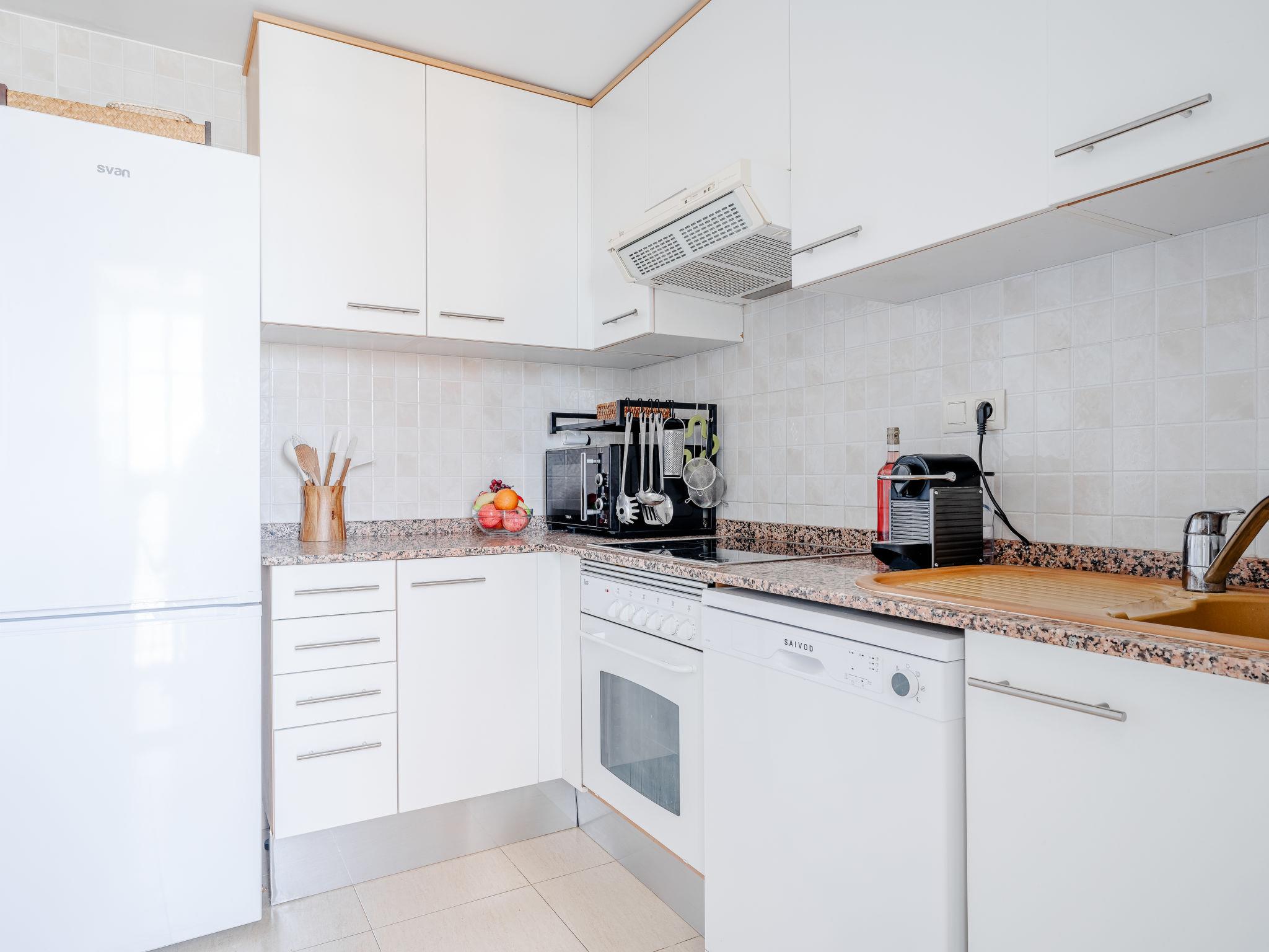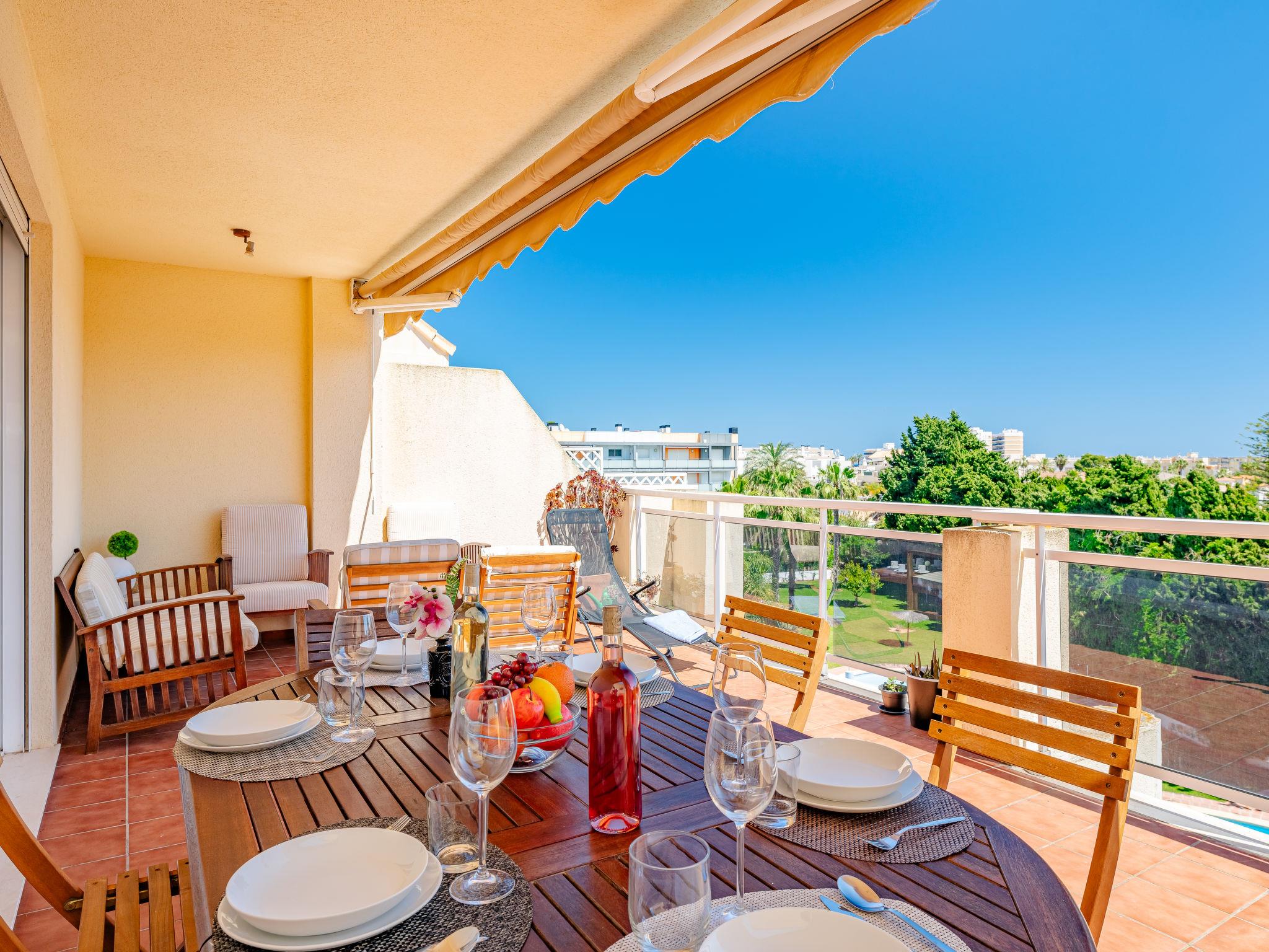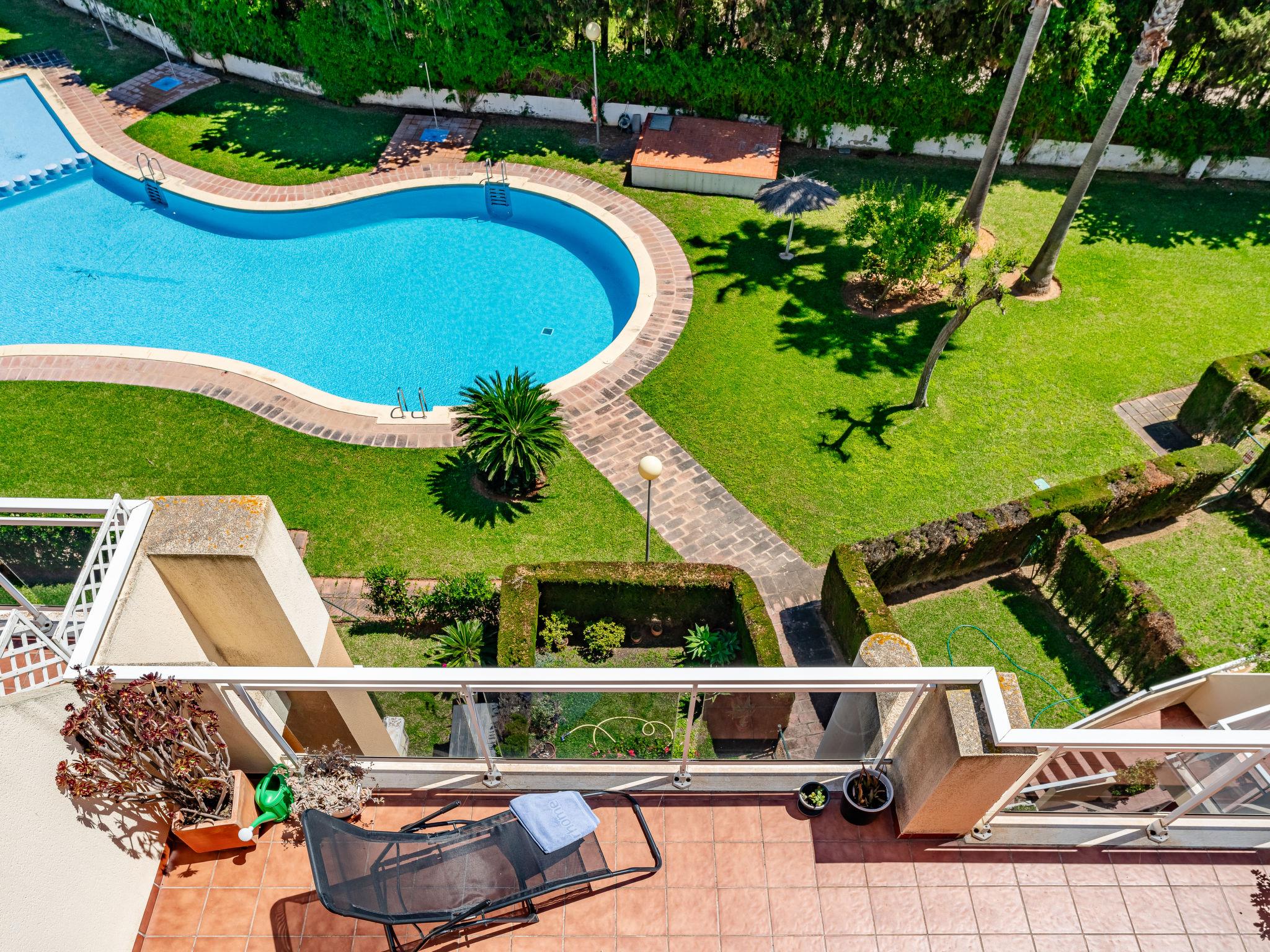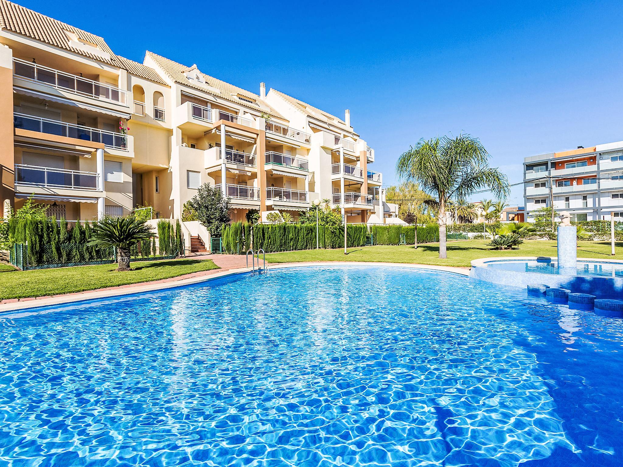 Apartment block "Los Sauces". 4.5 km from the centre of Denia, 500 m from the sea. For shared use: large garden (fenced) with lawn and trees, swimming pool (seasonal availability: 01.Jan. - 31.Dec.) with internal staircase. Children's pool, outdoor shower, children's playground (swing, sandbox). Private: swimming pool kidney shaped (28 x 15 m, depth 40 - 210 cm, seasonal availability: 01.Jan. - 31.Dec.) with internal staircase. Paddling pool, outdoor shower. In the house: lift. Parking on the premises, communal covered parking. Supermarket, restaurant, bar, bus stop 300 m, sandy beach 500 m. Sports harbour 4 km, marina 4 km. The owner does not accept any youth groups.