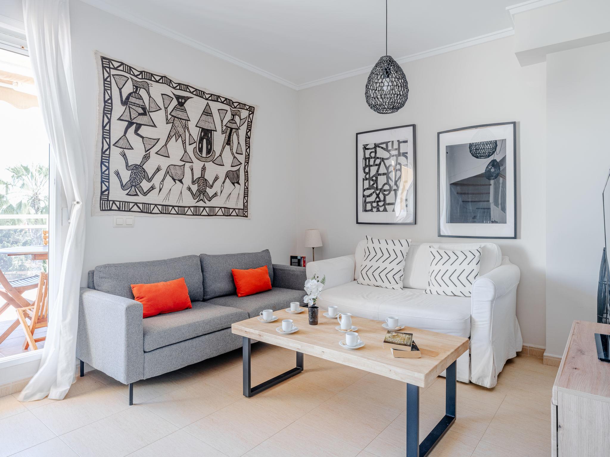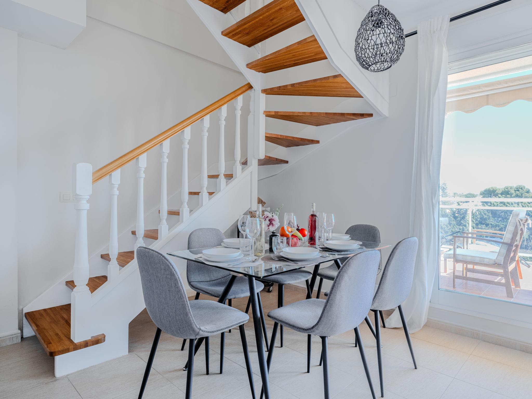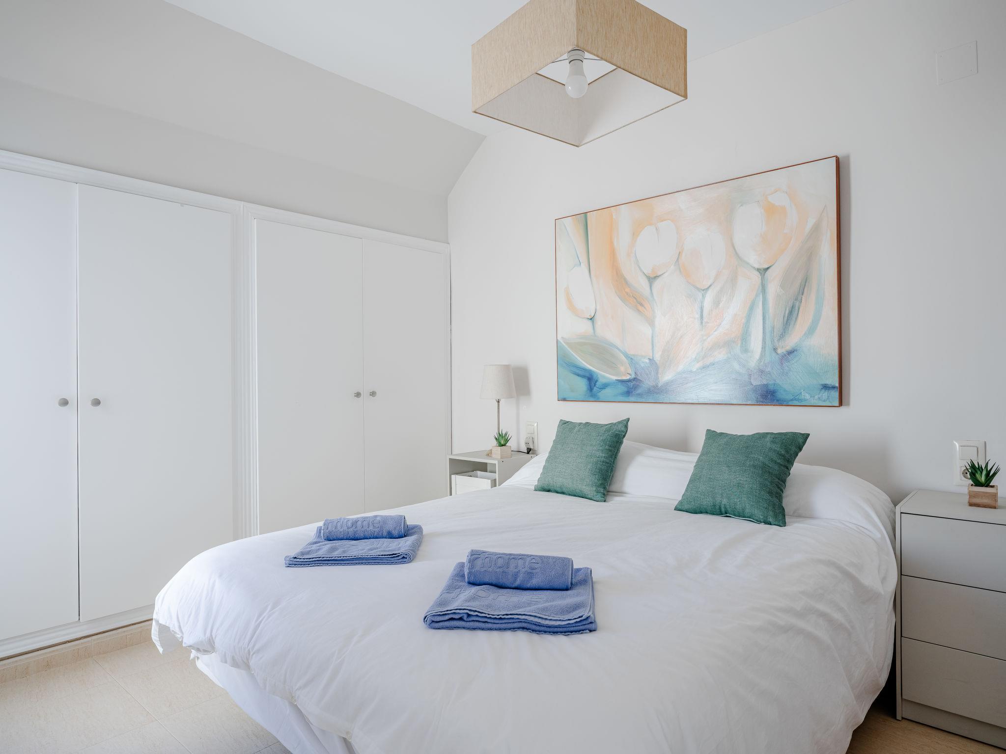 "Los Sauces", 4-room maisonette 120 m2 on 2 levels. Object suitable for 4 adults + 2 children. Spacious and bright, very beautiful and stylish furnishings: living/dining room with digital TV, air conditioning and forced-air heating. Exit to the terrace. 1 room with 1 french bed (135 cm, length 200 cm), air conditioning and forced-air heating. Kitchen (oven, dishwasher, 4 ceramic glass hob hotplates, toaster, kettle, microwave, freezer, electric coffee machine, Capsules for coffee machine (Nespresso) extra). Shower/WC. Upper floor: 1 room with 1 french bed (150 cm, length 200 cm), air conditioning and forced-air heating. 1 room with 2 beds (80 cm, length 190 cm), air conditioning and forced-air heating. Exit to the terrace. Bath/WC. Large terrace 15 m2, 2 terraces. Terrace furniture. Marvellous view of the mountains and the valley. Facilities: washing machine, iron, hair dryer. Parking space n 7D, garage space n 7D. Please note: TV only ES. R00000001
