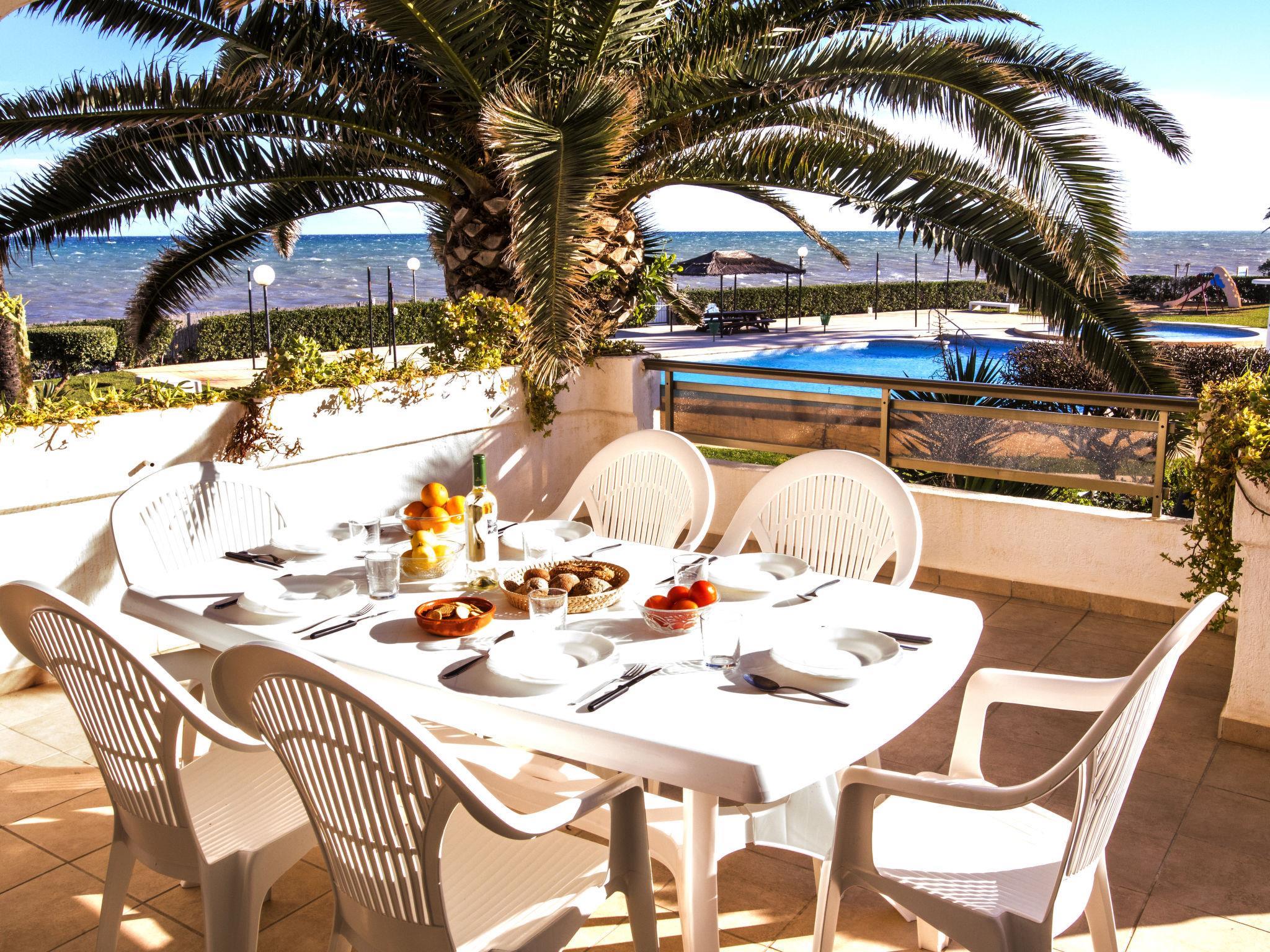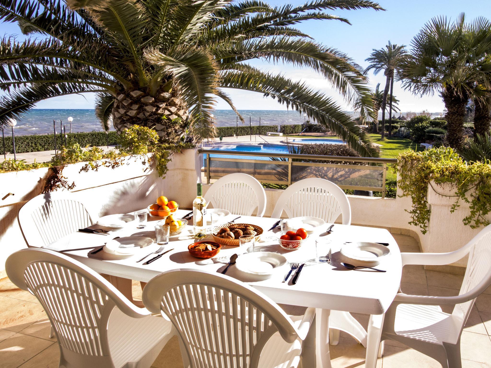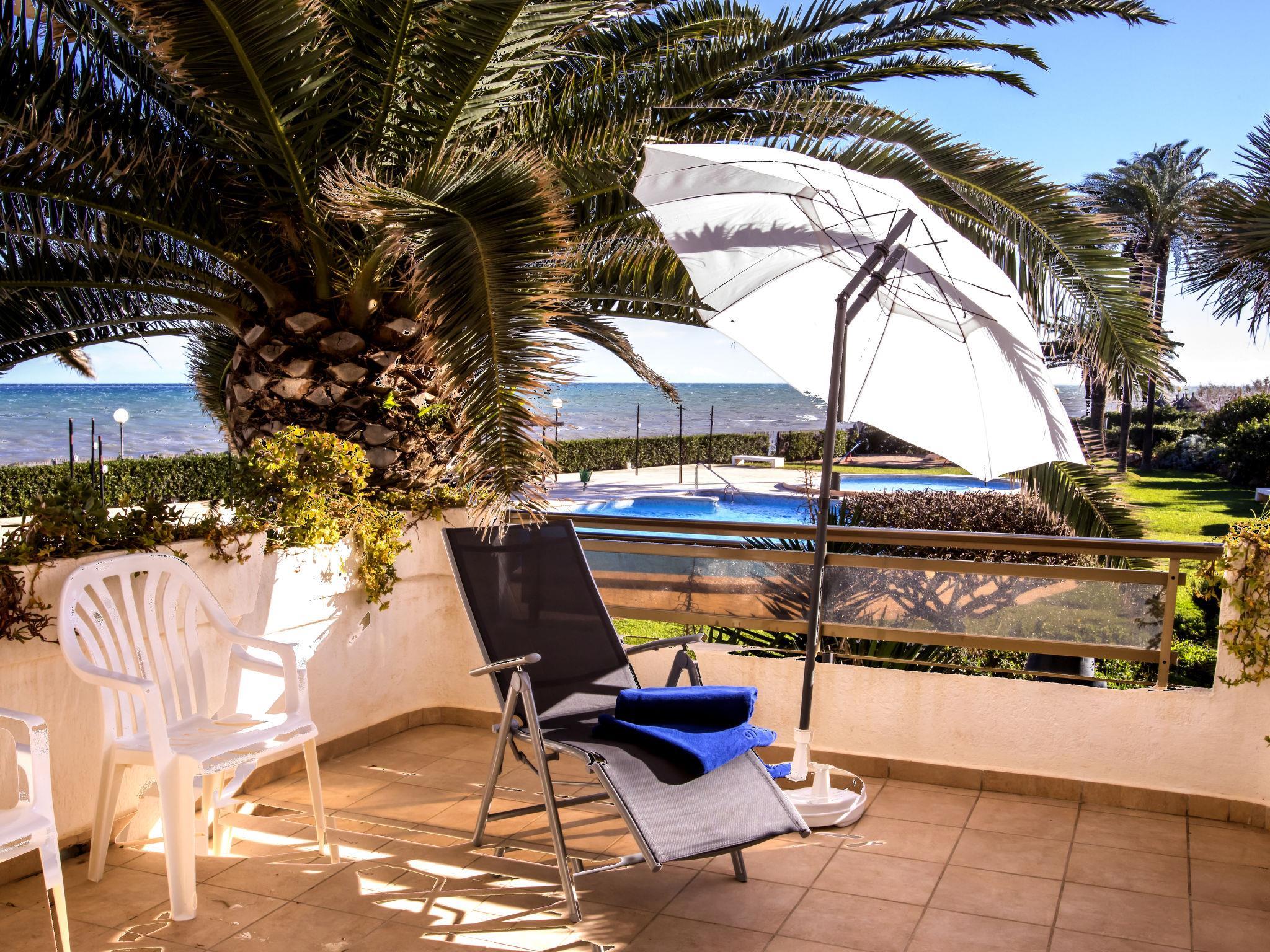 Beautiful, cosy apartment block "Laguna Beach Plus". In the resort 5 km from the centre of Dénia, 10 m from the sea, direct access to the beach. For shared use: garden with lawn and plants, swimming pool kidney-shaped (19 x 14 m, depth 80 - 210 cm, seasonal availability: 01.Jan. - 31.Dec.) with internal staircase. Children's pool, outdoor shower, parking space n F4 on the premises. Supermarket 550 m, restaurant 600 m, bar 500 m, café 600 m, bus stop 400 m, railway station 6 km, ferry 5 km, sandy beach "Playa les Bovetes" 10 m. Surf school, sailing school 500 m. Please note: no lift. The owner does not accept any youth groups.