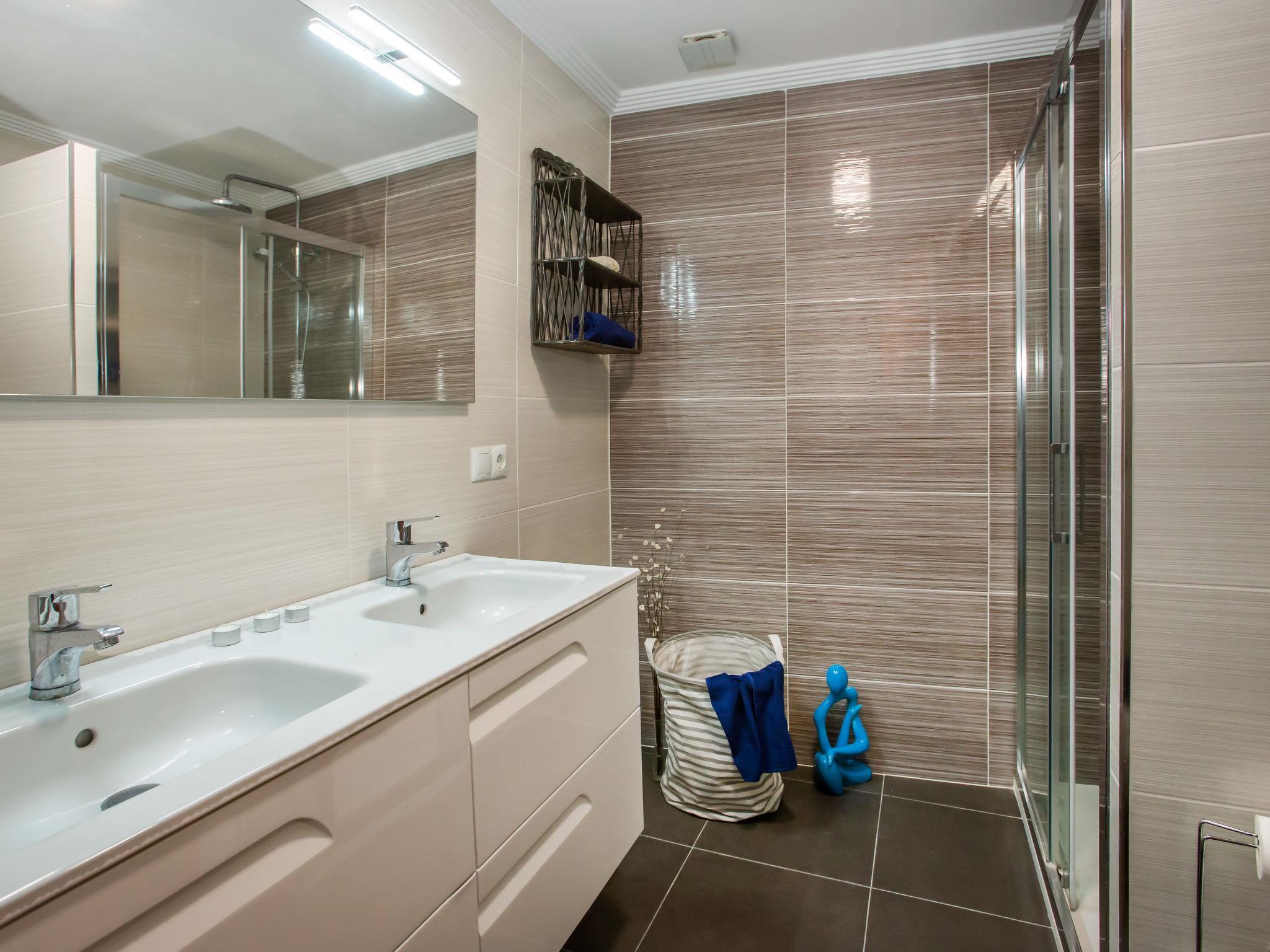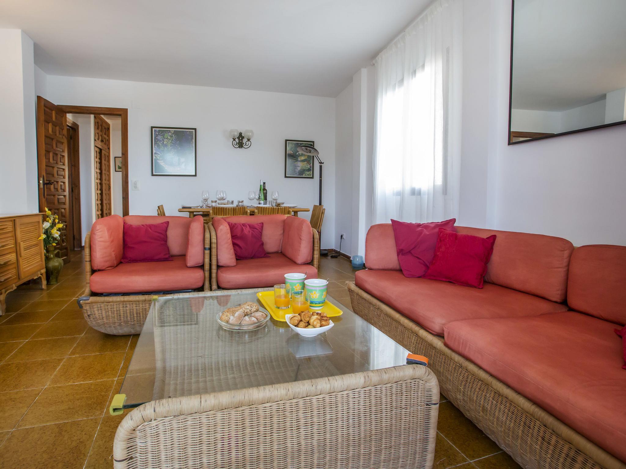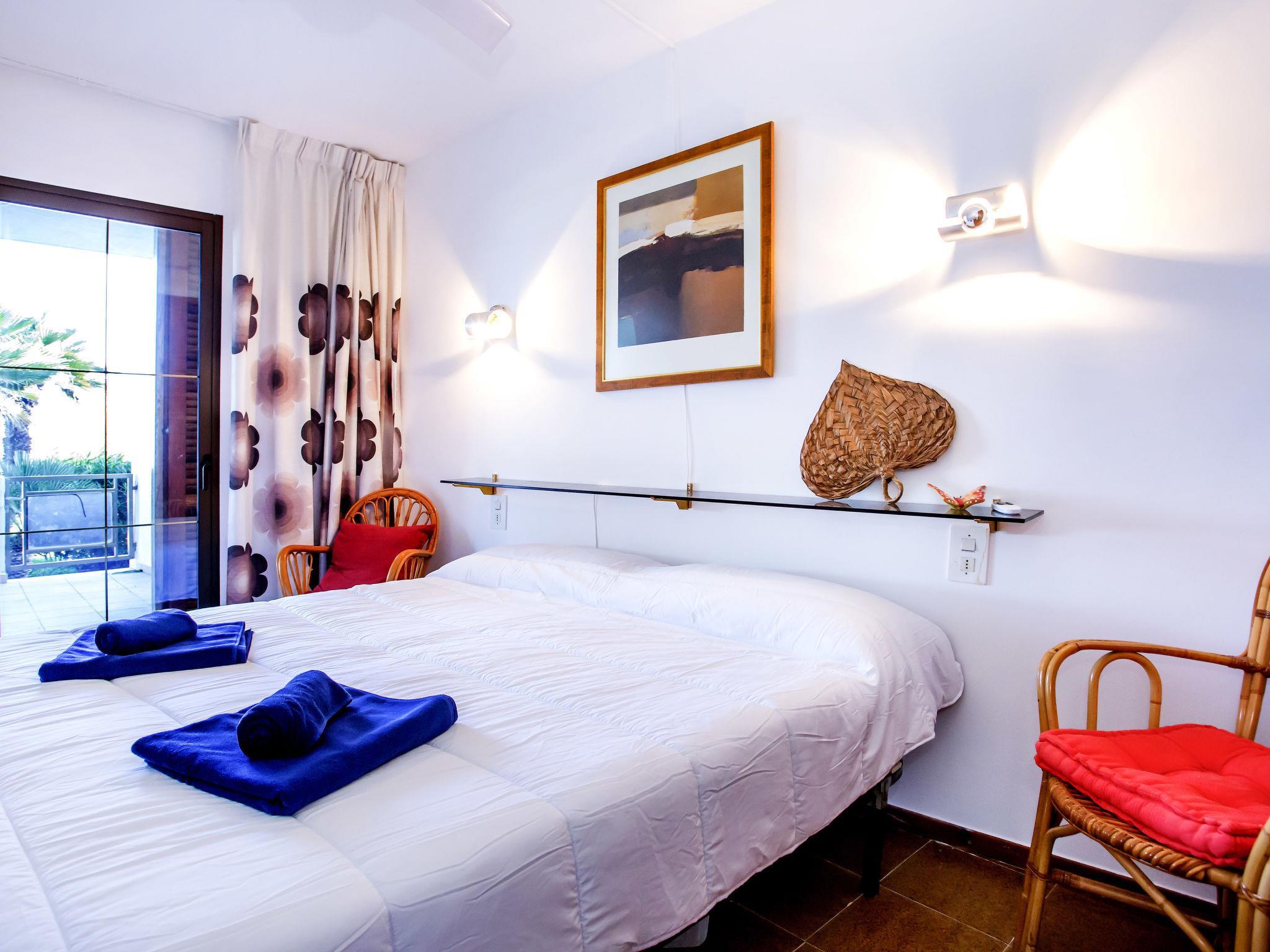 "Laguna Beach Plus", 4-room apartment 80 m2. Comfortable and cosy furnishings: living/dining room with digital TV. Exit to the terrace, to the swimming pool. 1 room with 2 beds (90 cm, length 200 cm), shower/bidet/WC, double hand-basin and fan. Exit to the terrace. 1 room with 2 beds (90 cm, length 200 cm), fan. 1 room with 2 beds (90 cm, length 200 cm), fan. Kitchen (dishwasher, 3 ceramic glass hob hotplates, toaster, microwave, freezer, electric coffee machine). Shower/bidet/WC. No heating option. Large terrace. Terrace furniture. View of the sea, the swimming pool and the garden. Facilities: washing machine, iron, hair dryer. Internet (WiFi, free). Parking space n F4. Please note: TV only ES. VT-495737-A // Reg. Nr.: ESFCTU00000304500024292700000000000000000VT-495737-A0