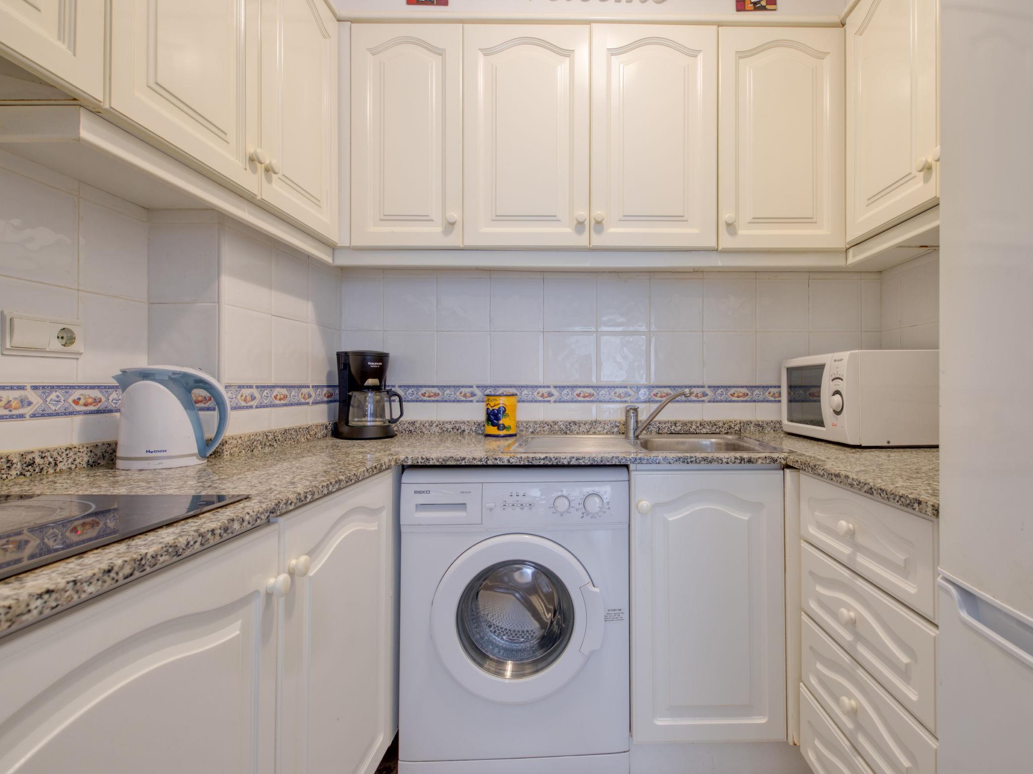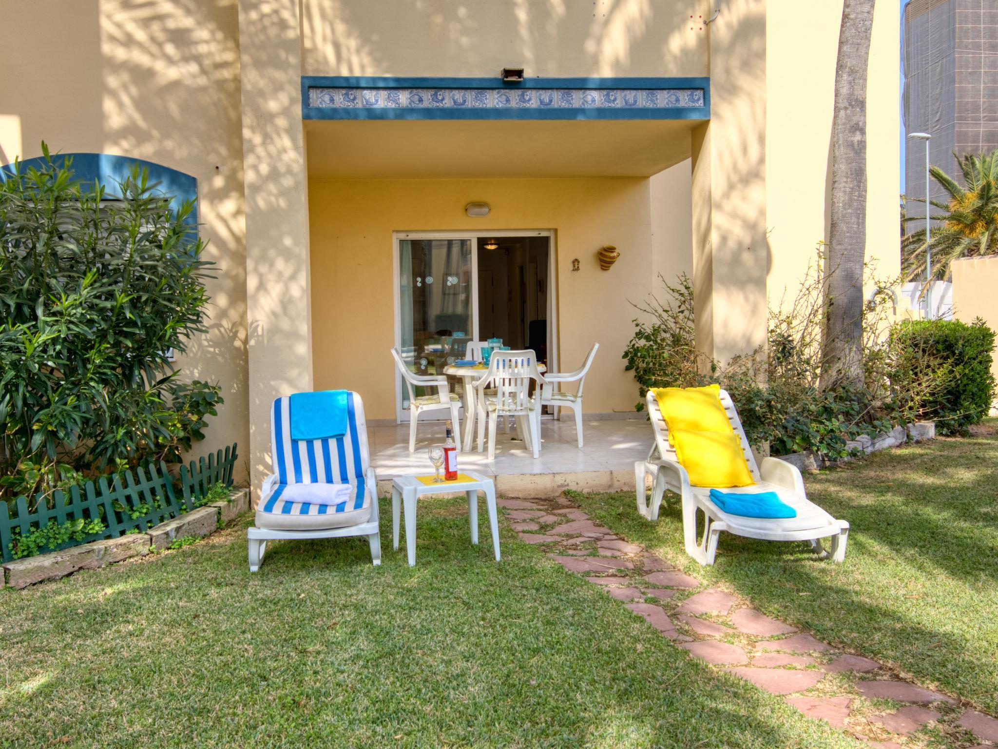 "Royal Playa II", 3-room apartment 70 m2, on the ground floor. Practical furnishings: living/dining room with satellite TV, digital TV, CD-player, hi-fi system, DVD and electric heating. Exit to the garden, to the terrace, to the swimming pool. 1 room with 1 french bed (1 x 150 cm, length 190 cm), electric heating and fan. 1 room with 2 beds (90 cm, length 190 cm), electric heating and fan. Open kitchen (3 hot plates, microwave, freezer, grill). Bath/WC, sep. WC. Terrace 12 m2, roofed. Terrace furniture, deck chairs. View of the swimming pool and the garden. Facilities: washing machine. Internet (WiFi, free). Parking space n 6. Please note: maximum 1 pet/ dog allowed. TV only EN, ES. AT-432590-A // Reg. Nr.: ESFCTU00000304500048073200000000000000000AT-432590-A3
