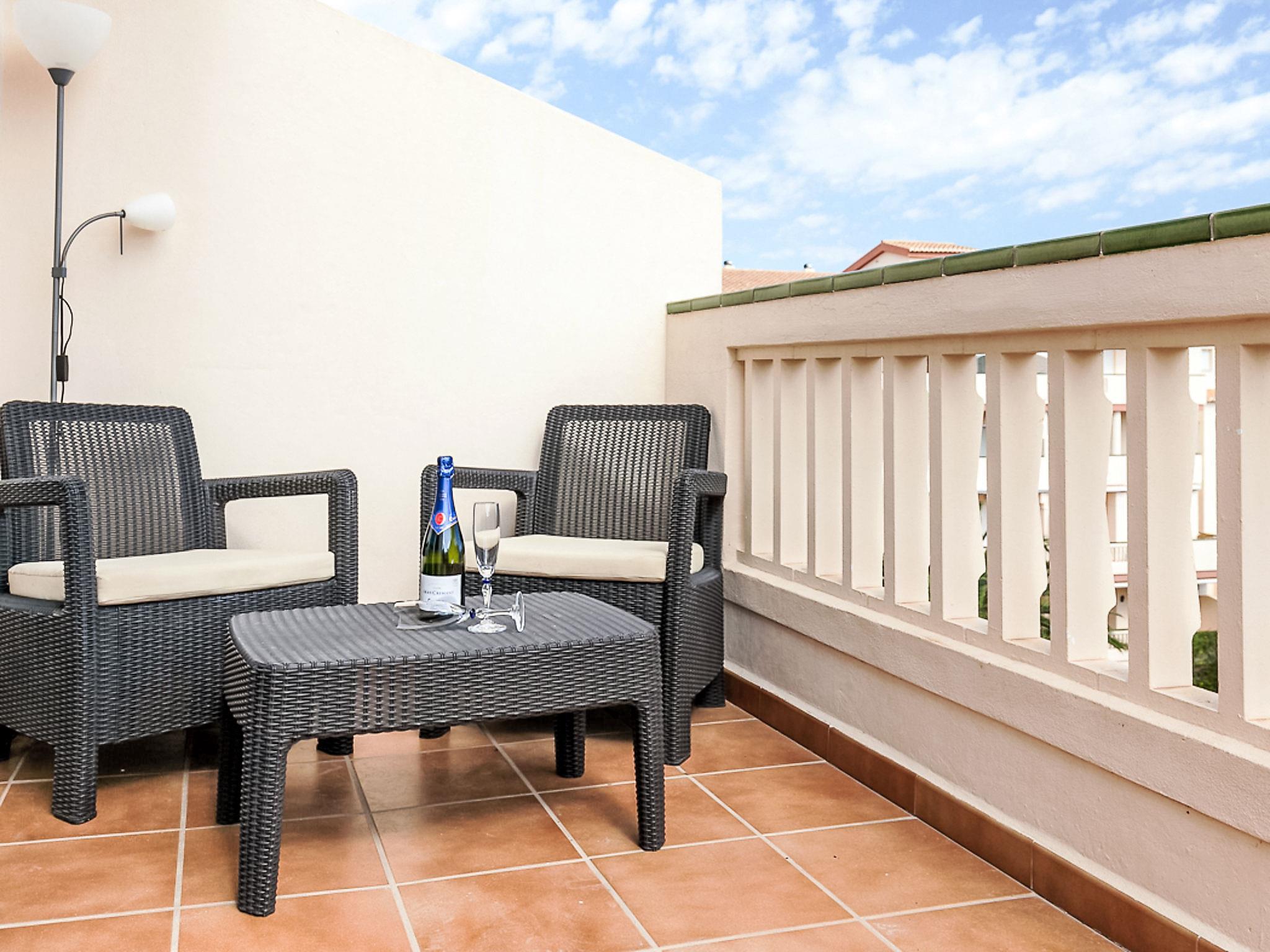 "La Marina", 3-room penthouse. Bright, comfortable and modern furnishings: living/dining room with satellite TV, digital TV, flat screen, hi-fi system, DVD, air conditioning and forced-air heating. Exit to the terrace. 1 room with 1 french bed (140 cm, length 190 cm), electric heating and fan. 1 double bedroom with 2 beds (90 cm, length 190 cm), TV, satellite TV and DVD. Exit to the balcony. Small, open kitchen (4 ceramic glass hob hotplates, microwave, freezer). Bath/bidet/WC. Very beautiful view of the sea and the garden. Facilities: washing machine. Internet (WiFi, free). Parking, garage space n 47. Maximum 1 pet/ dog allowed. AT-446110-A // Reg. Nr.: ESFCTU00000304500047408300000000000000000AT-446110-A8