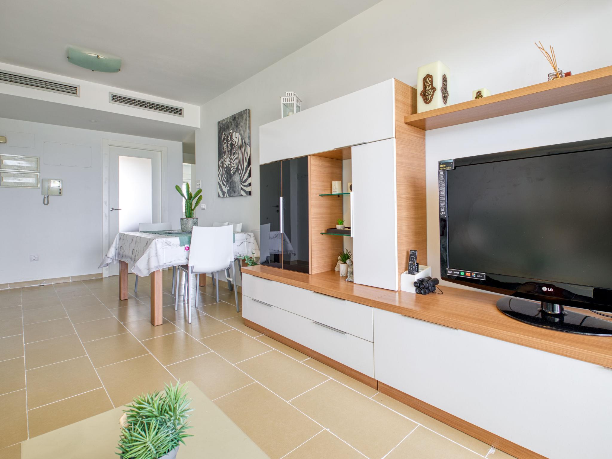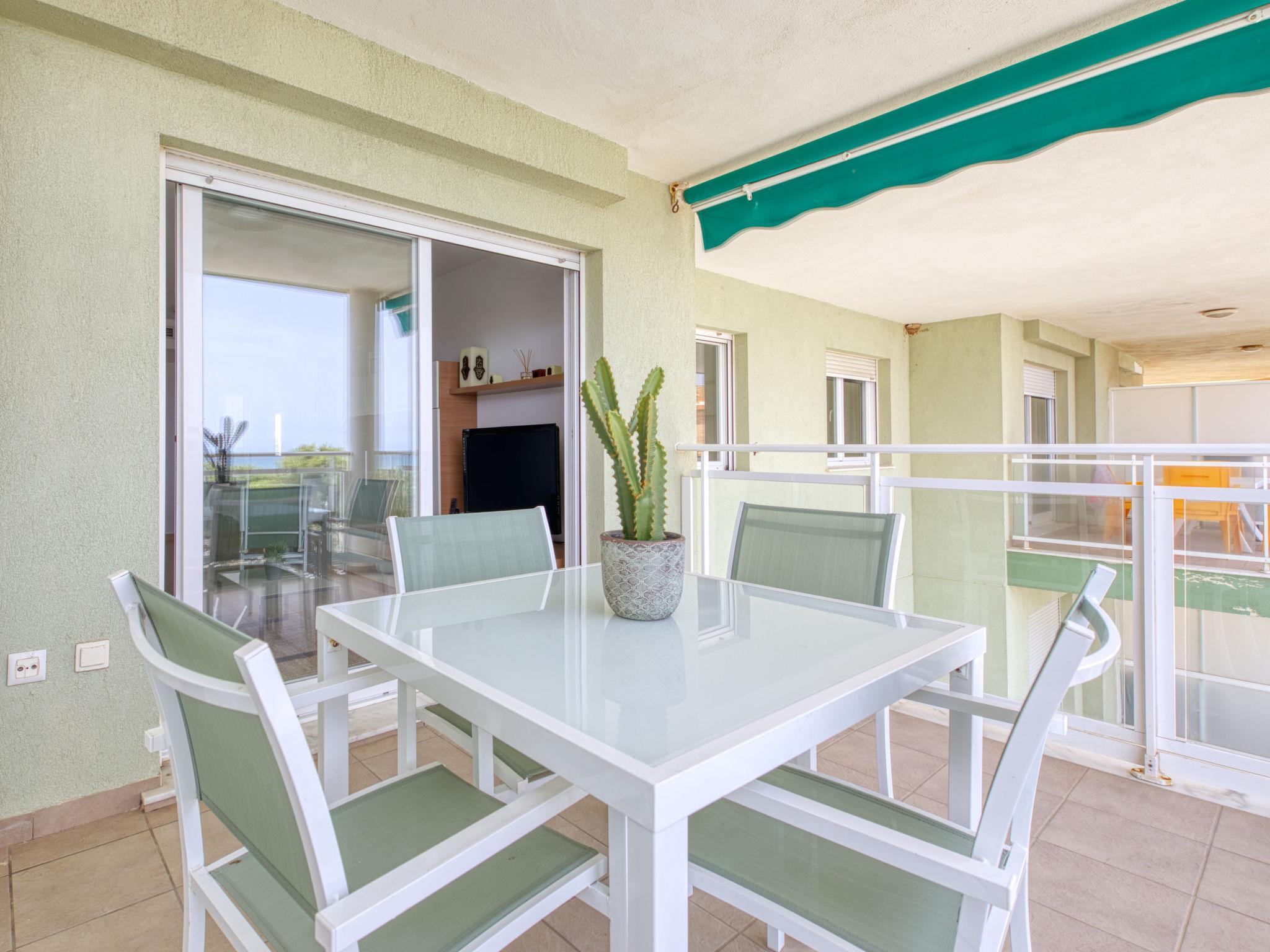 "Marina Park", 3-room apartment 72 m2. Spacious and bright, beautiful and cosy furnishings: living/dining room with digital TV, air conditioning and forced-air heating. Exit to the terrace. 1 room with 1 french bed (160 cm, length 190 cm), bath/bidet/WC, air conditioning and forced-air heating. 1 room with 2 beds (90 cm, length 190 cm), air conditioning and forced-air heating. Kitchen (oven, dishwasher, 3 ceramic glass hob hotplates, microwave, freezer, electric coffee machine). Shower/WC. Large terrace. Marvellous view of the sea, the mountains and the swimming pool. Facilities: washing machine, iron, mosquito net, children's high chair, baby cot, hair dryer. Internet (WiFi, free). Garage space n 5. Please note: suitable for families. Non-smokers only. TV only ES. Padle track. VT-485519-A // Reg. Nr.: ESFCTU00000304500089356300000000000000000VT-485519-A3