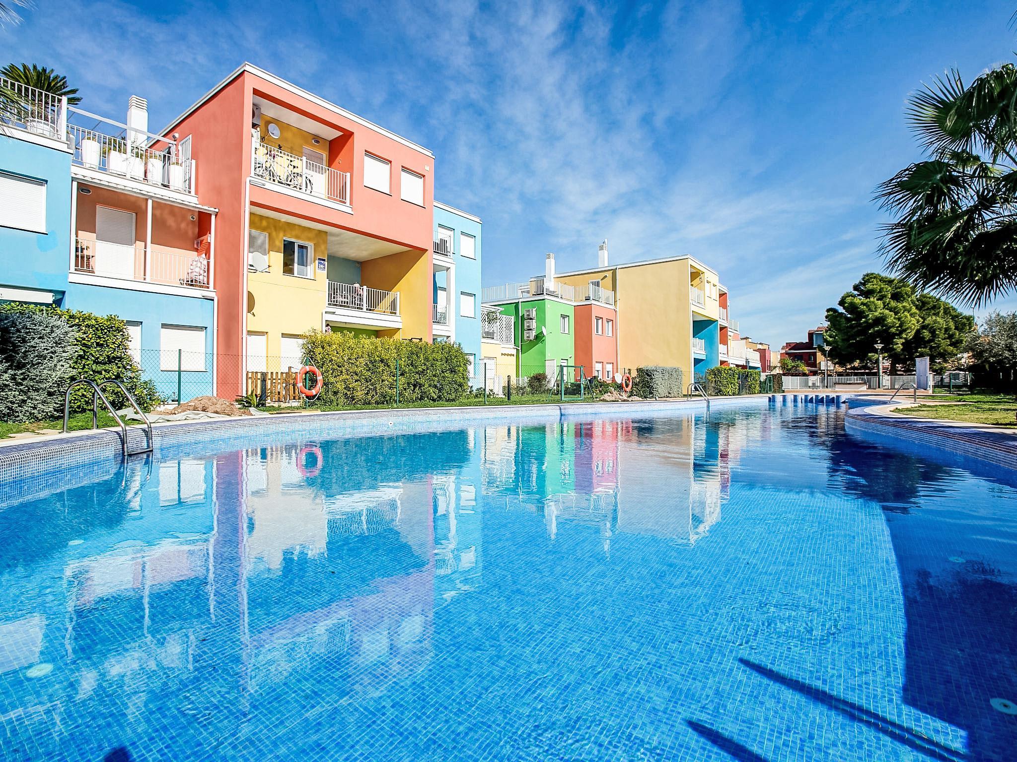Modern apartment block "Pueblo del Cid". In the resort 1 km from the centre of El Verger, on the outskirts, 11 km from the centre of Dénia, in a quiet, sunny position, 1.2 km from the sea, 1.2 km from the beach. For shared use: large garden (fenced) with lawn and trees, swimming pool fenced (8 x 14 m2, depth 75 - 210 cm, seasonal availability: 01.Jan. - 31.Dec.). Unconventional pool shape. Children's pool, outdoor shower, parking space n 7. Supermarket, restaurant, bar 100 m, bus stop 1.4 km, railway station 1.2 km, ferry 1.3 km, sandy beach "Almadrava" 1.4 km. Sports centre 400 m. Groups of teenagers on request only.