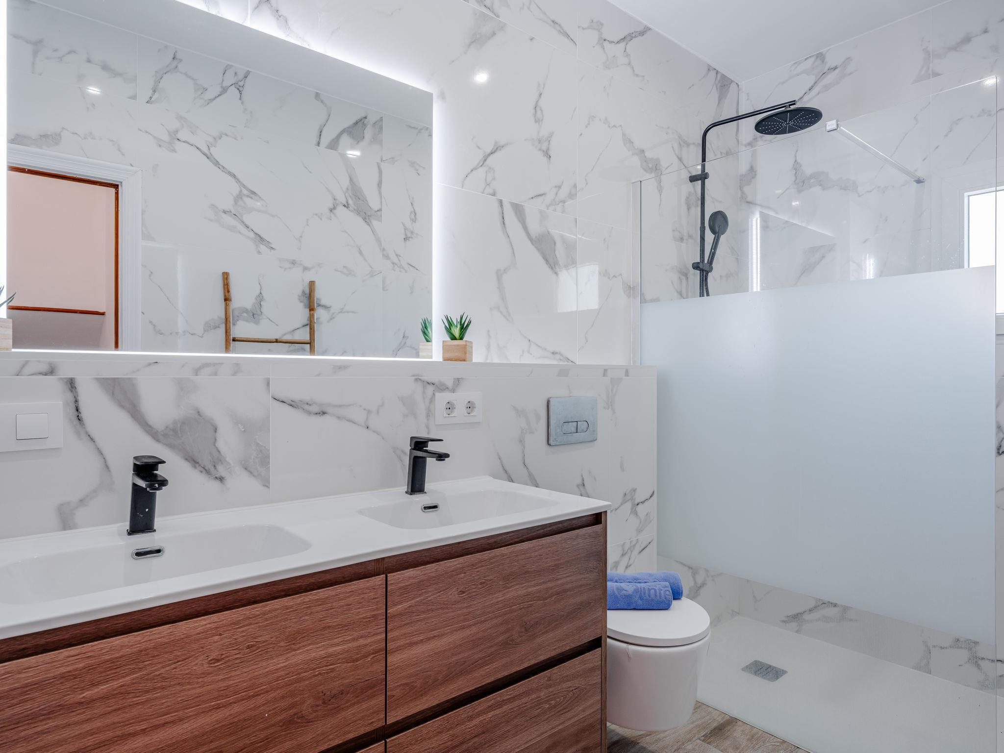 "Casa Fa", 4-room terraced house 100 m2 on 2 levels. Simple and practical furnishings: living/dining room with digital TV, air conditioning and forced-air heating. Kitchen (oven, dishwasher, 4 gas rings, toaster, kettle, microwave, freezer, electric coffee machine, Capsules for coffee machine (Dolce Gusto) extra). Sep. WC. Upper floor: 1 room with 1 french bed (160 cm, length 200 cm), digital TV, air conditioning, fan and forced-air heating. Exit to the terrace. 1 room with 1 french bed (140 cm, length 200 cm), fan. Exit to the terrace. 1 room with 1 french bed (135 cm, length 200 cm), fan. Shower/WC. Large terrace. Terrace furniture, barbecue, deck chairs. Facilities: washing machine, iron, hair dryer. Internet (WiFi, free). Please note: TV only ES, FR. CV-VUT0472010-A // Reg. Nr.: ESFCTU0000030450002579830000000000000000000VT472010A1