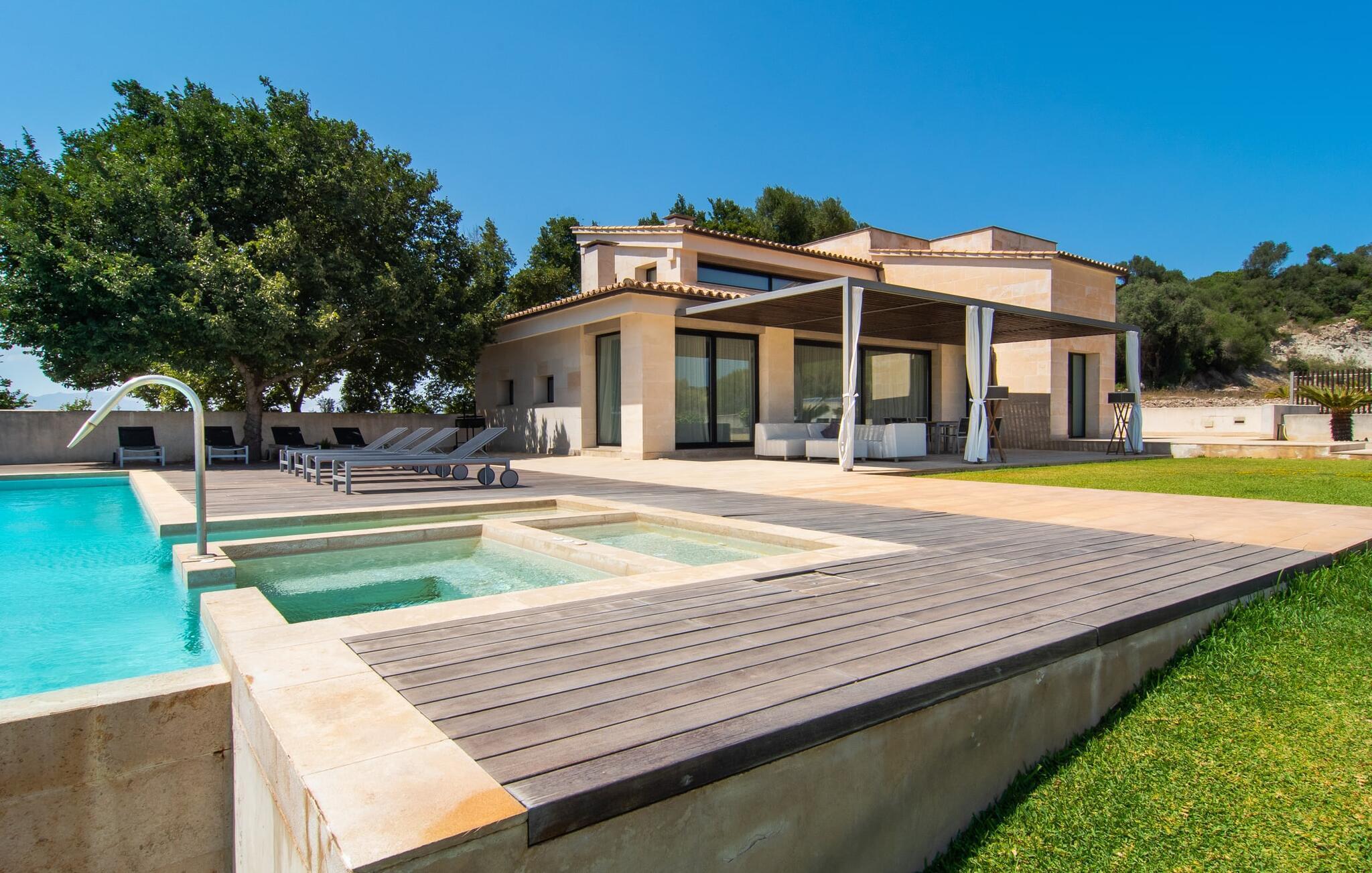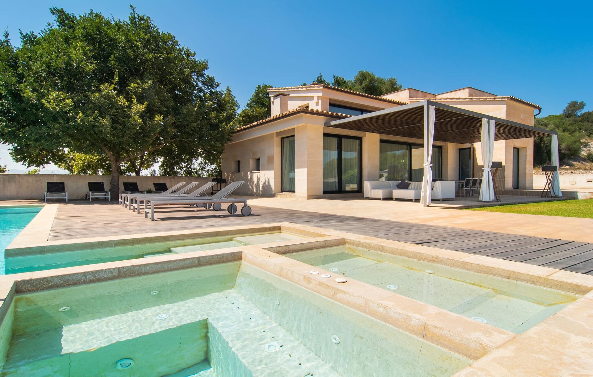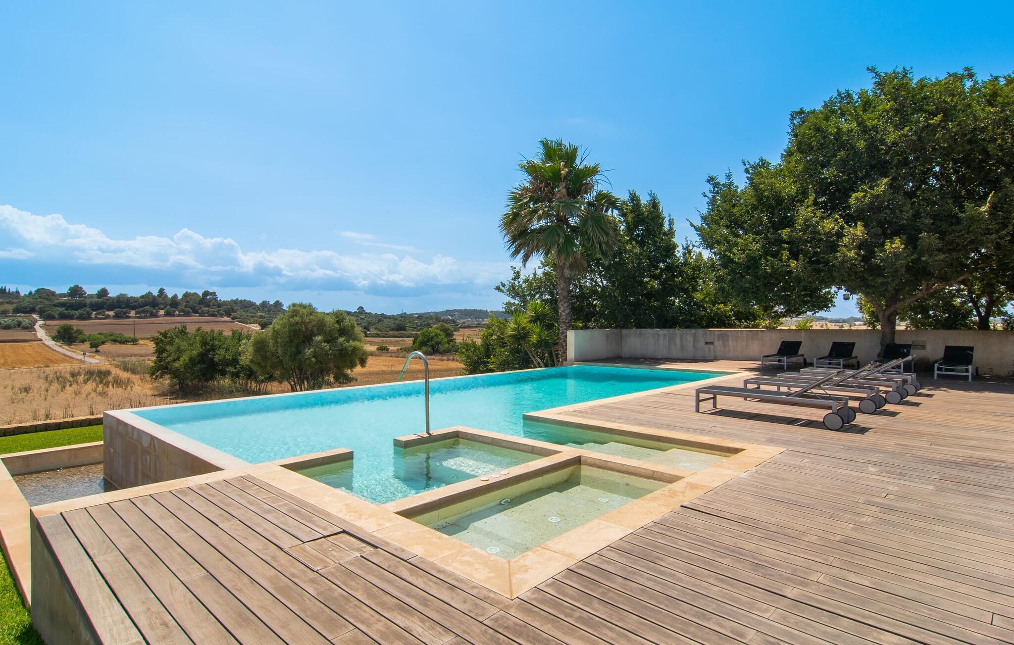 Denne villa har landbrugsoprindelse, men det betyder bestemt ikke, at du skal bo på en gård. Den ultramoderne ejendom kombinerer en landlig beliggenhed med arkitektur, der opfylder behovene hos den mest kræsne, designkyndige besøgende. Selv James Bond slog med læberne, da han så denne villa. Vade gennem poolen, lad derefter vandstrålerne massere dine skuldre og slap endelig af i det udendørs spabad med en frisklavet cocktail. Din ferie på landet på Mallorca kan være så elegant. Fra terrassen, som er beklædt med trægulvbrædder, kan man se ud over den endeløse flade af de mallorcanske marker og ud på den grønne græsplæne. Et palmetræ pynter på denne uforglemmelige udsigt. Det ser ud til, at afslapning snart kommer! I overensstemmelse med det overordnede koncept har haven et ret minimalistisk design. Men du vil føle, at de rene linjer i villaens arkitektur også bringer klarhed i dine tanker, så du kan tilbringe dagen på den overdækkede veranda, hvor der er et spisebord, hvor du kan nyde lækkerierne tilberedt på grillens afslappende sofalounge. Dette er et Fincallorca feriehus. Fra terrassen kommer du ind i det overvejende hvide interiør, som har meget plads takket være dets generøse snit: opholdsstue, spisestue og madlavning er problemfrit integreret. Huset byder på masser af plads, så du kan slappe helt af. Fra de to indbydende sofaer og designerstolene kan du følge lokale begivenheder via satellit-tv. Eller slentre gennem det fantastiske, fuldt udstyrede køkken, som har en central ø og smart belysning for at tilbringe et par timer med at nyde en god middag. Vi er meget sikre på, at du vil nyde nogle perfekte middage her. Bemærk dog, at du bør medbringe nogle husholdningsartikler, da de ikke er en del af denne villas grundlæggende faciliteter, når du ankommer, men stadig er nemme at få fat i: håndsæbe til badeværelset, opvaskemiddel og en svamp til køkken. Opvasketabletter og en grundlæggende forsyning af vand. De to soveværelser i stueetagen - det ene med eget badeværelse - har hver to enkeltsenge, mens soveværelserne på øverste etage har hver deres badeværelse. Et af værelserne har også en dobbeltseng. Klarhed i stedet for uorden – alle rum er dedikeret til dette koncept. På en sofistikeret måde, der giver besøgende en ægte følelse af luksus. For en sensuel afslutning på aftenen er der også et badekar på et af badeværelserne. Der er kun 4 km til den hyggelige by Santa Margalida, med en markedsplads, der er ideel til en krydret espresso. Den imponerende brænding ved Badia d'Alcúdia er kun omkring dobbelt så langt. I Can Picafort kan du tilbringe en dag med at svømme og nyde de omfattende faciliteter. På vejen dertil, hvorfor så ikke prøve en god vin på Bodega Butxet? Vi kan også varmt anbefale en cocktail med havudsigt på Ponderosa Beach Restaurant. Tingene er lidt mere stille i Son Serra de Marina, hvor surfere får noget for pengene. Hvis du er interesseret i Mallorcas historie, bør du besøge Muros etnologiske museum – et gammelt palæ, der har mange historier at fortælle. Villaen er meget godt forbundet med øens vejnet. Fra tid til anden hører du måske et par biler; Ejendommen ligger dog på en stille gade. På under en halv time kan du shoppe i for eksempel Inca eller Manacor. Hvis du leder efter en blanding af landlig idyl og smukke timer på stranden, er fincaen "Dalt Son Morro" lige noget for dig: tæt på den smukke bugt Alcúdia kan du tage til strande som Son Baulo og Muro, eller nyd travlheden i charmerende byer som Santa Margalida eller Can Picafort. Ø-byerne Inca og Manacor er kun en halv time væk med lejebil.