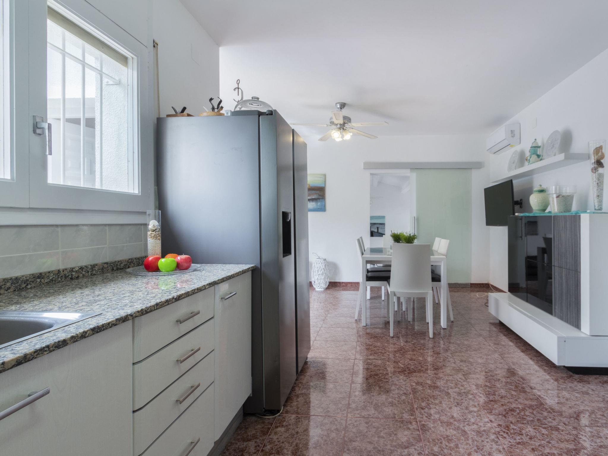 Riumar 11 km from Deltebre: Large, cosy, comfortable house "Estrella", 2 storeys, renovated in 2020. In the district Riumar Delta del Ebro, in a quiet, sunny position residential area (villas), 100 m from the sea, 100 m from the beach. Private: property (fenced), swimming pool angular (8 x 4 m, depth 170 cm, seasonal availability: 01.Apr. - 30.Nov.) with internal staircase. Outdoor shower, hot tub, patio, pergola, garden furniture, barbecue. In the house: WiFi, air conditioning, washing machine. Parking (for 2 cars) at the house. Shop, supermarket, restaurant, bar, bakery 100 m, 5 minute walk to the centre, bus stop "Riumar" 300 m, railway station "Aldea- Amposta" 25 km, sandy beach "Riumar" 100 m. Sports harbour 1 km, golf course (18 hole) 15 km, cycle lane 50 m. Nearby attractions: Parque natural Delta del Ebro 10 m, Port Aventura 65 km, Parque Acuatico 65 km, Barcelona 190 km, Tortosa 35 km. Hiking paths: Parque natural Puerto Tortosa Beseit 25 km, GR 92 15 km. Please note: car recommended. Suitable for families. Groups of teenagers on request only.