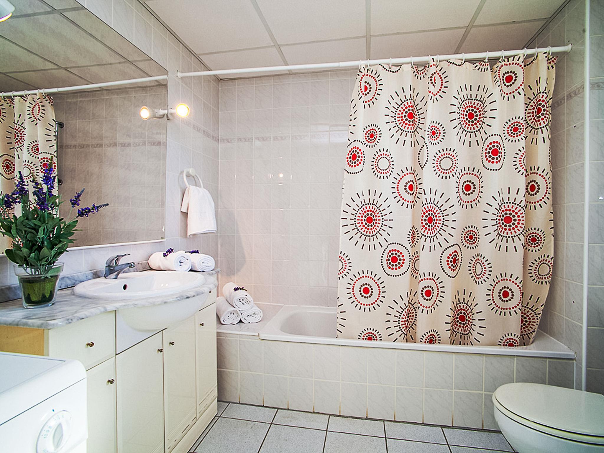 4-room apartment 115 m2, on the upper floor. Practical and comfortable furnishings: living/dining room with satellite TV and air conditioning. Exit to the terrace. 1 room with 1 french bed and bath/bidet/WC. Exit to the terrace. 1 room with 2 beds. 1 room with 2 beds. Open kitchen (oven, X ceramic glass hob hotplates, microwave, electric coffee machine). Shower/WC. Large terrace. Terrace furniture. View of the sea, the swimming pool and the garden. Facilities: washing machine. Internet (WiFi, free). Suitable for families. Maximum 2 pets/ dogs allowed. HUTTE001689