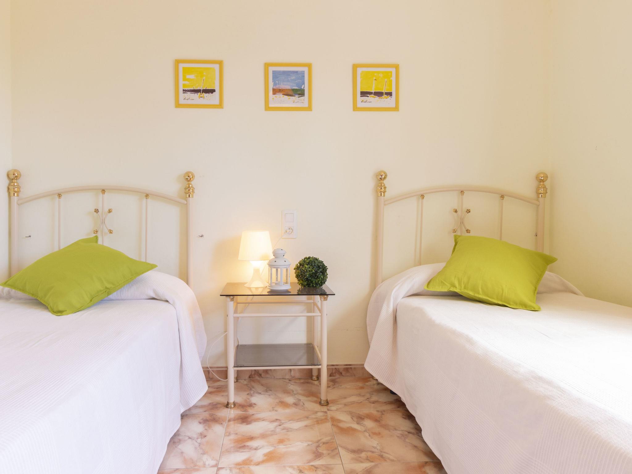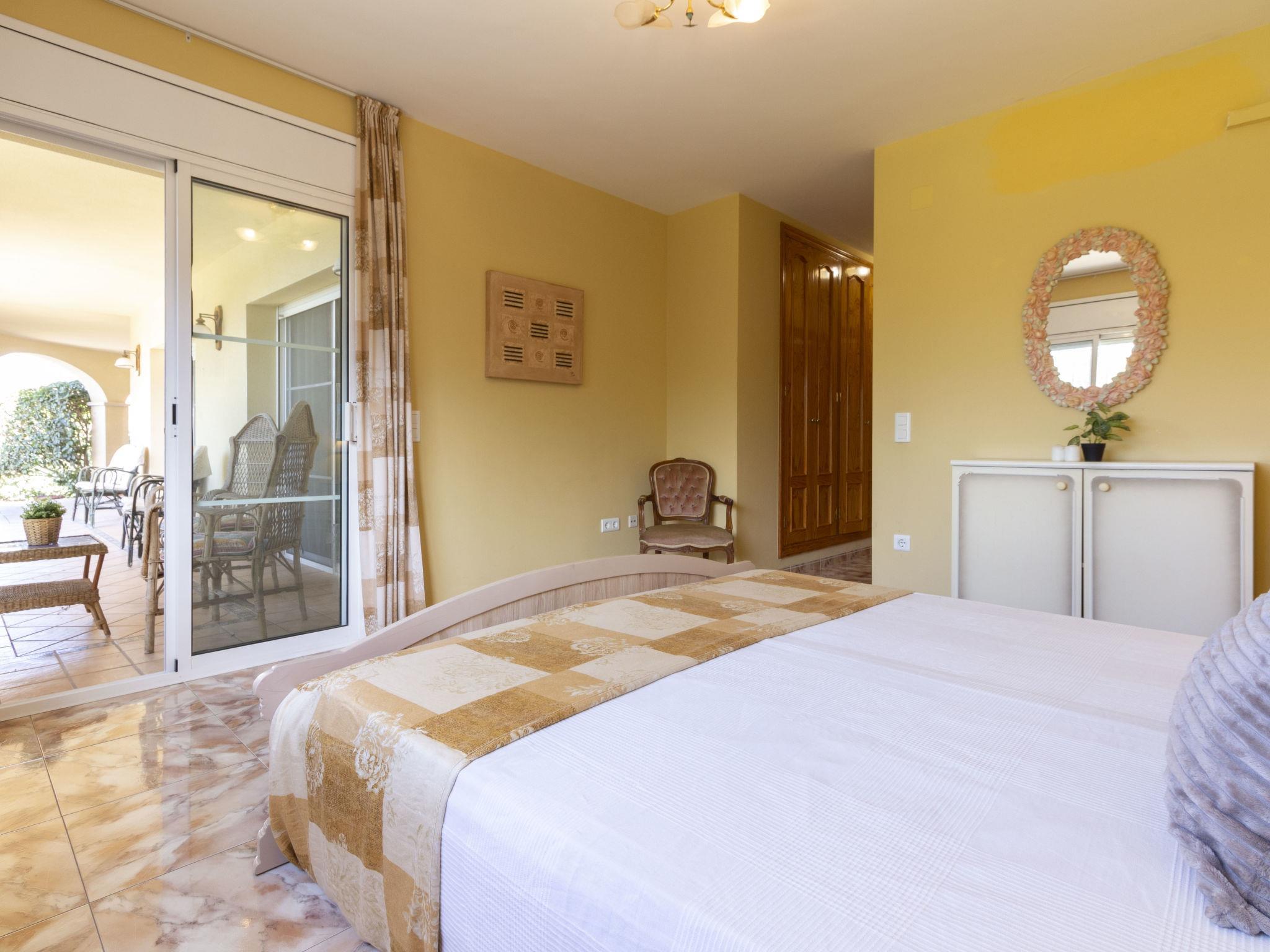 "Jardi", 4-room house 140 m2, on the upper ground floor. Spacious, comfortable and cosy furnishings: living/dining room with satellite TV. 2 rooms, each room with 2 beds. 2 rooms, each room with 1 french bed. Kitchen (4 hot plates, oven, dishwasher, microwave, freezer) with dining table. Bath/bidet/WC, 2 showers/WC. Air-conditioning, forced-air heating. Terrace 50 m2, large garden, lawn. Terrace furniture, barbecue, deck chairs, covered balcony. View of the swimming pool and the garden. Facilities: washing machine, safe. Internet (WiFi, free). Parking (fenced 2 cars). Suitable for families. Maximum 2 pets/ dogs allowed. HUTTE001095 // Reg. Nr.: ESFCTU000043019000117897000000000000000OHUTTE-0010958