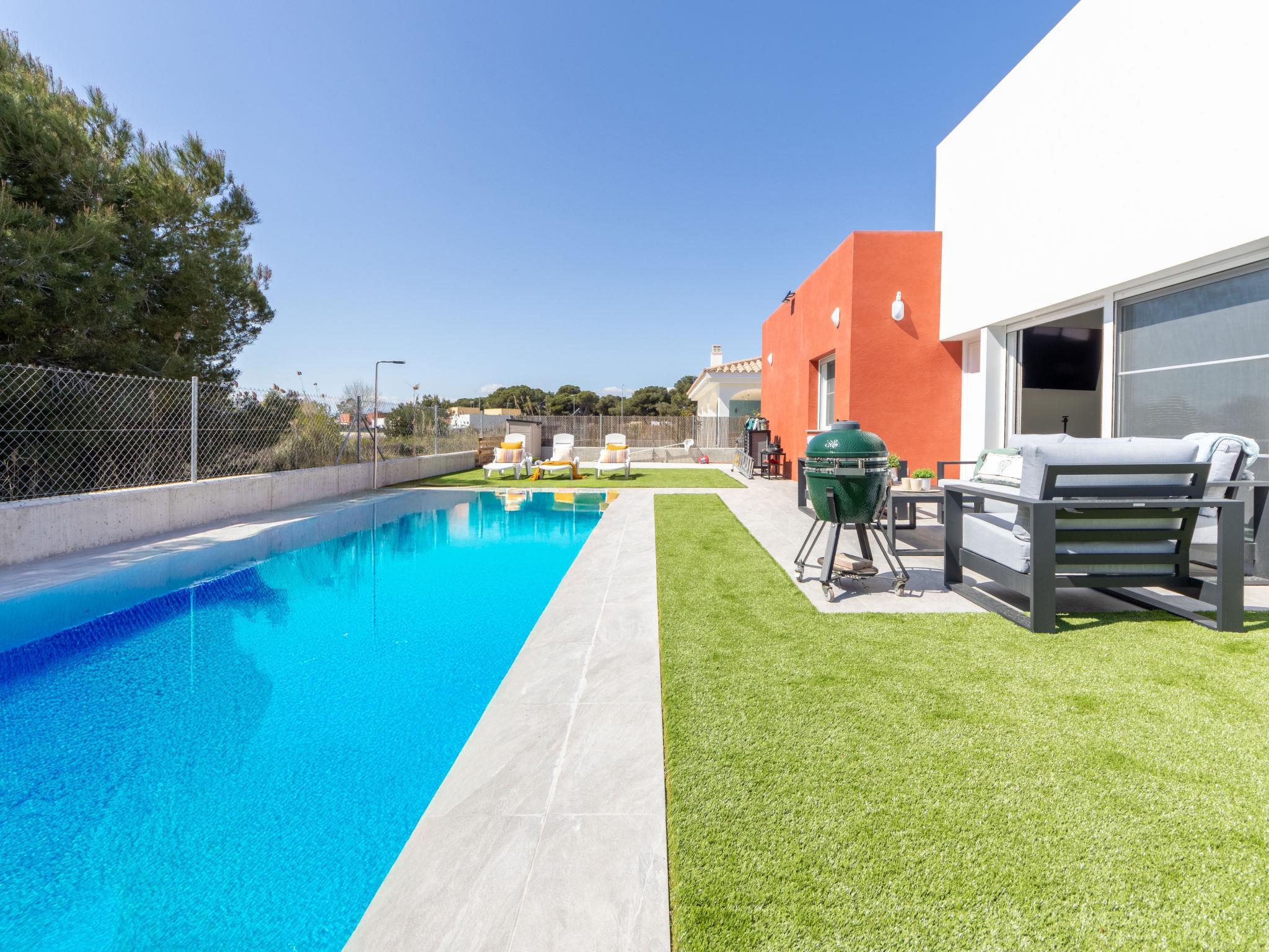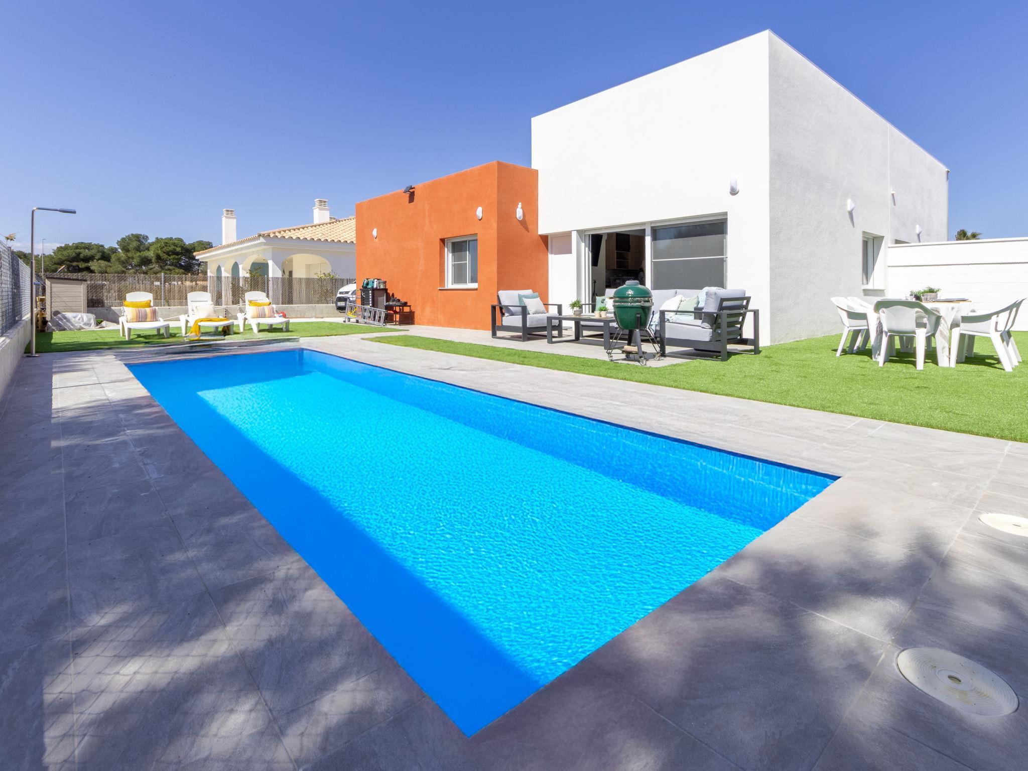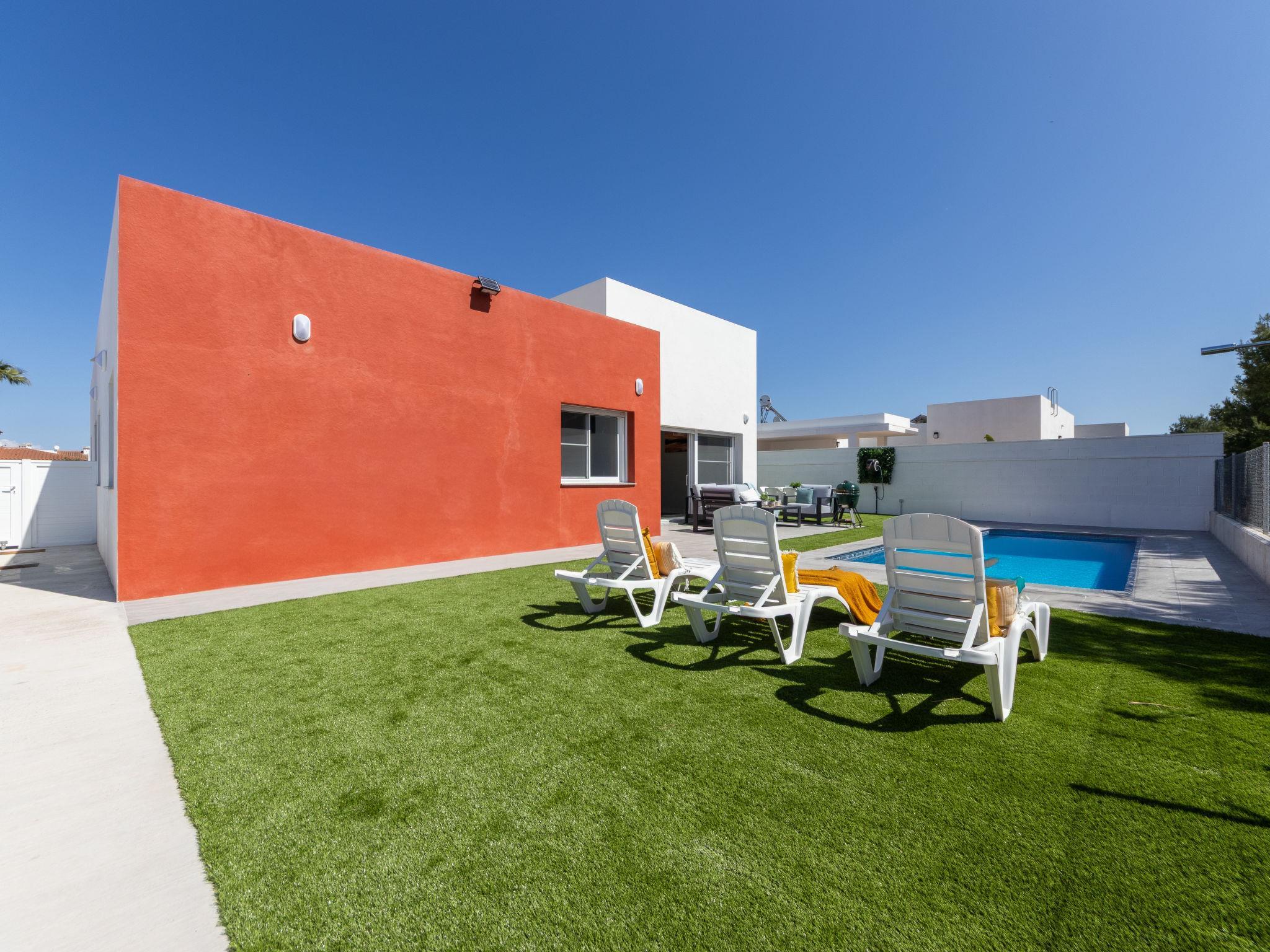 Riumar 10 km from Deltebre: Modern, cosy house "Alba", semi-detached. In a quiet, sunny position, 700 m from the sea, 700 m from the beach. Private: property (fenced), swimming pool angular (8 x 3 m, depth 160 cm, seasonal availability: 01.Apr. - 30.Nov.) with internal staircase. Outdoor shower, pergola, terrace, garden furniture, barbecue. In the house: WiFi, air conditioning, washing machine. Parking at the house. Supermarket 500 m, restaurant, bar 300 m, bakery 600 m, bus stop "Riumar" 400 m, railway station "Aldea- Amposta" 25 km. Nearby attractions: Parc Natural del Delta 800 m, Tortosa 35 km, Playa el Trabucador 29 km, Barcelona 190 km, Port Aventura 70 km. Hiking paths: Ports Tortosa Beseit 52 km, GR 92 20 km. Please note: car recommended. Groups of teenagers on request only.