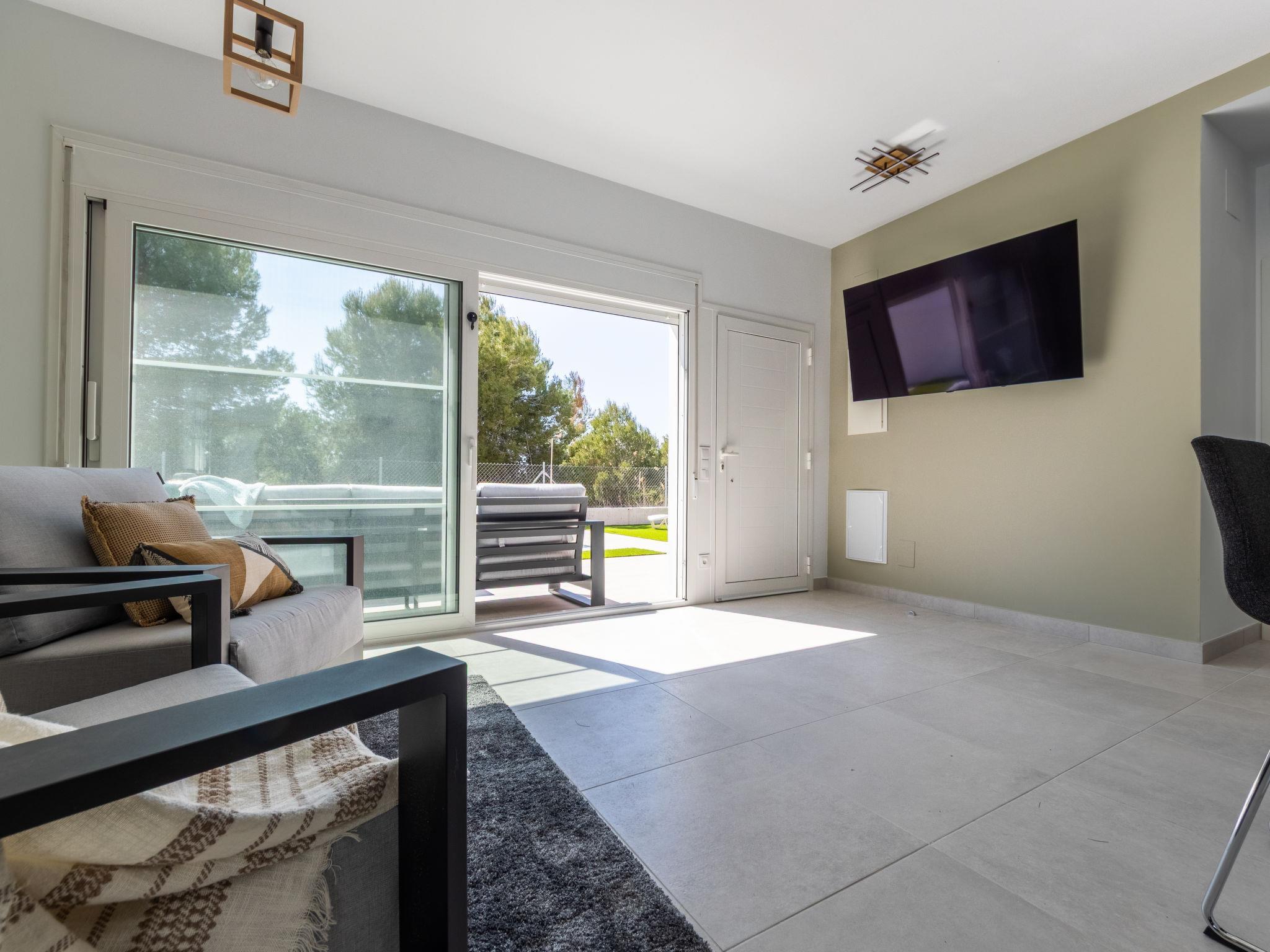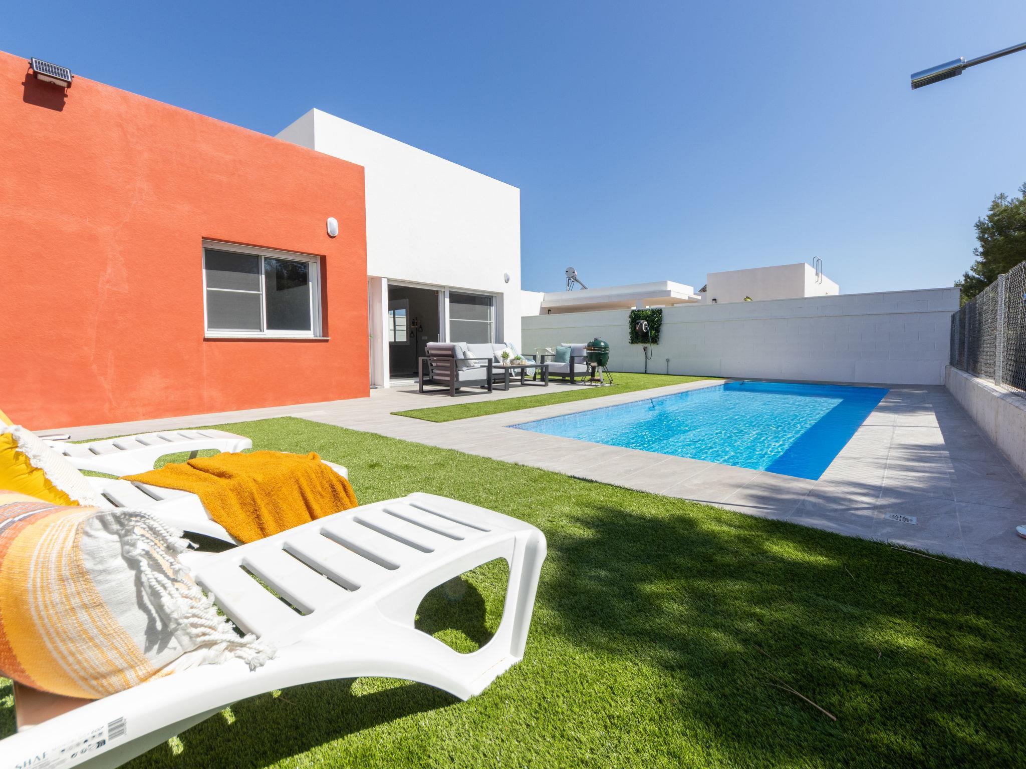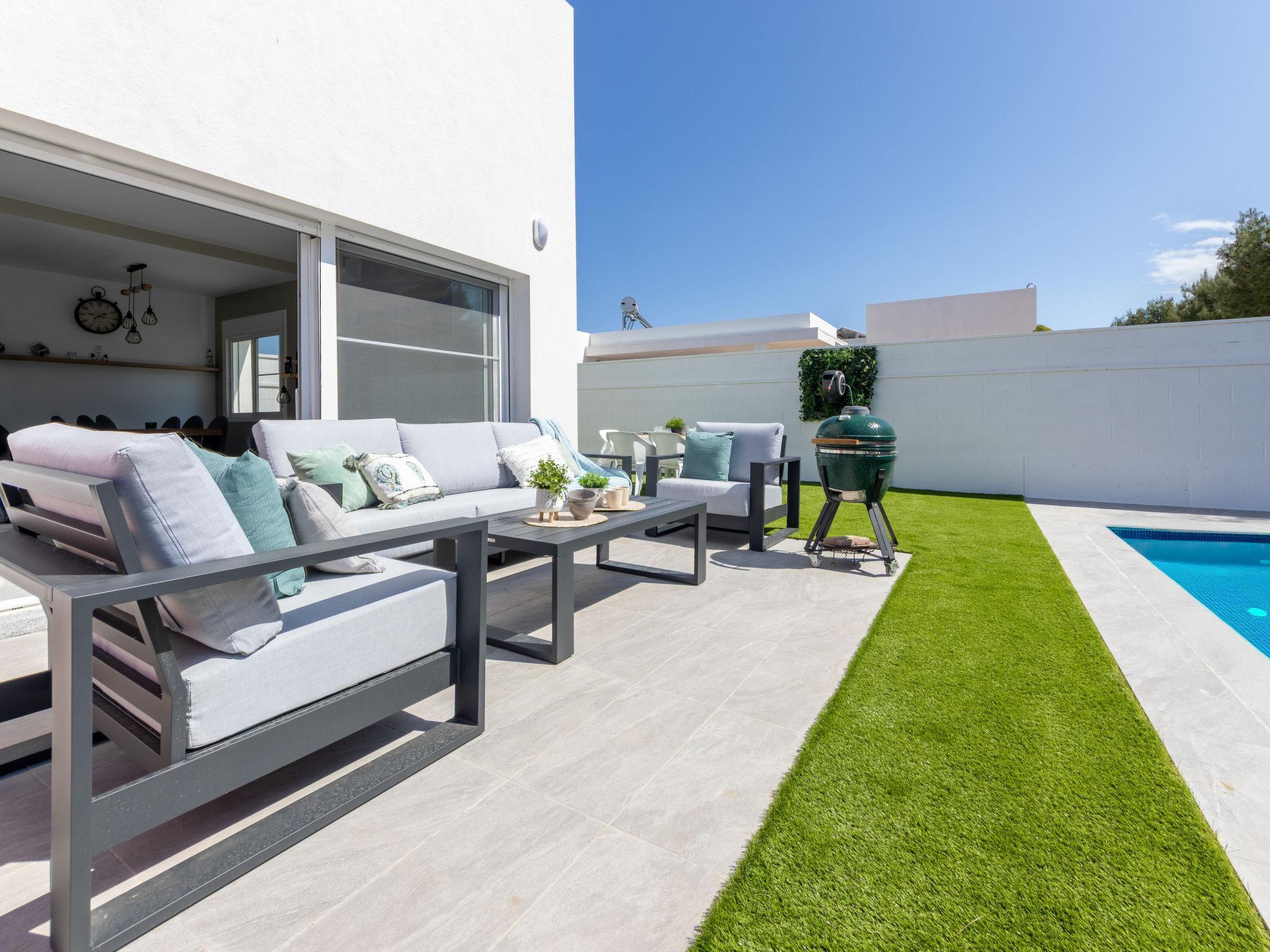 Riumar 10 km from Deltebre: Modern, cosy house "Alba", semi-detached. In a quiet, sunny position, 700 m from the sea, 700 m from the beach. Private: property (fenced), swimming pool angular (8 x 3 m, depth 160 cm, seasonal availability: 01.Apr. - 30.Nov.) with internal staircase. Outdoor shower, pergola, terrace, garden furniture, barbecue. In the house: WiFi, air conditioning, washing machine. Parking at the house. Supermarket 500 m, restaurant, bar 300 m, bakery 600 m, bus stop "Riumar" 400 m, railway station "Aldea- Amposta" 25 km. Nearby attractions: Parc Natural del Delta 800 m, Tortosa 35 km, Playa el Trabucador 29 km, Barcelona 190 km, Port Aventura 70 km. Hiking paths: Ports Tortosa Beseit 52 km, GR 92 20 km. Please note: car recommended. Groups of teenagers on request only.