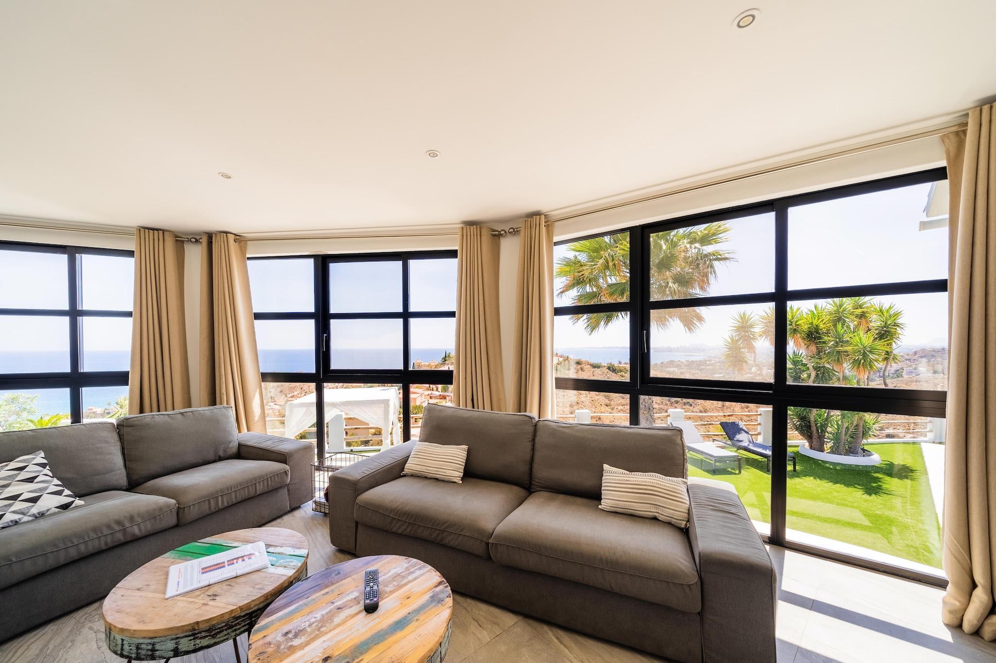 Kystvilla charme Vågn op til en flot udsigt over Middelhavet i denne rummelige 6-værelses villa i Coveta Fumá. Huset er designet med komfort og stil i tankerne og har luftigt interiør, et lyst opholdsrum og seks velindrettede soveværelser - hver tilbyder privatliv og afslapning. Det overordnede niveau er vært for fire soveværelser med eget bad, mens det nederste niveau, der er tilgængeligt via en udendørs trappe, byder på to ekstra soveværelser og badeværelser, hvilket gør det til et fremragende valg for store familier eller grupper. Afslapning og komfort Udendørs bliver den private pool hjertet af villaen, omgivet af liggestole, skyggefulde siddepladser og et moderne udendørs køkken komplet med grill og opvaskemaskine - perfekt til at samles over al fresco måltider. Gæsterne kan anmode om poolopvarmning til en hyggelig svømmetur eller nyde aftenen på terrassen med havudsigt. Villaen tilbyder også bekvemmeligheder såsom aircondition, et fuldt udstyret køkken og vaskeri til længere ophold. Lokale smagsoplevelser i nærheden Blot en kort køretur bringer dig til hjertet af Coveta Fumá, hvor sandstrande, restauranter ved vandet og afslappede barer fanger den afslappede kystlivsstil. For mere byenergi er Alicante kun 20 km væk og byder på livlige restauranter, shopping og kulturelle oplevelser. Uanset om du leder efter ro ved poolen, gåture ved havet eller kulinariske eventyr, tilbyder denne villa den perfekte base for at udforske Costa Blanca.