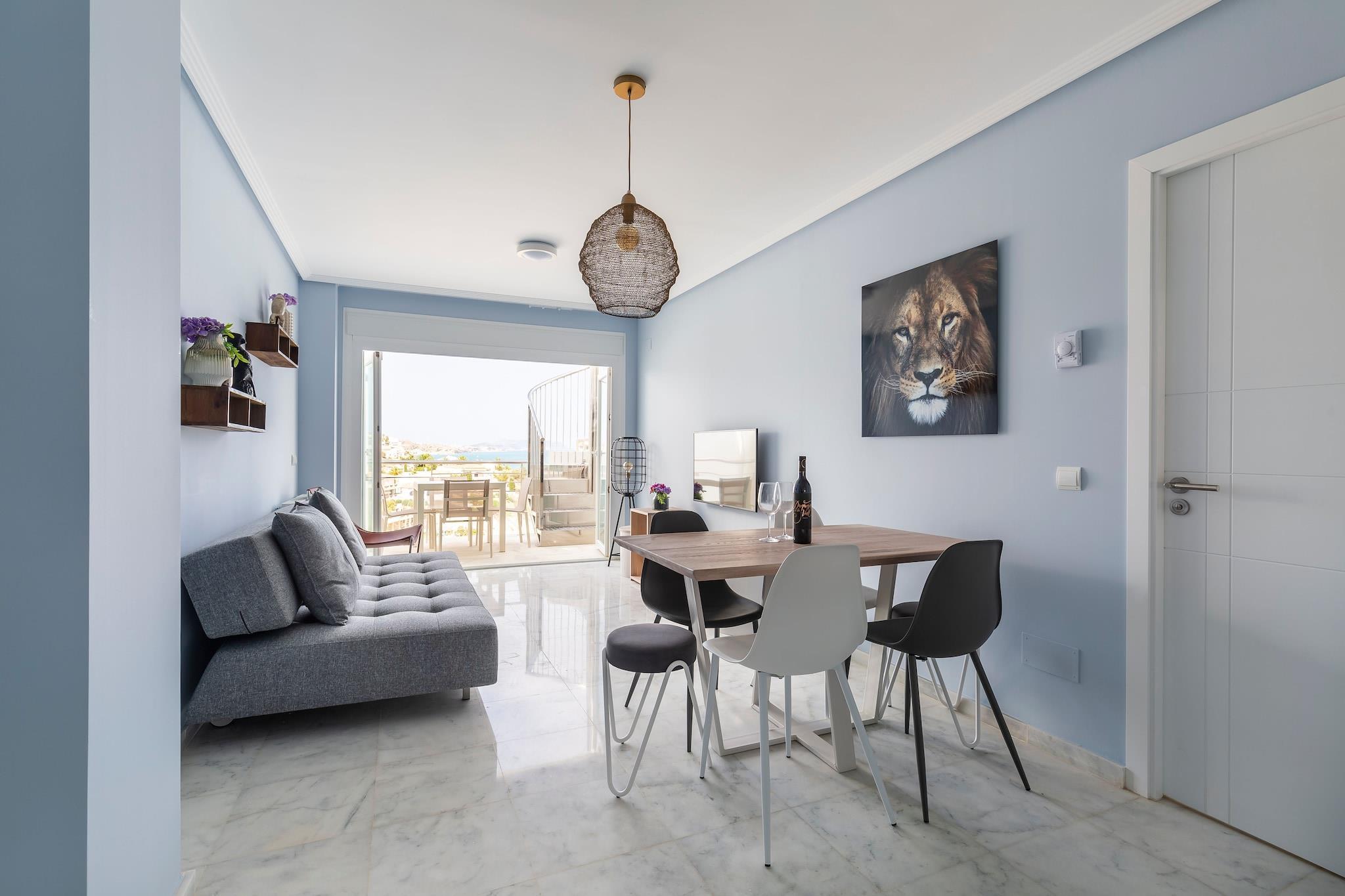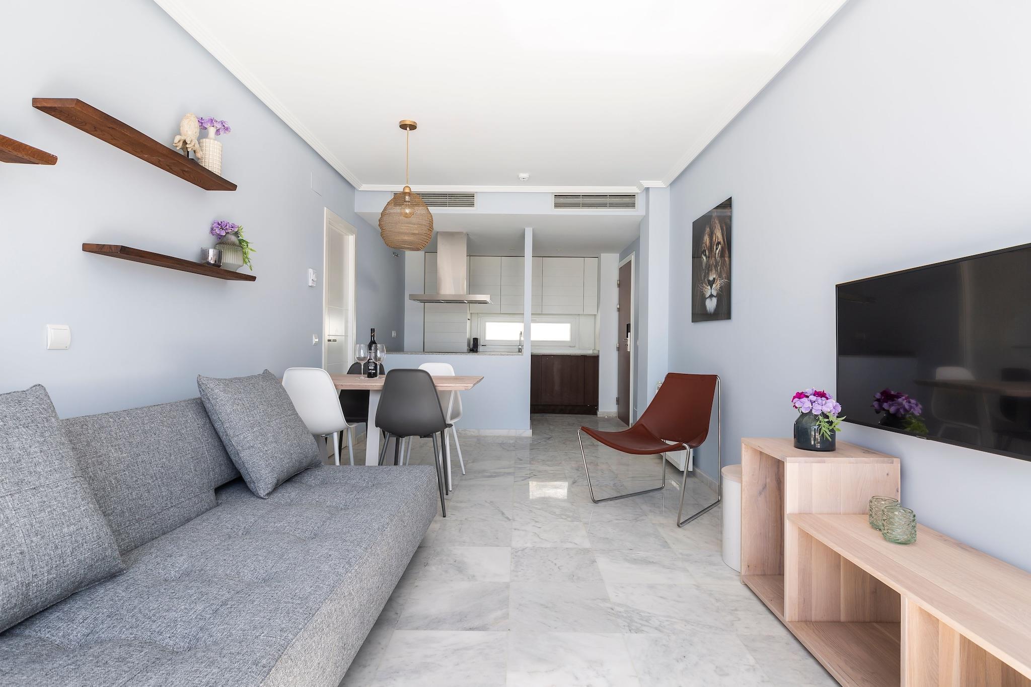 Middelhavsluksus på Costa Blanca Vågn op til funklende havudsigt i denne elegante kystlejlighed i El Campello, hvor marmorgulve, smagfuld indretning og moderne møbler skaber det perfekte middelhavs-tilflugtssted. Fuldt airconditioneret og tilbyder gratis WiFi, dette stilfulde rum kan sove op til to voksne og to børn komfortabelt med en hyggelig sovesofa til de mindste. Træd fra stuen ud på din private balkon, eller gå op til den solbeskinnede terrasse med liggestole og en skyggefuld pergola - ideel til morgenkaffe eller solnedgangsdrinks. Perfekt beliggenhed for strand, kultur og afslapning Beliggende lige ved kysten, er du kun få skridt fra gyldent sand, turkisblåt vand og den livlige marina. Udforsk charmerende lokale markeder, tag en spadseretur langs den palmeomkransede promenade, eller begiv dig til nærliggende Alicante for historie og natteliv. Med en opvarmet fælles pool, underjordisk parkering (betalt) og al komfort lige ved hånden, blander dit ophold fritid med bekvemmelighed. Kæledyrsvenlige eventyr ved havet Tag din lodne ven med for at nyde vandreture langs kysten, hundevenlige strande som Playa de Agua Amarga og skyggefulde parkstier perfekt til en afslappet eftermiddag. Mange lokale caféer tager imod kæledyr, så du kan nyde tapas og frisk fisk og skaldyr uden at efterlade din ledsager. Uanset om det er en løbetur ved solopgang langs kysten eller en doven dag, hvor du nyder Middelhavets sol, er denne Costa Blanca-ferie skabt til at skabe minder – sammen.