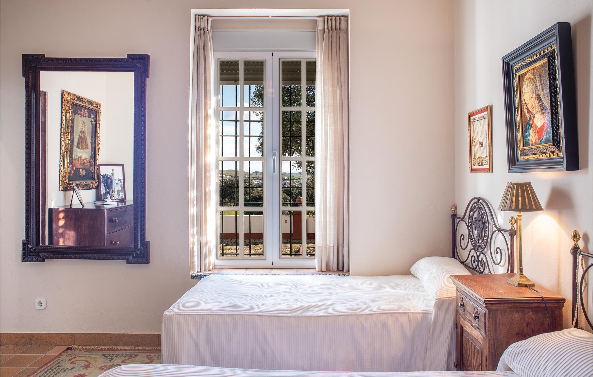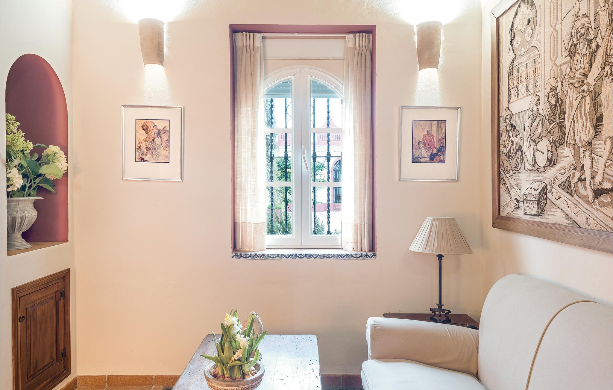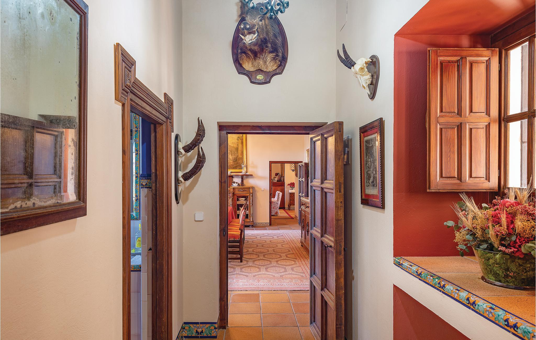 Allerede på lang afstand overtaler denne majestætiske cotijo (landsted) til 12 personer med sin hvide og okkerfarvede fremtoning. (Den kan også lejes under EAC076 til kun seks personer). Når I træder ind, befinder I jer i en stor indre gård, hvor en stor del af det daglige liv foregik i sin tid. I dag er huset med sine arkader og den gennemgående veranda et sted til afslapning. Husets indre område med nænsomt restaurerede møbler, smukke døre og malerier sørger for en særlig atmosfære og et uforglemmeligt ophold i Andalusien. Værelserne er førsteklasses udstyret, der er kælet for detaljerne. Kun ca. 25 km fra naturreservatet "El Castillo de las Guardas" med mange vilde dyr. Ca. 40 km længere mod nord i provinsen Huelva ligger landsbyen Aracena med den kendte hule "La Gruta de las Maravillas". Hele omegnen har et righoldigt køkken med traditionelle retter og den fremragende skinke "Jamón Ibérico". Ca. 40 km fra Sevilla.