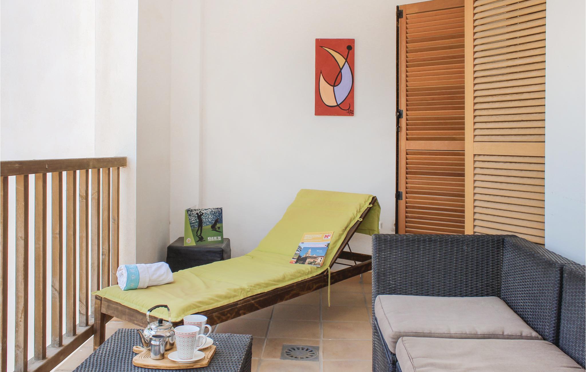 Lejligheden er moderne indrettet og I kan glæde jer til at nyde morgenkaffen på altanen mens I planlægger dagens aktiviteter og nyder udsigten. I har også loungemøbler og solstol til rådighed, så I kan nyde de lune dage her, hvis I har lyst.