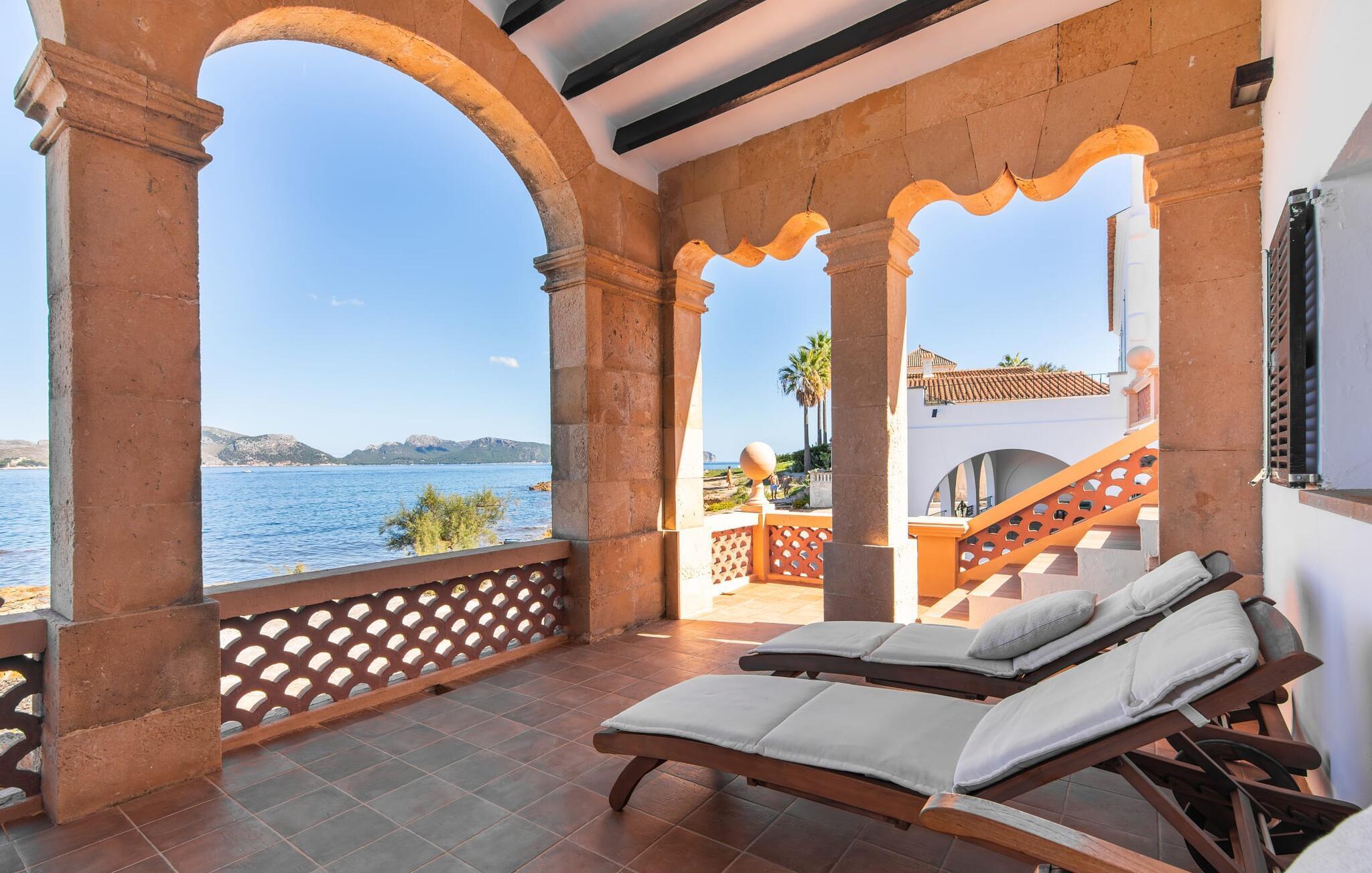 Middelhavet vil være allestedsnærværende under dit ophold på Villa "Es Clot". Fra de hyggelige, delvist overdækkede terrasser omkring huset kan du nyde en smuk, uhindret udsigt over Pollença-bugten og i skyggen en behagelig havbrise. Forestil dig at spise morgenmad ved solopgang, have en hyggelig grillfest eller bare dase her. Din pool vil være det ægte Middelhav - det er kun få skridt fra din terrasse til den lave klippekyst. Takket være en omhyggelig renovering har villaen bibeholdt sin oprindelige arkitektur med høje bjælkelofter og udsmykkede sandstensbuer. Villaens boligareal er opdelt i et hovedhus og et separat tilgængeligt studie. Den lyse stue med moderne pejs og udgang til terrassen med havudsigt er i hovedhuset. Den deler rummeligt værelse med spisestuen, som også har glasdør til ydersiden på modsatte side. Det moderne, fuldt udstyrede køkken ligger lige ved siden af stuen. Derudover har hovedhuset tre soveværelser med dobbeltsenge, hvoraf det ene har en-suite badeværelse, og et andet badeværelse til fælles brug. Studiet er forbundet med hovedhuset via terrassen og har eget hyggeligt opholdsområde med havudsigt, soveværelse med dobbeltseng og badeværelse. Alle soveværelser samt stue og køkken er udstyret med aircondition. Villaen ligger i det lille boligområde Morer Vermell på halvøen Victòria i den nordøstlige del af Mallorca. Der er indkøbsmuligheder i Alcúdia, 1,5 km væk. På 10 minutter i bil kan du nå de lange sandstrande i Alcúdia og Pollença. Dette er et Fincallorca feriehus.