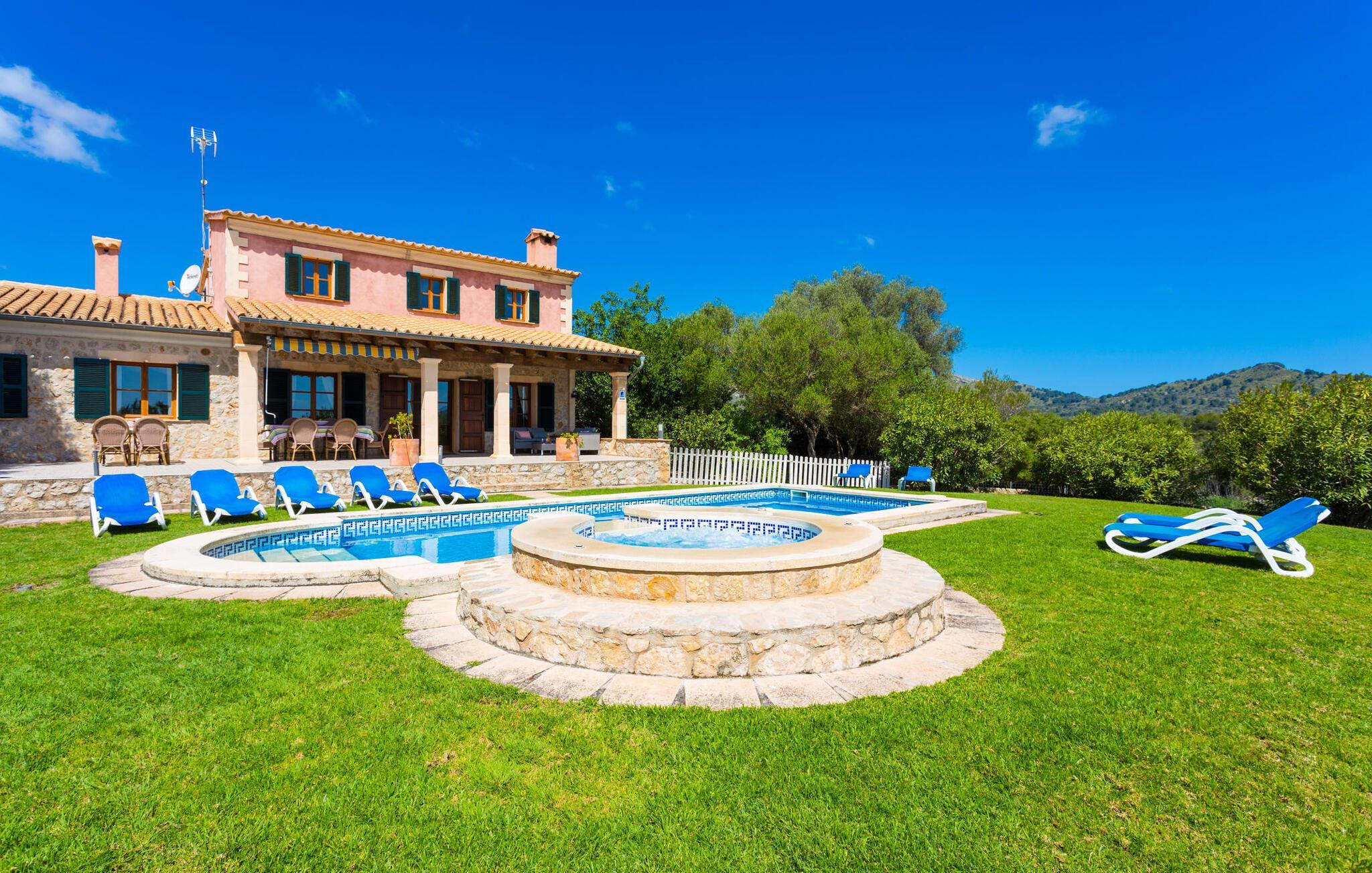 Denne rummelige, typisk mallorcanske villa ligger i den nordøstlige del af Mallorca, kun 3 km vest for Artà. Det ligger på en afsondret bjergskråning og tilbyder en fantastisk udsigt over de omkringliggende bjerge og den charmerende by nedenfor. Om natten bidrager det oplyste San Salvador-kloster til den fortryllende atmosfære. "Es Corto" er omgivet af naturlig skønhed, med cypresser, oliven- og mandeltræer, der beriger landskabet. Dette er et feriehus i Fincallorca. som er perfekt til afslapning efter en begivenhedsrig dag. Behagelige liggestole omgiver poolen og gør det til et ideelt sted for solbadning perfekt til gruppemåltider og har en mobil grill til at grille om sommeren Med et moderne og stilrent interiør, hvide vægge, store gulvfliser og buede gange er der en fantastisk stemning i det centrale område Villaen har også en rummelig stue med en pejs, en spiseplads og et fuldt udstyret køkken. Fem dobbeltværelser og fem badeværelser sikrer masser af plads og privatliv. Med centralvarme og vaskemaskine er denne villa perfekt til helårsophold. Den rummelige villa "Es Corto" er et roligt, udsat landsted beliggende på en bakke, ca. 3 km fra Artà naturlige sandstrand i Cala Torta kan nås på cirka 10 minutter i bil. Der er fire golfbaner i nærheden af villaen, hvoraf nogle er kun 5 minutter væk i bil.
