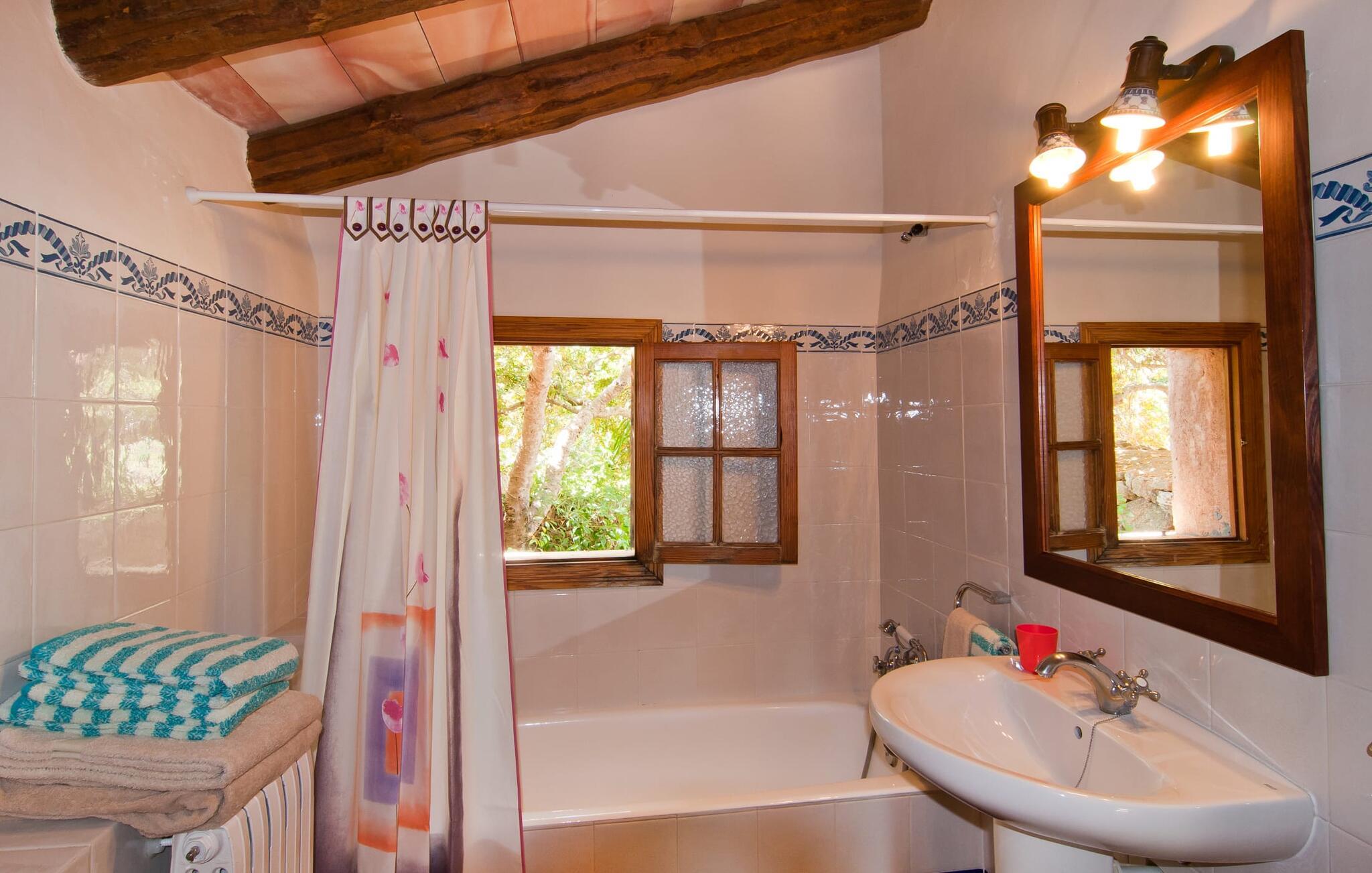 Historisk ejendom, dyreelskende gård, idyllisk mandeltræsvilla, komfortabel og omgængelig agroturismeindkvartering: det er tydeligt, at disse beskrivelser gælder for den røde gård "Es Rafal Roig" med hovedhuset lavet af natursten og tre små udhuse. Der er hele 350.000 m² frodige blomster- og grønne områder at opdage, med masser af detaljer, der vil glæde både unge og gamle. Der er hyggekroge omgivet af kaktusser, palmer, duftende oleander og utallige plantede terracottakrukker, vand fra gårdens egen dybe brønd, solenergi og marsvin, æsler, høns, gæs og skildpadder lever på deres eget territorium. Mens de voksne slapper af i den 10 m lange, centralt beliggende pool, kan de små plaske rundt i deres eget bassin bag stenmuren, som man kan holde øje med fra liggestolene. Legepladser med store og små rutsjebaner, sandkasser og udstyr til alle former for boldspil sikrer, at I ikke keder jer og I kan også se landbruget. Stole og borde er spredt rundt på solrige og skyggefulde steder, hvor gæsterne kan holde en picnic eller chatte. Det lille grillhus, et originalt fra oldtiden, kan bruges hver dag og deler pladsen med udetoilet og bruser. Hver boligenhed har sin egen charme. Stueetagen "Es Saboal" husede engang, som navnet antyder, staldene til muldyr og æsler. I nyder godt af 67 m² boligareal samt en rummelig terrasse og et lille haveområde, som er malerisk omgivet af en naturstensmur. Funktionalitet og hygge præger den hyggelige atmosfære indenfor. Naturstenselementer, gamle fodertrug og en dørkarm af massivt oliventræ skaber en unik og meget hjemlig stemning. En stue og et køkken med en anden indgang er til rådighed for en afslappende ferie. Med 4 gasblus, køleskab, dobbelt vask, kaffemaskine osv. er I godt rustet til at tilberede måltider, passe jer selv optimalt og forblive helt selvstændig på ferien. To soveværelser adskilt af en skydedør, hver med to 1 x 2 m senge. Dagslysebadeværelset med typiske mallorcanske fliser har en praktisk brusebakke. Og hvis 67m² boligareal ikke er nok for jer, kan I forvandle hele ejendommen til jeres blomstrende udendørs opholdsstue, spisestue og legerum. Hvad ville Mallorca være uden mandelblomsterne om foråret og uden den berømte mandelkage? "Es Rafal Roig" er det perfekte sted at opleve begge dele, måske vil ejerne bage noget til jer efter deres familieopskrift. Men også uden for Almendrasæsonen er der talrige muligheder for at opleve og smage på øens specialiteter og delikatesser. I bil (med Ma-3322 i nærheden af villaen) er det ikke langt at nå Manacors historiske centrum, gå en tur gennem gågaden eller det farverige marked. Herfra kan I også tage en stressfri bus eller tog til Palma. På den anden side, godt 15 km væk, venter strandene. Lokalbefolkningen kan lide Son Serra de Marina, det roligste sted i hele Alcúdia-bugten. Det næsten to kilometer lange sandområde mod Colònia de Sant Pere byder på nok solrige steder til alle, og gunstige vinde gør det muligt for surfere at ride blidt på bølgerne. Vandrere kan på den anden side klatre omkring 5 km fra Betlem til Ermita og nyde udsigten over havet. Dette lokale feriehus er en af ni lejeboliger på ejendommen. De andre hedder “Es Blau”, “Es Graner”, “Es Galiner”, “Es Arc”, “Es Cestador”, “Es Nord”, “Es Verd” og “Es Nou” – som alle kan bookes på Fincallorca. Bondegårdsferie med komfort. Denne historiske, ejerledede agroturismo-ejendom med sine syv lejligheder med egen forplejning og to gæstecasitas er særdeles familievenlig. Det har et rummeligt fællesområde og en børnezoo. "Es Rafal Roig" er en ægte mallorcaner fra det 12. århundrede, med udsigt over bakkerne i Serra de Llevant. Manacor med sit daglige frugt- og grøntsagsmarked ligger kun 9 km væk. Det er ideelt til større shoppingture, sightseeingture og spisning. På Badia d'Alcúdia mod Son Serra de Marina og Colònia de Sant Pere finder I smukke strande og badeområder, også nogle for de mindste.