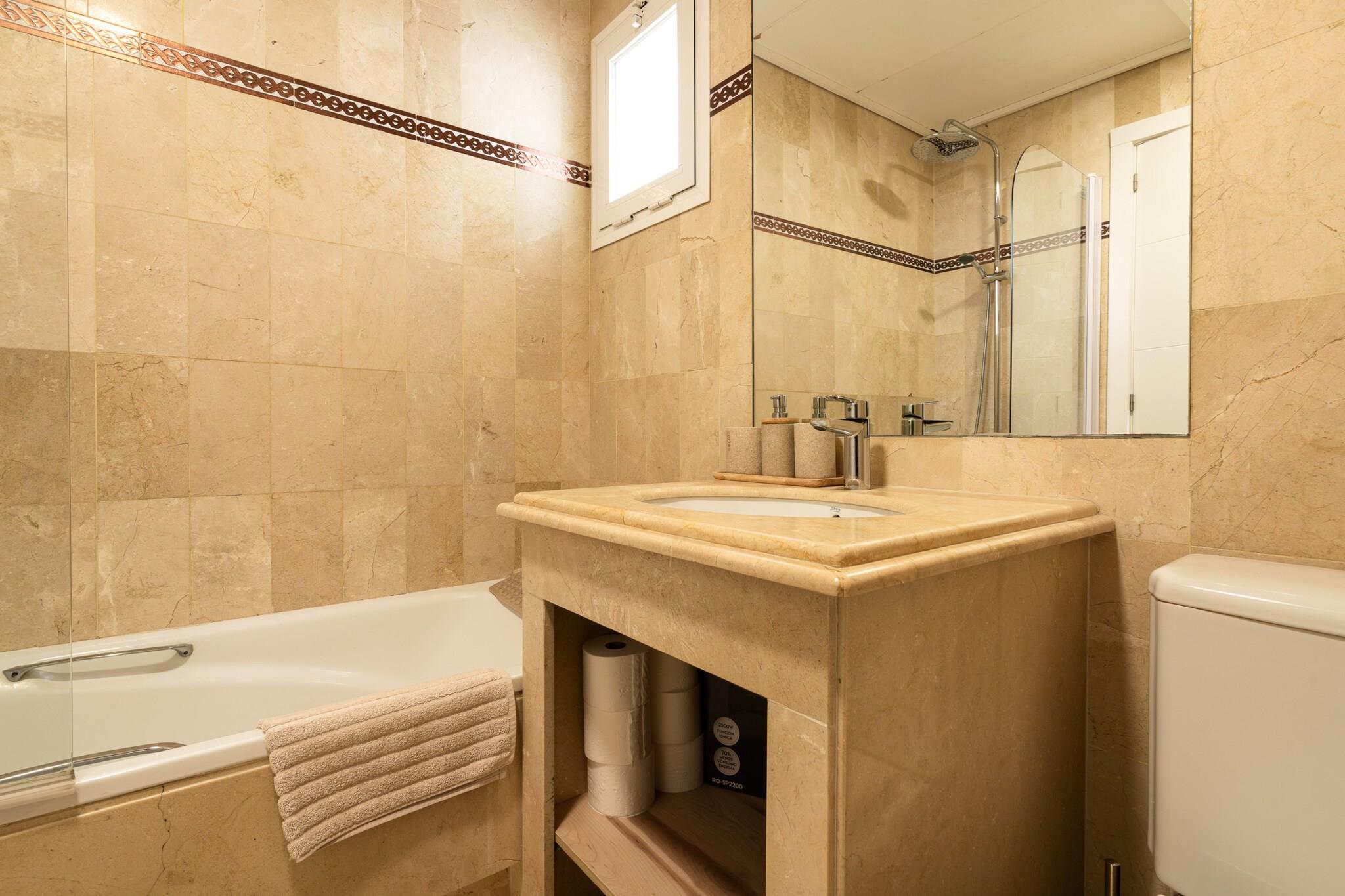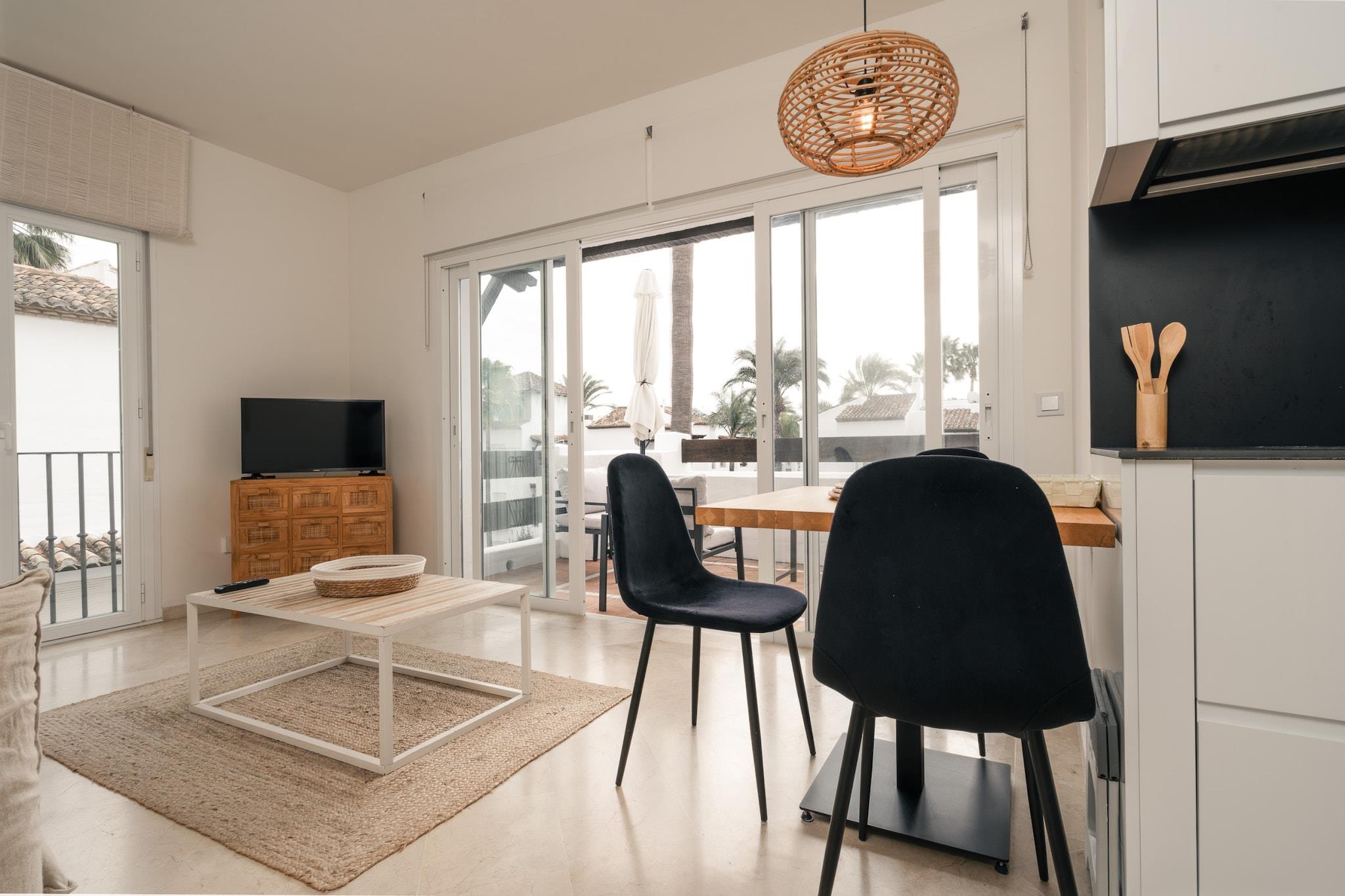 Lejlighed ved havet med have Denne charmerende 1-værelses lejlighed i Estepona kan rumme op til 3 gæster og byder på 40 m² komfortabelt boligareal. Det åbne køkken er fuldt udstyret med moderne nødvendigheder, herunder en induktionskomfur, køleskab, mikroovn, kaffemaskine, brødrister, kedel og juicer. Slap af i opholdsstuen med en enkelt sovesofa og tv, eller nyd frisk luft på den 6 m² store terrasse med udsigt over haven. Ejendommen tilbyder også aircondition, centralvarme og delt adgang til en swimmingpool, mens udendørs parkering sikrer bekvemmelighed under dit ophold. Udforsk Estepona og omgivelser Beliggende kun 75 meter fra sandstranden, er denne lejlighed ideel til solbadning, svømning eller slentre langs Middelhavets kystlinje. Golfentusiaster kan nyde den nærliggende bane kun 1 km væk. Gå en tur til lokale butikker eller besøg den historiske bymidte for at se sightseeing. Uden kæledyr tilladt, kan besøgende fuldt ud fokusere på strandaktiviteter, udendørs sport og udforske Esteponas charmerende gader og kulturelle attraktioner. Spisning og lokal bekvemmelighed Supermarkeder er kun 500 meter væk, hvilket gør selvforplejning let. Nærliggende restauranter serverer frisk fisk og skaldyr og traditionelle andalusiske retter, mens caféer og bagerier byder på hyggelige morgensteder. Esteponas busstoppesteder og Malaga Lufthavn, som ligger 60 km væk, tilbyder problemfri transportmuligheder. Med lejlighedens centrale beliggenhed, fælles pool og moderne bekvemmeligheder kan gæsterne nyde en bekvem, afslappende og mindeværdig kystferie.