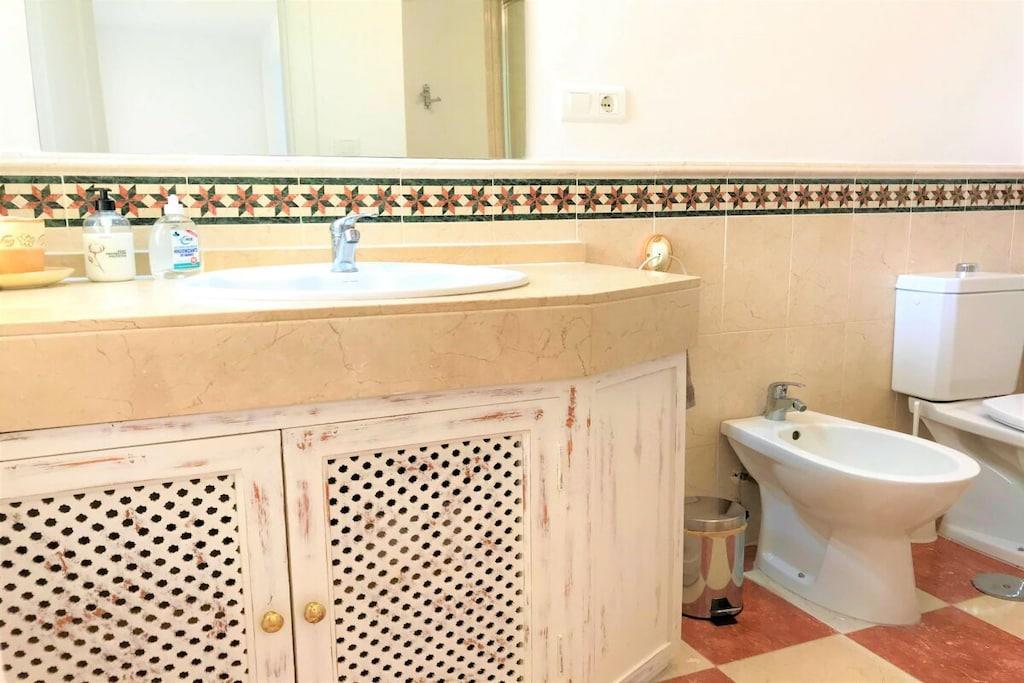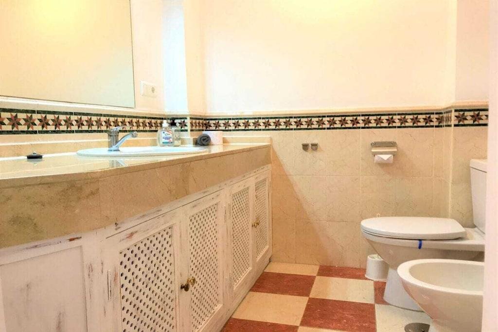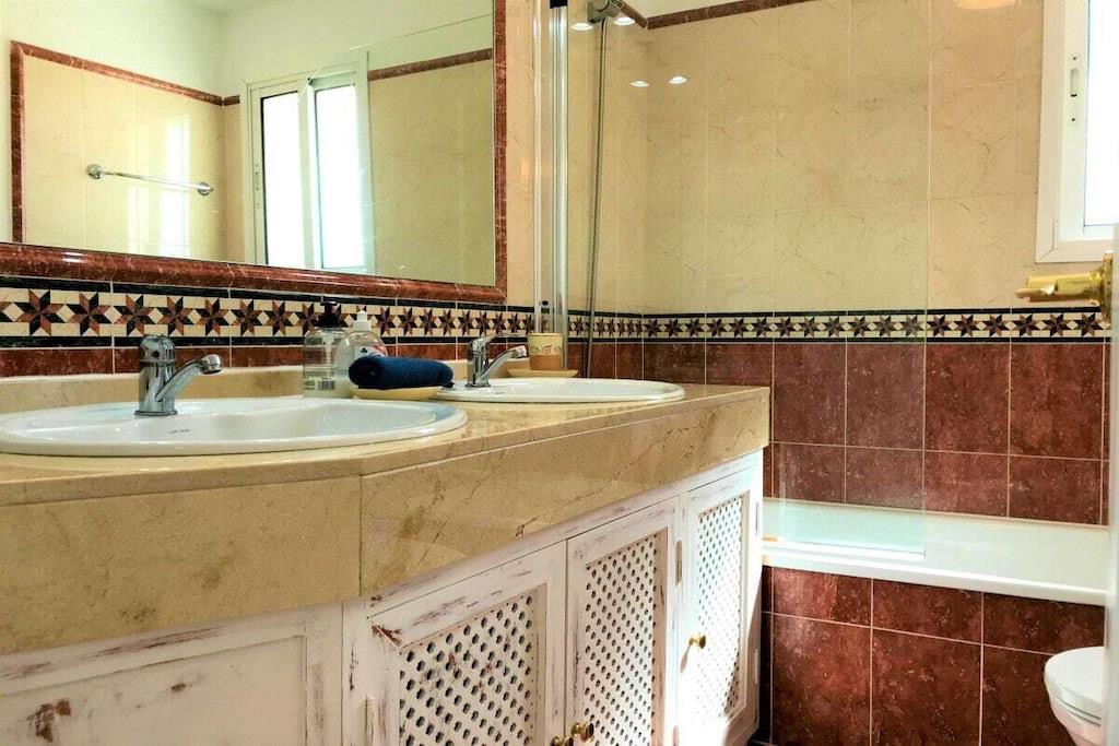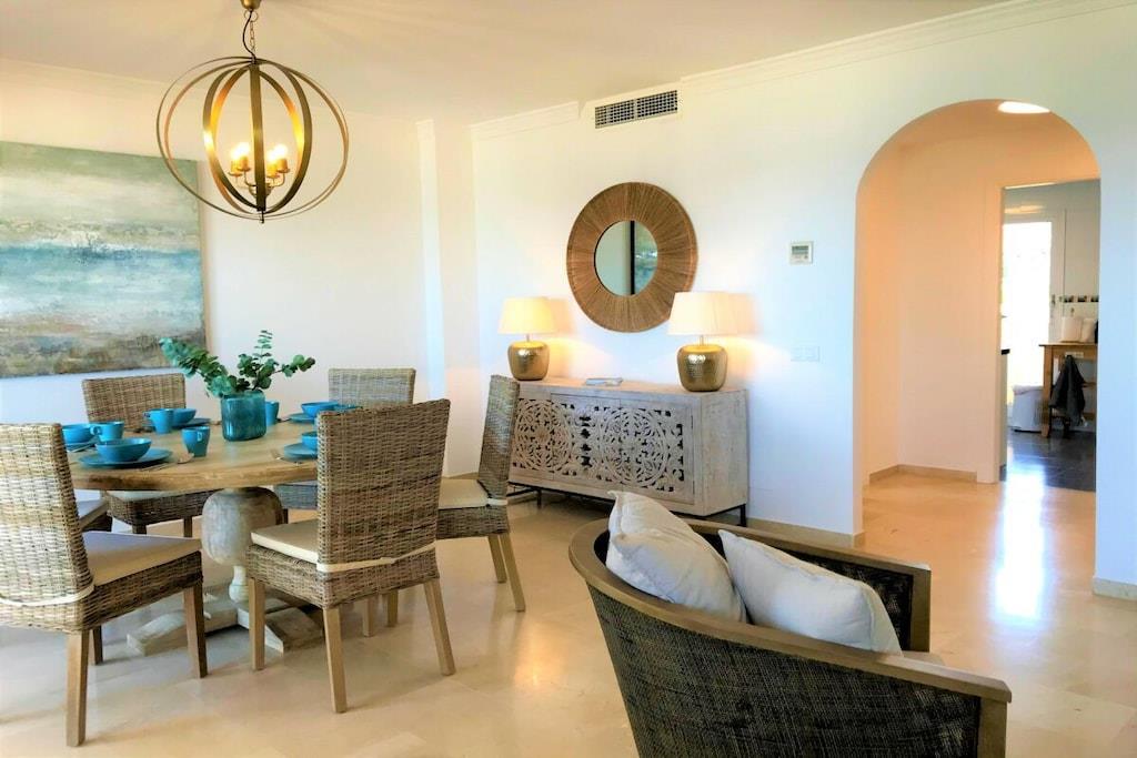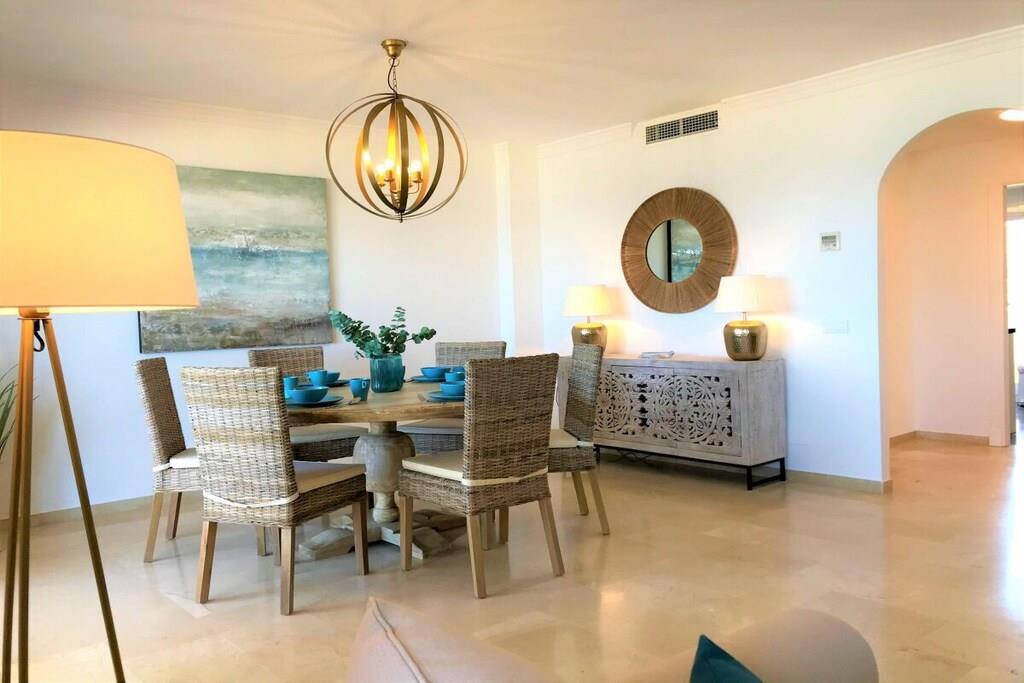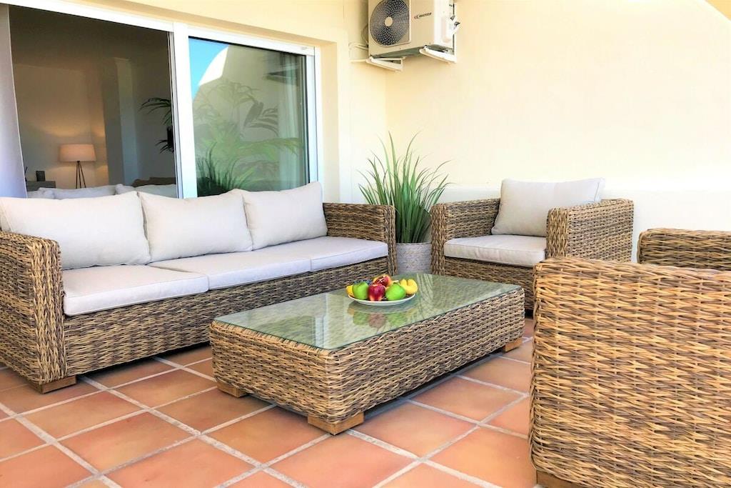 Wir vermieten unsere einzigartige Strandwohnung Penthouse Bermuda Beach 2 an der Costa del Sol. Die Wohnung ist sehr geräumig (280m² inkl. Terrassen) und bietet somit sehr viel Platz und Komfort. Die Wohnung wurde im Jahr 2020 aufwendig renoviert & neu eingerichtet. Im Eingangsgeschoss erwarten Sie dass große Wohn-Esszimmer, die komplett ausgestattete neue Küche, ein Gäste-WC und ein Abstellraum. Das Wohnzimmer verfügt über einen großen Essbereich für 6 Personen und einen bequemen Wohnbereich mit Sofas und Stuhl. Wenn Sie im Wohnzimmer sitzen, sehen Sie direkt aufs offene Meer hinaus! Vom Wohnzimmer haben Sie direkten Zugang zur 60m² großen, teilweise überdachten, Hauptterrasse. Hier können Sie Ihr Frühstück oder Abendessen entspannt in der Sonne genießen und dem Meer lauschen. Hier haben Sie eine große Lounge-Garnitur mit 3-er Sofa und 2 Sessel dazu 2 Sonnenliegen. TRAUMHAFTER AUSBLICK ÜBER DIE GESAMTE KÜSTE! Daneben gibt es einen großen Esstisch und einen Grill. Durch eine Innentreppe gelangt man ins 1.OG, woch sich alle Schlafzimmer befinden. Alle Schlafzimmer sind sehr geräumig und verfügen über eingebaute Wandschränke mit mehr als ausreichend Stauraum. Das Hauptschlafzimmer ist grösser und bietet ein Doppelbett und ein eigenes en-suite-Vollbad mit Doppelwaschbecken, WC, Bidet und Badewanne mit Dusche an. Vor dem Hauptschlafzimmer und dem 2.Gästezimmer befindet sich eine zweite große Terrasse mit einem zweiten Gartentisch. Wenn Sie in Ihrem Bett liegen, schauen Sie aufs offene Meer hinaus! Die restlichen Schlafzimmer verfügen über Einzelbetten und teilen sich ein Duschbad im Gang. Über eine Innentreppe gelangt man schließlich ins 2 OG., wo sich die 50m² große Dachterrasse befindet. Von dieser Terrasse aus genießt man einen wunderschönen Rund-Um-Blick über die gesamte nahe Küste von Estepona bis nach Gibraltar und Nordafrika. Sonnenhungrige haben hier bis spät abends direkten Sonnenschein.