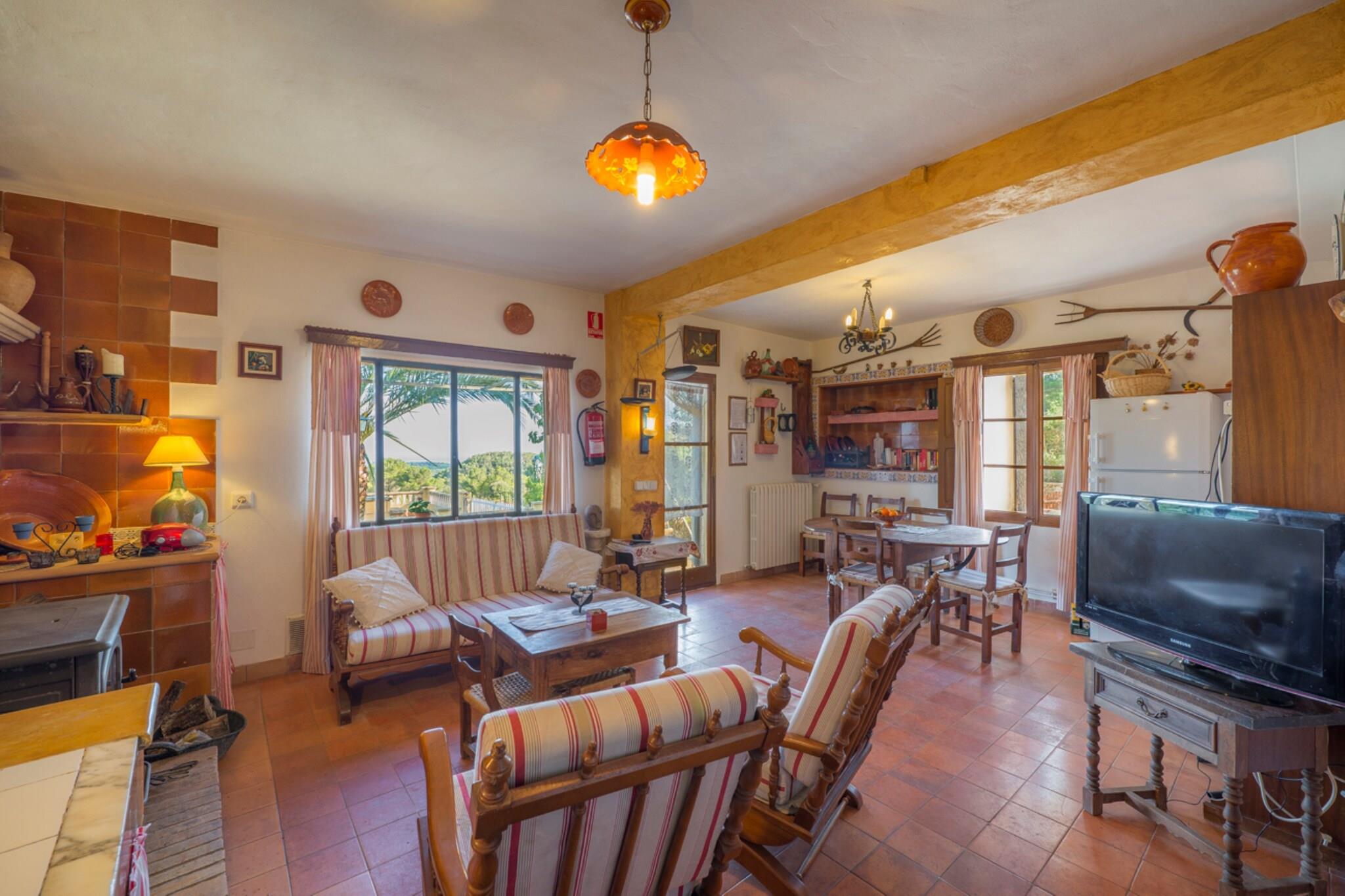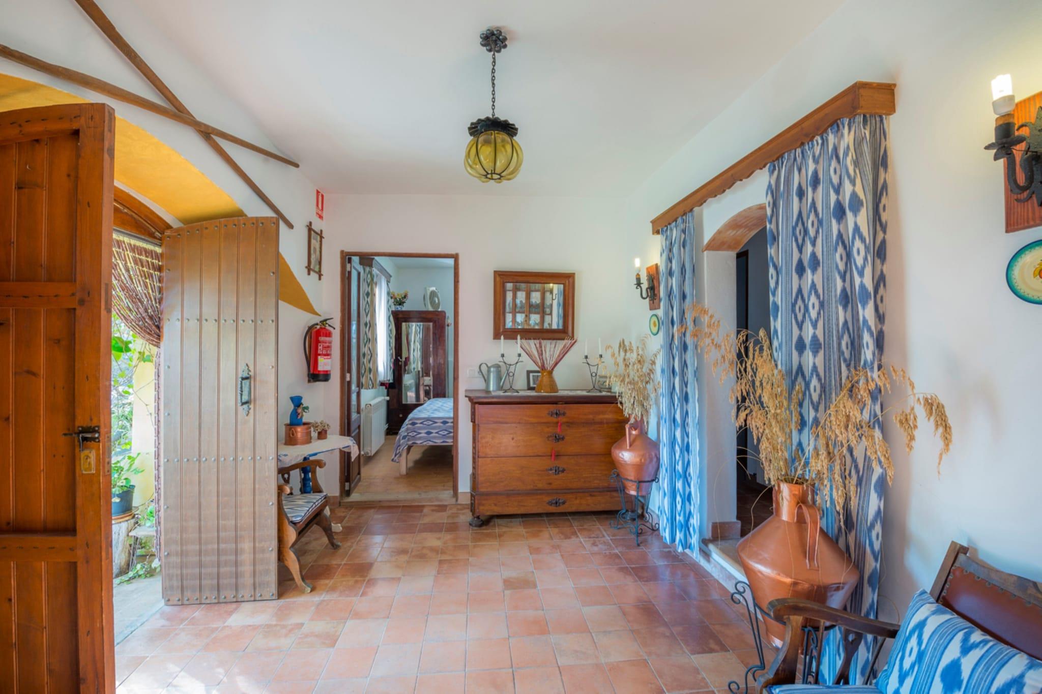 Vanuit dit 18e-eeuwse huis, gerenoveerd in 1990, is het genieten van de bergen, het bos en het uitzicht over de kust van het zuiden van Mallorca en bovendien in een van de meest bevoorrechte natuurlijke omgevingen van Mallorca een van de privileges die deze accommodatie ons biedt. Het heeft 3 kamers voor 5 personen. Ze zijn gerangschikt op één verdieping. Twee tweepersoonskamers met een tweepersoonsbed en één met een eenpersoonsbed. Het heeft 2 badkamers; één met een douche en de andere met een ligbad. Laat tijdens de zomermaanden de frisse lucht van de zuidelijke bergketen van Mallorca het huis binnendringen. U zult genieten van deze sensatie binnen en buiten het huis. Als aanvulling heeft het huis drie ventilatoren, zodat je ze over de ruimtes kunt verdelen die je nodig hebt. Daarnaast is er voor de koudere maanden centrale verwarming en een open haard die voor een zeer aangename warmte door het hele huis zorgt. Het heeft een zeer charmante woon-eetkamer, goed verdeeld en die de charme van de traditionele Mallorcaanse architectuur behoudt. De keuken is zeer goed uitgerust, met alle essentiële elementen, zodat u met veel plezier kunt koken. Onder de uitrusting vindt u: mixer, magnetron, koelkast met vriesvak, gasfornuis en oven, elektrisch koffiezetapparaat, broodrooster, Italiaans koffiezetapparaat, fruitpers, waterkoker. Er is ook een wasmachine, strijkplank en strijkijzer. De woonkamer is een zeer gezellige plek voor een lang verblijf. Het is zeer geschikt om uit te rusten op de banken die ons uitnodigen om te ontspannen, tv te kijken of een boek te lezen. Tot de uitrusting behoren TV-SAT en Wi-Fi. De buitenkant is spectaculair en suggestief met een prachtig uitzicht over een indrukwekkende horizon waar u de bergen en de Mallorcaanse dennenbossen eromheen kunt zien, en over een brede strook van de kust van het zuiden van Mallorca. Het terras bij het zwembad is een ruimte waar u zich niet wilt verplaatsen en van lange avonden buiten kunt genieten. En u zult daar nog meer reden voor hebben als u zich op uw comfortabele terras nestelt en van de barbecue profiteert om de meest praktische en smakelijke gerechten te bereiden. Het zwembad is 8 x 3,75 meter met een diepte van 1,70 meter tot maximaal 1,80 meter. Allemaal uitgerust met parasols voor de zonnigste uren en 5 ligstoelen tot uw beschikking om van de Mallorcaanse zon te genieten. Opgemerkt moet worden dat dit huis, om nog meer respect te hebben voor de omgeving waarin het zich bevindt, over zonne-energie beschikt. De locatie van het huis ligt in het zuiden van Mallorca, in een bevoorrechte natuurlijke omgeving. Het is een andere manier om het verborgen Mallorca te leren kennen. Hoewel het in een afgelegen gebied ligt, heeft het goede wegverbindingen met veel bezienswaardigheden en recreatiemogelijkheden, waardoor het aantrekkelijk is om een ??wandeling te maken door de nabijgelegen baaien en stranden (allemaal binnen een straal van 16 km). Het huis ligt op 6 km van de stad Felanitx, waar het veel openbare en commerciële diensten heeft. Voor eventuele extra kosten kunt u contact opnemen met de adverteerder. Huisdieren tot 5,00 kg zijn welkom. Het vieren van evenementen is niet toegestaan. Er is buiten parkeergelegenheid voor 4 auto's. Afstanden Strand: 12 km - Cala Marçal Luchthaven: 53 km - Son Sant Joan Golfbaan: 7,5 km - Golf Vall D'Or Stad: 6 km - Felanitx Treinstation: 18 km - Manacor Bushalte: 7 km - Felanitx Veerboot: 60,9 km - Haven van Palma Ziekenhuis: 19 km - Manacor Toeristenvergunning: VT/456Bij de ingang dient u de Ecotasa (toeristenbelasting van de Balearen) contant te betalen. Het bedrag varieert tussen EURO 0,55 / per nacht per persoon in het laagseizoen en EURO 2,2 / per nacht per persoon in het hoogseizoen. Vanaf de negende dag wordt het met de helft verminderd. Personen onder de 16 jaar uitgesloten.