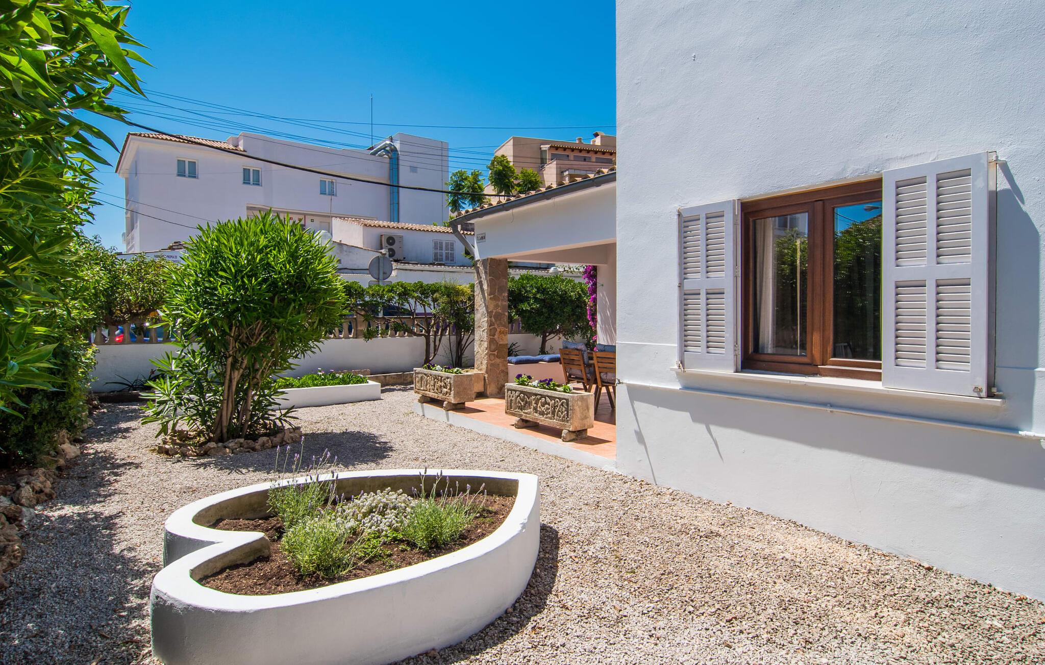 Na Ferradura, navnet på den lille bugt kun et stenkast væk, fungerede som inspiration til husets navn. Oversat betyder det "hestesko", og I er helt sikkert heldig, hvis I har valgt denne centralt beliggende villa i den mangfoldige badeby Cala Ratjada. Stranden ligger kun 170 meters gang herfra, så den nærmest føles som en forlængelse af husets uderum. Efter at have nydt solbadning og plasket i havet, vender I tilbage til villaens grund, hvor I vil finde et storslået udendørsområde, kærligt anlagt af ejeren med blomsterbede og buske. Her finder I et sted, hvor I kan nyde skyggen af ??din overdækkede terrasse og planlægge jeres eftermiddag med en kop kaffe eller te. I kan også begynde at forberede aftenens BBQ; Der er et separat terrasseområde, som er udstyret med to liggestole og inviterer jer til at slappe af. I japanske zenhaver repræsenterer småsten ofte havet. De spiller også en fremtrædende rolle i denne have, som kombineret med havets nærhed og den salte luft bidrager til dette steds maritime karakter. Den hvidmalede facade efterlader ingen tvivl om, at I befinder jer i et middelhavsmiljø. Hvid dominerer også interiøret i jeres villa sammen med gulvets beroligende grønne tone. Værelserne er indrettet i en enkel, venlig stil med fokus på komfort. Den overdækkede terrasse støder op til stuen, hvor der er pejs og spisebord. Takket være den moderne satellitteknologis vidundere modtager fladskærms-tv'et tv-programmer overalt, så I altid ved, hvad der sker derhjemme. Et storslået billede af en sommerfugl pryder væggen, der minder os om, hvor meget skønhed der omgiver os i naturen. Hvor er det heldigt, at øens milde klima betyder, at vi kan nyde så mange ting, mens vi er på ferie her! Naturen giver os også kulinarisk skønhed – og villaens køkken er det perfekte sted at fremtrylle mallorcanske specialiteter som frisk fisk, som I vil huske i lang tid. I køkkenet finder I moderne faciliteter som gaskomfur, perfekt til præcis madlavning. To af dobbeltværelserne har en dobbeltseng. I de øvrige værelser finder I enkeltsenge, så I har mange muligheder. Badeværelset har bruser og er stort nok til at sikre jer en helt afslappende og velplejet ferie. Takket være villaens bekvemme beliggenhed, er der en god chance for, at I smiler senere, når I tænker tilbage på jeres ferie her. Nærheden til stranden er allerede blevet nævnt. Hvis I sætter pris på variation, vil I helt sikkert nyde feriestedet Cala Ratjada, hvor der er talrige barer, restauranter og klubber, der bidrager til det legendariske natteliv. I skal dog ikke bekymre jer om støjniveauet – selve villaen ligger på ingen måde i en så varm beliggenhed, selvom I af og til kan høre trafikstøj fra gaden lige foran huset. I løbet af dagen vil I måske gå en tur og opdage fyrtårnet med en betagende 360 ??graders udsigt over havet eller besøge markedet om lørdagen. Hvis I kan lide at spille golf, anbefaler vi et besøg på golfbanen Capdepera. Efter en vellykket runde golf eller en god svømmetur på en af ??de mange strande som Cala Lliteres, kan I belønne jer selv med en afslappet gåtur gennem den stemningsfulde by Artà, kun 10 km væk, med en farverig blanding af caféer og små butikker . Villa "Ferradura" ligger midt i Cala Ratjada, kun et stenkast fra stranden og er et ideelt sted at nyde bekvemmelighederne i en moderne, livlig badeby. Den lidt mere stille Cala Agulla ligger 2,5 km derfra. I kan også shoppe og tage en pause i middelalderbyerne Capdepera og Artà. Bemærk venligst, at denne ejendom ikke accepterer ungdomsgrupper eller polterabender. En ungdomsgruppe på denne ejendom består af personer under 30 år. Book ikke denne ejendom, hvis I er en ungdomsgruppe eller en polterabendgruppe, da jeres reservation vil blive afvist, når den er booket, hvilket også kan være tilfældet ved ankomst til ejendommen eller under jeres ophold, og I vil ikke modtage en refusion.