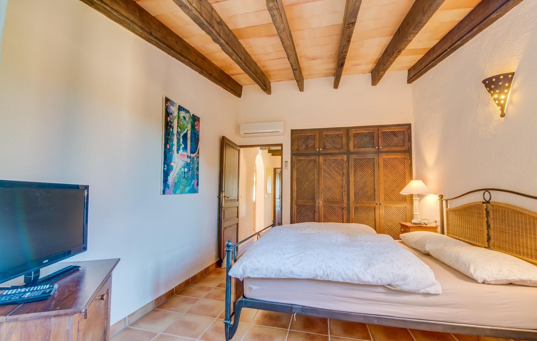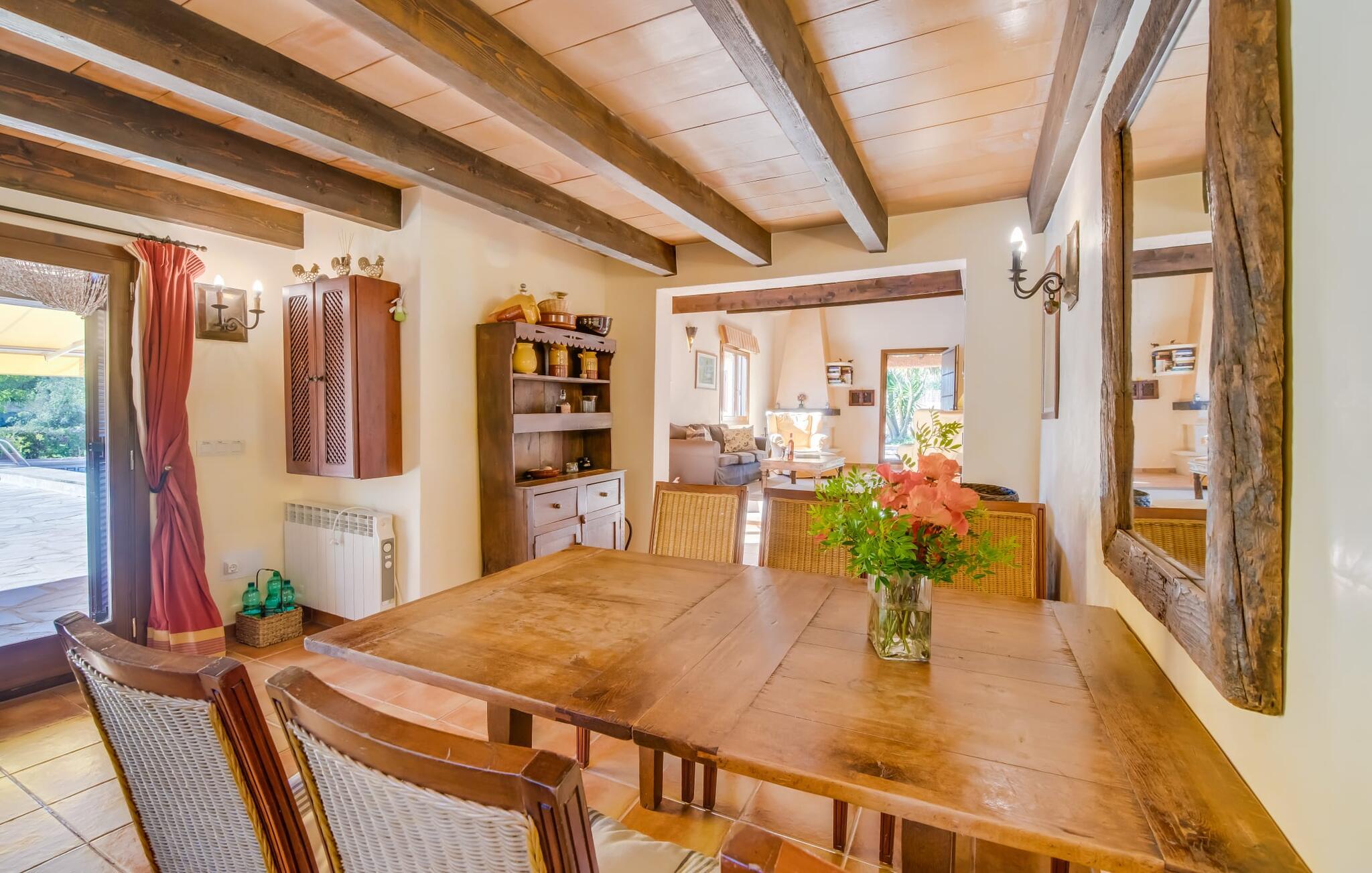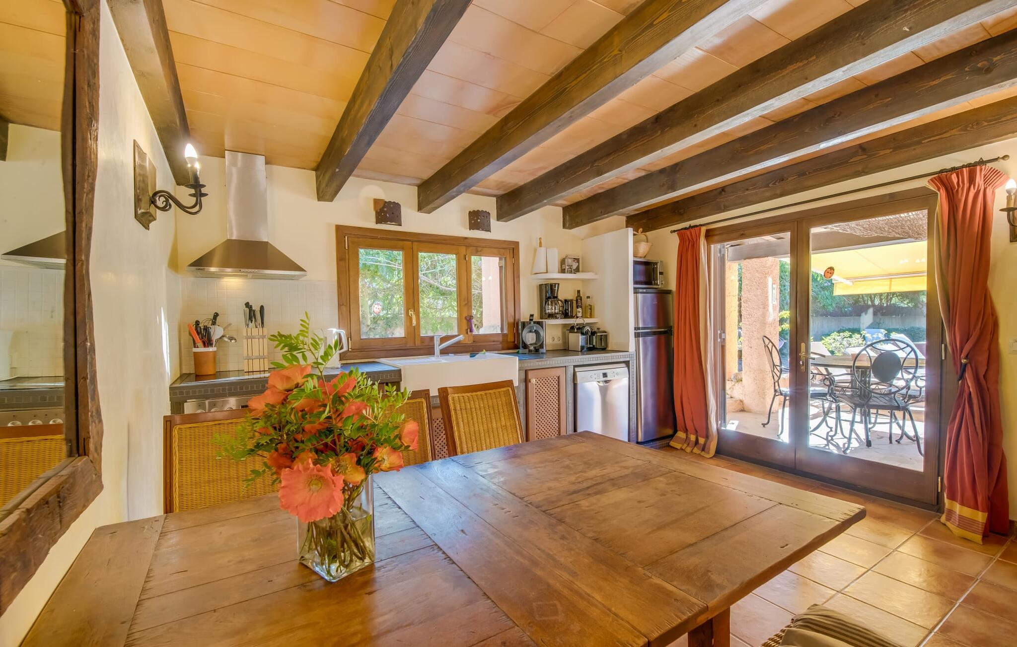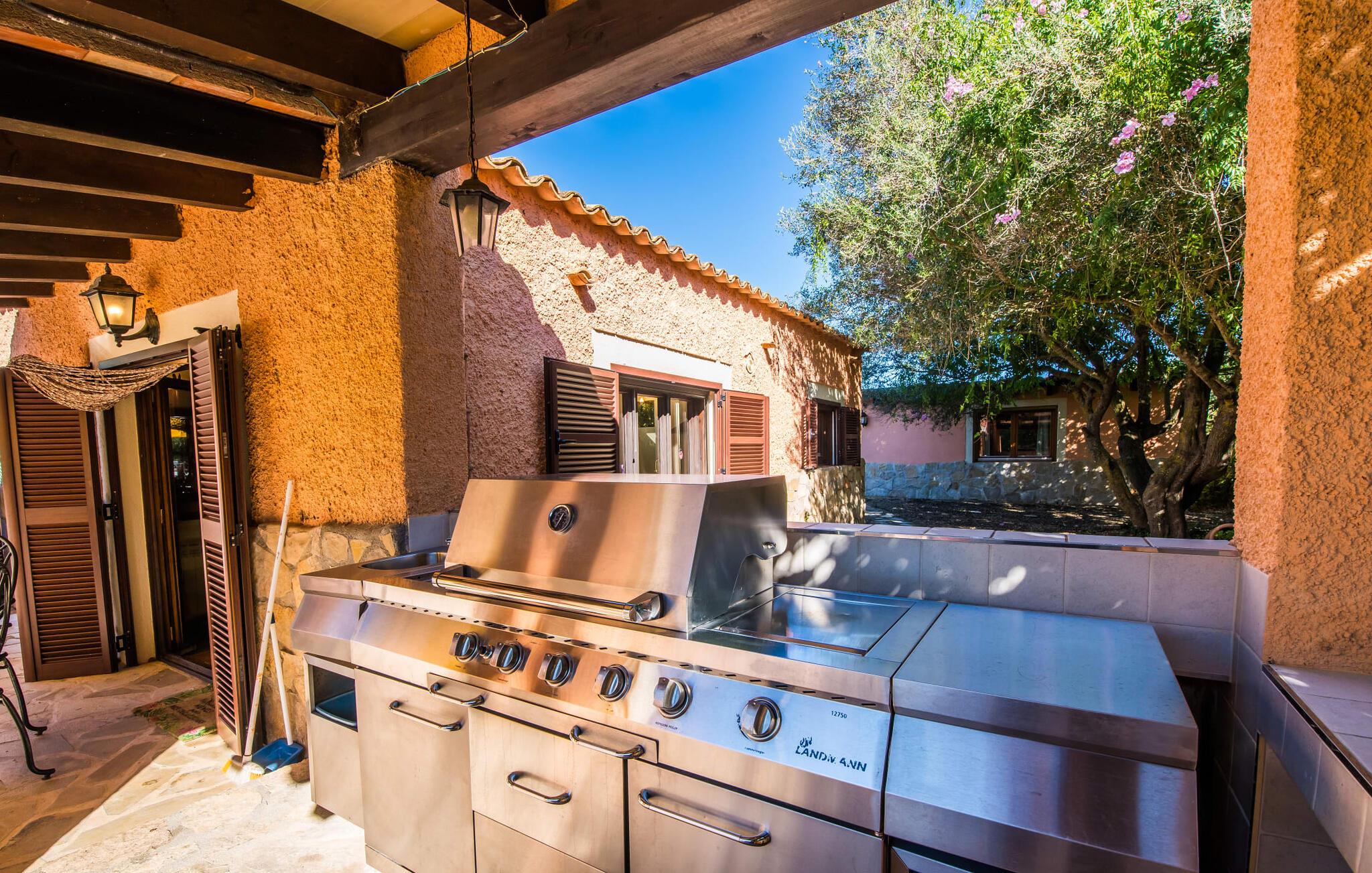 Denne indbydende villa er perfekt til feriegæster, der søger komfort, privatliv og ro, samtidig med at den er tæt på fantastiske strande. Omgivet af palme-, oliven- og citrustræer har grunden en brønd til uafhængig vandforsyning, hvilket skaber en rolig middelhavsoase. Det alsidige udendørsområde omfatter en privat pool og forskellige terrasser, som er ideelle til at slappe af i solen eller skyggen. Nyd jeres måltider ved det runde bord i marokkansk stil, mens I holder øje med børnene, der leger i poolen. Villaen byder på ca. 120 m² gennemtænkt indrettet stueetage. Den lyse stue med sine naturlige toner og muntre accenter tilbyder et hyggeligt mødested. Det åbne køkken er fuldt udstyret til selvforplejning og tilbyder nem adgang til terrassen for problemfri indendørs/udendørs ophold. Der er to komfortable soveværelser, to stilfuldt designede badeværelser med naturligt lys (et en-suite) og en casita kun 8 meter væk til to ekstra gæster, komplet med soveværelse og en-suite badeværelse. Denne villa tilbyder privatliv og afslapning og er ideel for rejsende, der søger fred og ro, golfspillere og vandrere. Det er et perfekt tilflugtssted for at udforske Mallorcas skønhed væk fra folkemængderne. Denne villa ligger på en stille og rolig grund på 5.000 m² mellem kommunen Artà (4 km) og Pula golfbanen (3 km) ud mod havet. De nærmeste strande som Cala Mesquida, Cala Bona og Cala Agull ligger blot et par minutter væk i bil. Huset ligger i grænsefladen mellem fire golfbaner, Golf Capdepera, Canyamel Golf, Pula Golf og Son Servera på Costa de los Pinos.