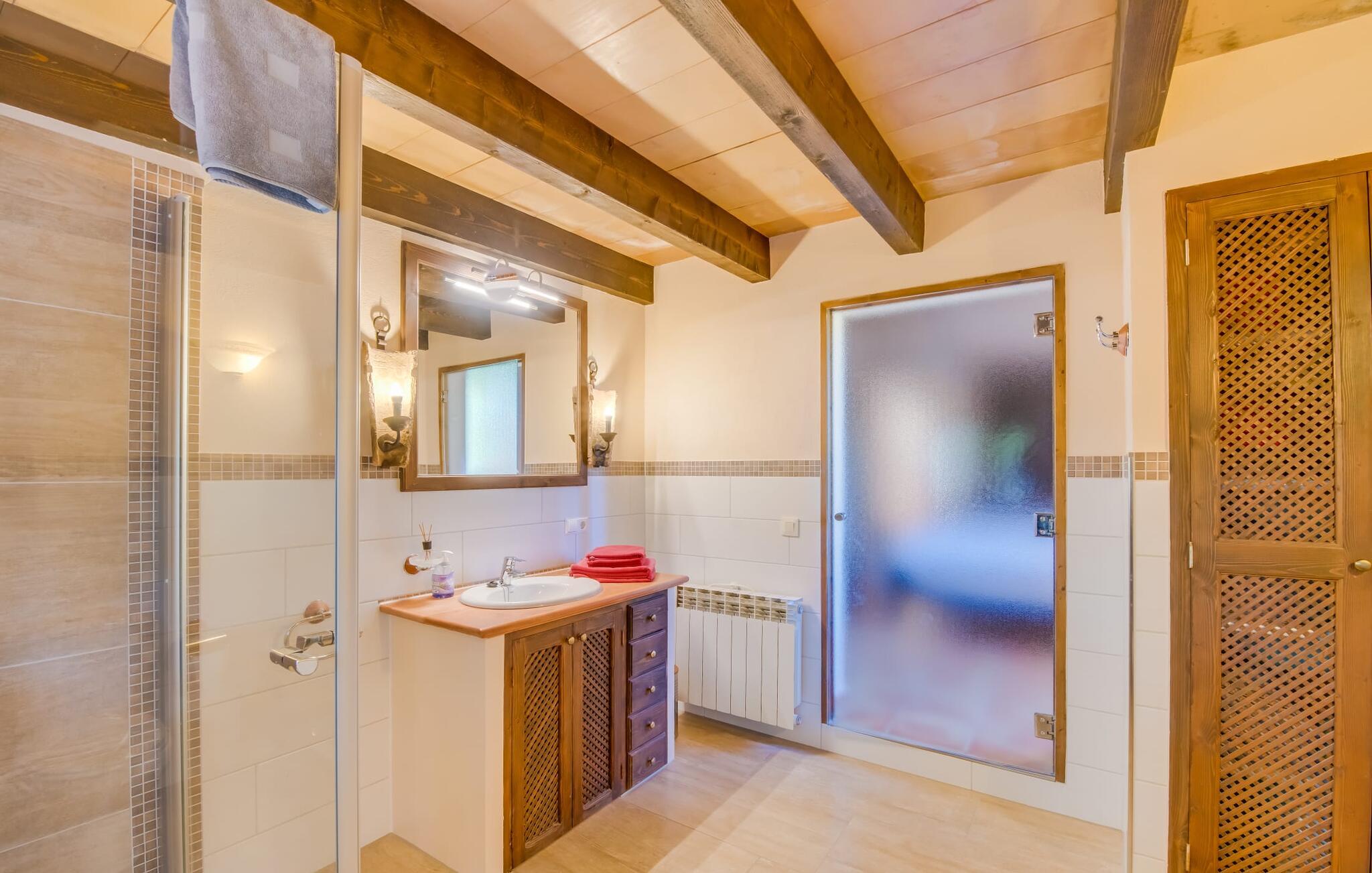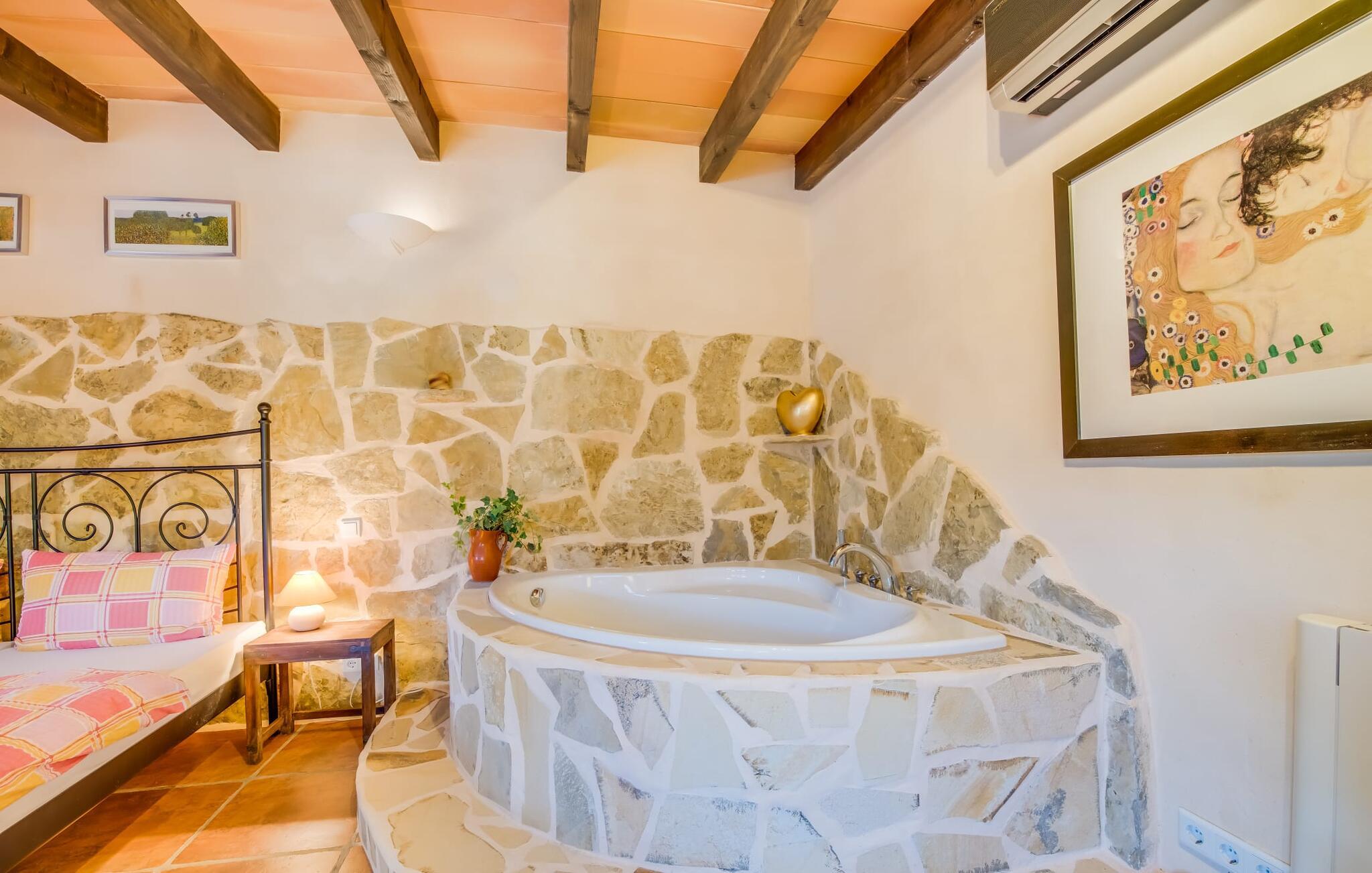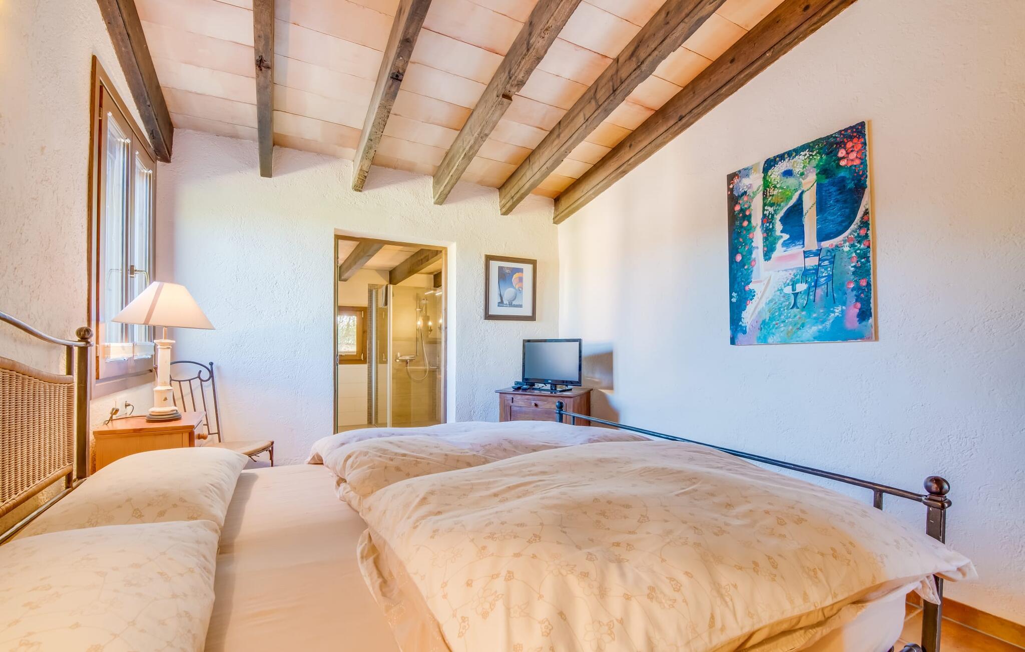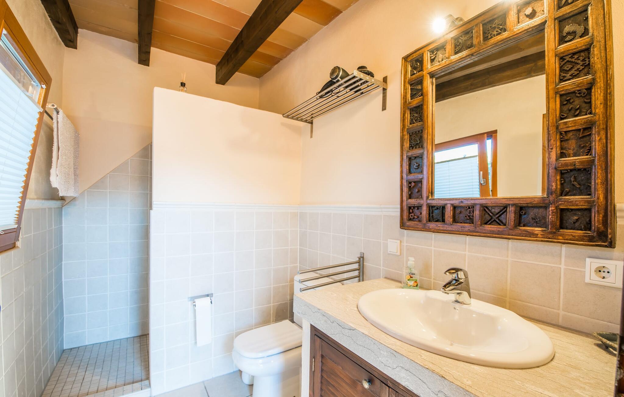 Denne indbydende villa er perfekt til feriegæster, der søger komfort, privatliv og ro, samtidig med at den er tæt på fantastiske strande. Omgivet af palme-, oliven- og citrustræer har grunden en brønd til uafhængig vandforsyning, hvilket skaber en rolig middelhavsoase. Det alsidige udendørsområde omfatter en privat pool og forskellige terrasser, som er ideelle til at slappe af i solen eller skyggen. Nyd jeres måltider ved det runde bord i marokkansk stil, mens I holder øje med børnene, der leger i poolen. Villaen byder på ca. 120 m² gennemtænkt indrettet stueetage. Den lyse stue med sine naturlige toner og muntre accenter tilbyder et hyggeligt mødested. Det åbne køkken er fuldt udstyret til selvforplejning og tilbyder nem adgang til terrassen for problemfri indendørs/udendørs ophold. Der er to komfortable soveværelser, to stilfuldt designede badeværelser med naturligt lys (et en-suite) og en casita kun 8 meter væk til to ekstra gæster, komplet med soveværelse og en-suite badeværelse. Denne villa tilbyder privatliv og afslapning og er ideel for rejsende, der søger fred og ro, golfspillere og vandrere. Det er et perfekt tilflugtssted for at udforske Mallorcas skønhed væk fra folkemængderne. Denne villa ligger på en stille og rolig grund på 5.000 m² mellem kommunen Artà (4 km) og Pula golfbanen (3 km) ud mod havet. De nærmeste strande som Cala Mesquida, Cala Bona og Cala Agull ligger blot et par minutter væk i bil. Huset ligger i grænsefladen mellem fire golfbaner, Golf Capdepera, Canyamel Golf, Pula Golf og Son Servera på Costa de los Pinos.