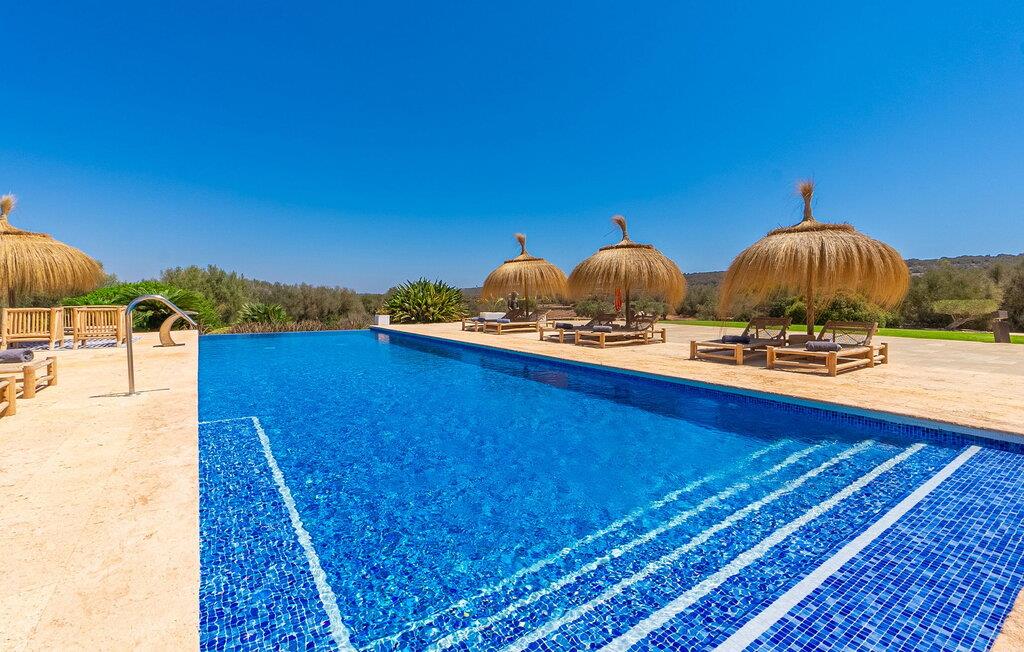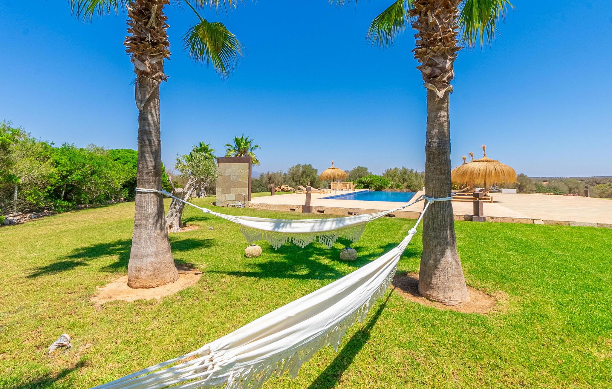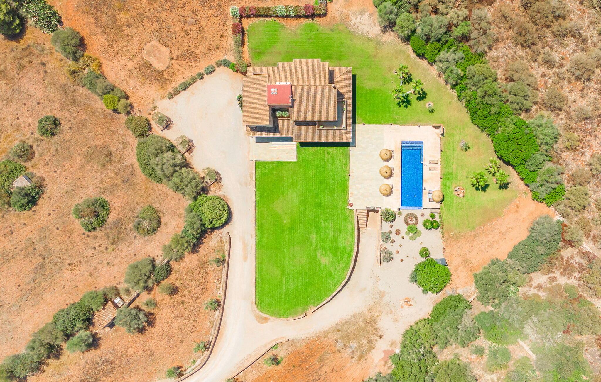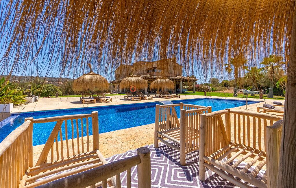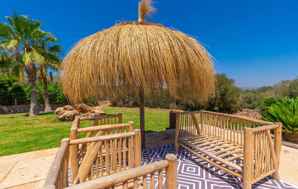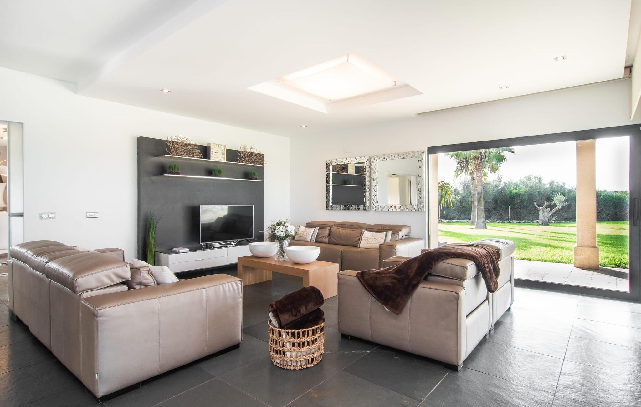 Stuehuset "Flor de Sal a Sa Canoveta" er perfekt til feriegæster med designkrav. Den rummelige ejendom er en drømmeagtig middelhavsoase fuld af palmer, frugt- og oliventræer, rummelige græsplæner og fænomenal udsigt. Midt i haven ligger den klorfri pool i XL-format og afslappet infinity-stil. En udendørs bruser med varmt vand og en hydromassagebruser i poolen fuldender luksusen. De komfortable designer liggestole på den omkringliggende solterrasse tilbyder også maksimal afslapning. Både unge og gamle kan nyde et socialt samvær ved bordtennisbordet eller på de overdækkede terrasser ved huset. Der kan grillen tilberedt på murstensgrillen nydes til middag. Det højkvalitets loungehjørne på den anden overdækkede terrasse giver jer mulighed for at fejre Mallorcas livskvalitet langt ud på natten. Mens bygningen fremstår typisk mallorcansk-rustik med dens klassiske stenbrud, vil du, når I træder ind i huset, blive overrasket af et strejf af luksus med en betagende smuk indretning i et puristisk design. De store gulv-til-loft vinduer lader den rummelige og åbne opholds- og spiseafdeling skinne. Downlights skaber den rigtige atmosfære i dette smarte bondehus. Møblerne af høj kvalitet, den gennemgående hvide stil og værelsernes rummelighed perfektionerer den postmoderne boligatmosfære fuld af ro. Det fuldt udstyrede køkken-alrum med ekstra siddepladser lader intet tilbage at ønske. Når I ser de klimatiserede soveværelser, hver for to personer, vil I opdage rummelige værelser med direkte adgang til terrassen eller balkonen, nogle med eget badeværelse, i eksklusivt design. I dette skønne feriehus for familier og venner finder børn og unge deres egen plads i fjerde og femte soveværelse med to enkeltsenge. "Flor de Sal a Sa Canoveta" står for mallorcanske ferier i perfektion og lethed, som I forventer hele året rundt. Luksusgårdhuset "Flor de Sal a Sa Canoveta" imponerer med en perfekt have med en klorfri XL-pool og fremragende møblerede terrasser. Den spektakulære smukke ejendom ligger i den sydlige del af øen mellem Campos og Colònia de Sant Père. I de omkringliggende landsbyer kan I shoppe eller besøge gode restauranter. Drømmestranden Es Trenc ligger kun 9 minutter væk i bil. Bemærk venligst, at denne ejendom ikke accepterer ungdomsgrupper eller polterabender. En ungdomsgruppe på denne ejendom består af personer på 25 år eller derunder. Book ikke denne ejendom, hvis I er en ungdomsgruppe eller polterabend, da jeres reservation vil blive afvist, når den er booket, hvilket også kan være tilfældet ved ankomst til ejendommen eller under jeres ophold, og I vil ikke modtage en refusion